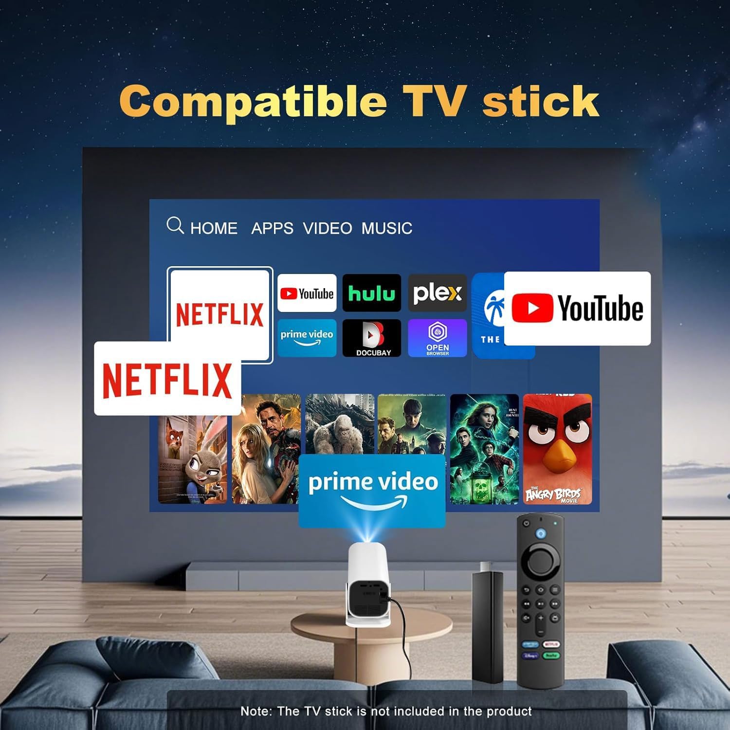 【Built-in APPS & Electric Focusing & 210° Rotation】Mini Projector With Wifi And Bluetooth, 1080P Portable Projector, Movie Projector for Bedroom, Supports Smartphones/TV Stick/iPad/PS5/Laptop/HDMI/USB
