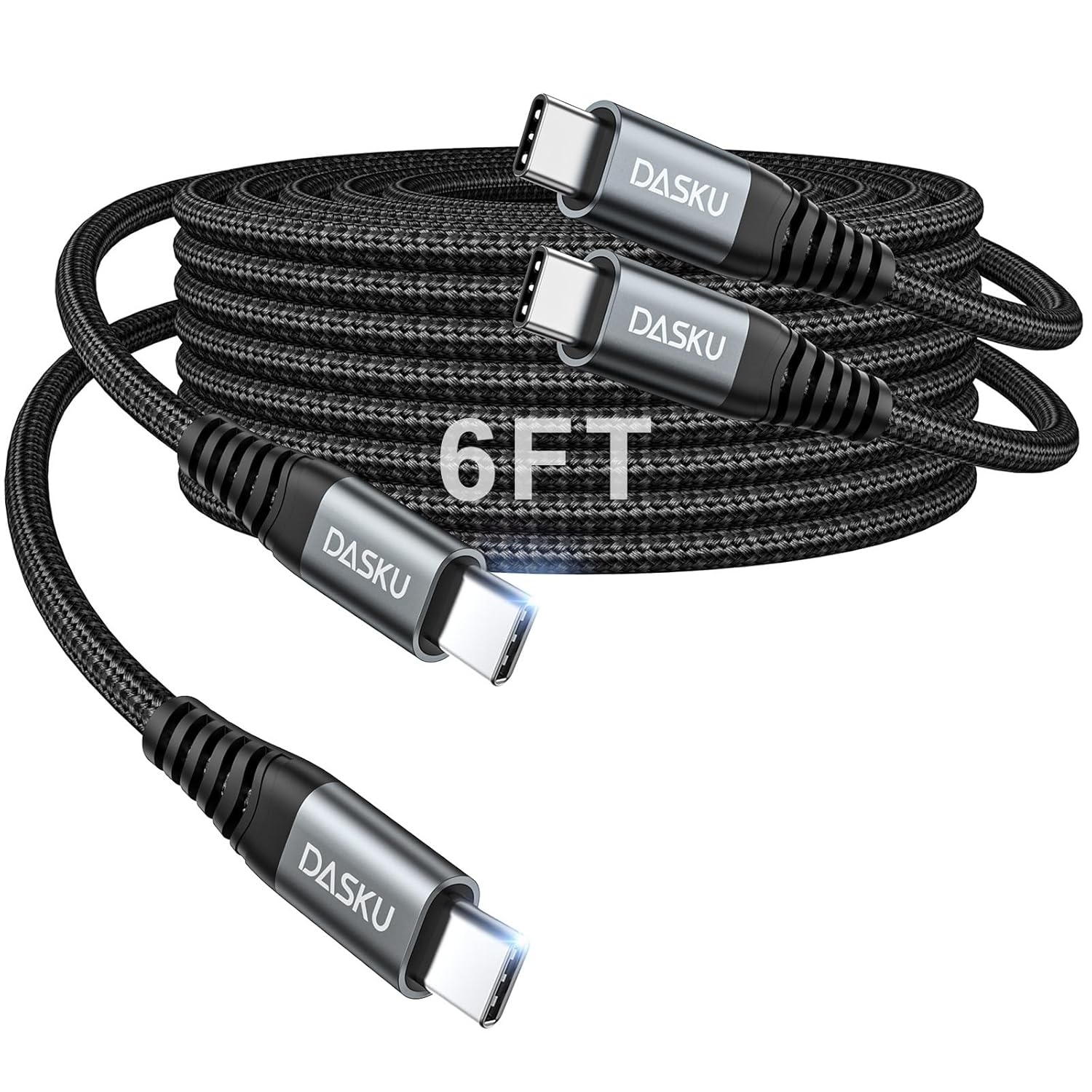 100W USB C to USB C Cable [2 Pack 6FT], USBC Fast Charging Cable for iPhone 17 Air/iPhone 17/iPhone 17 Pro/iPhone 17 Pro Max, iPhone 16/15 Series, Samsung Galaxy S/Note Series, MacBook, iPad