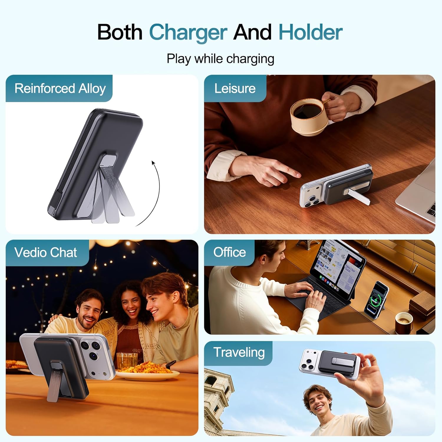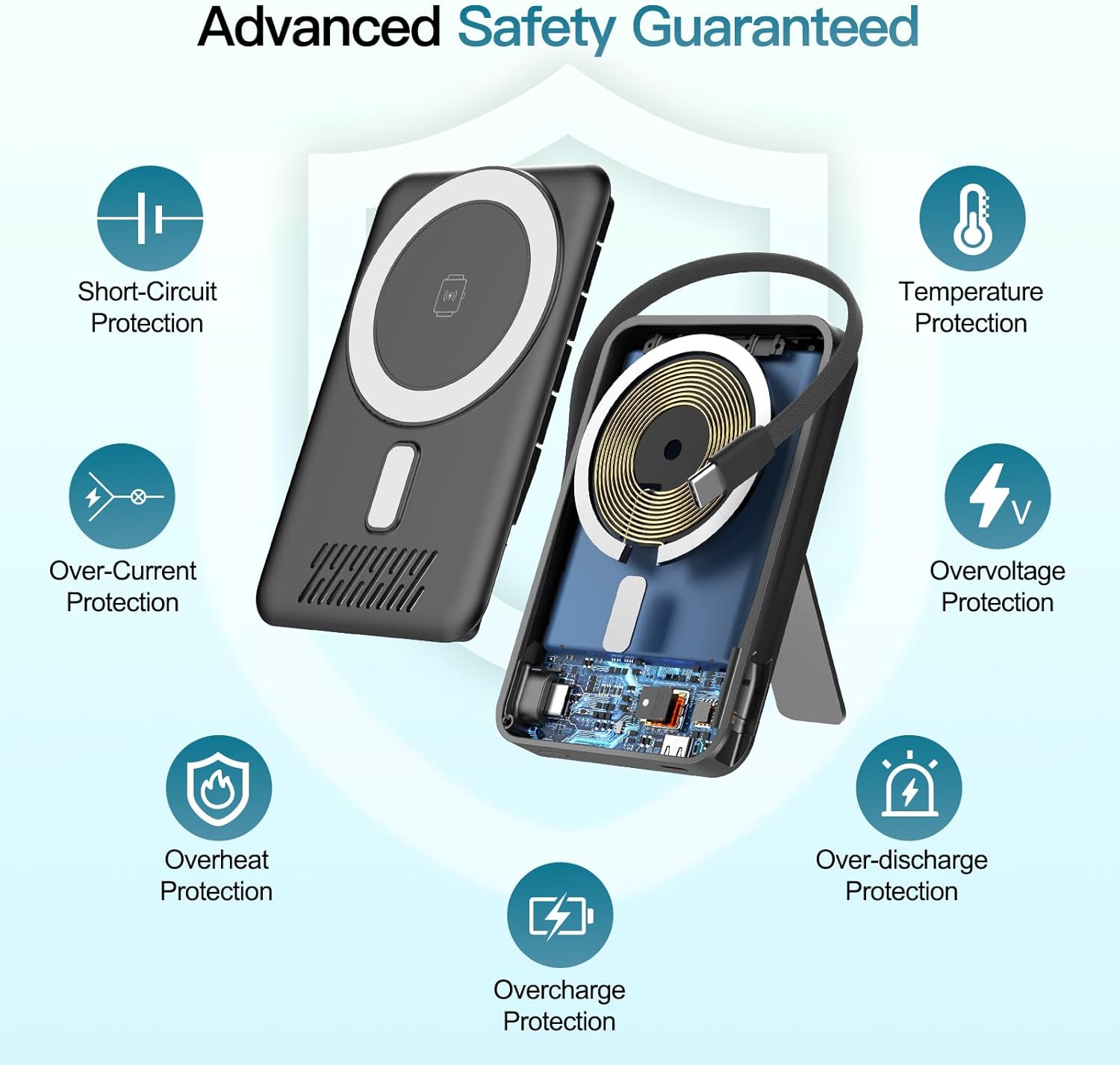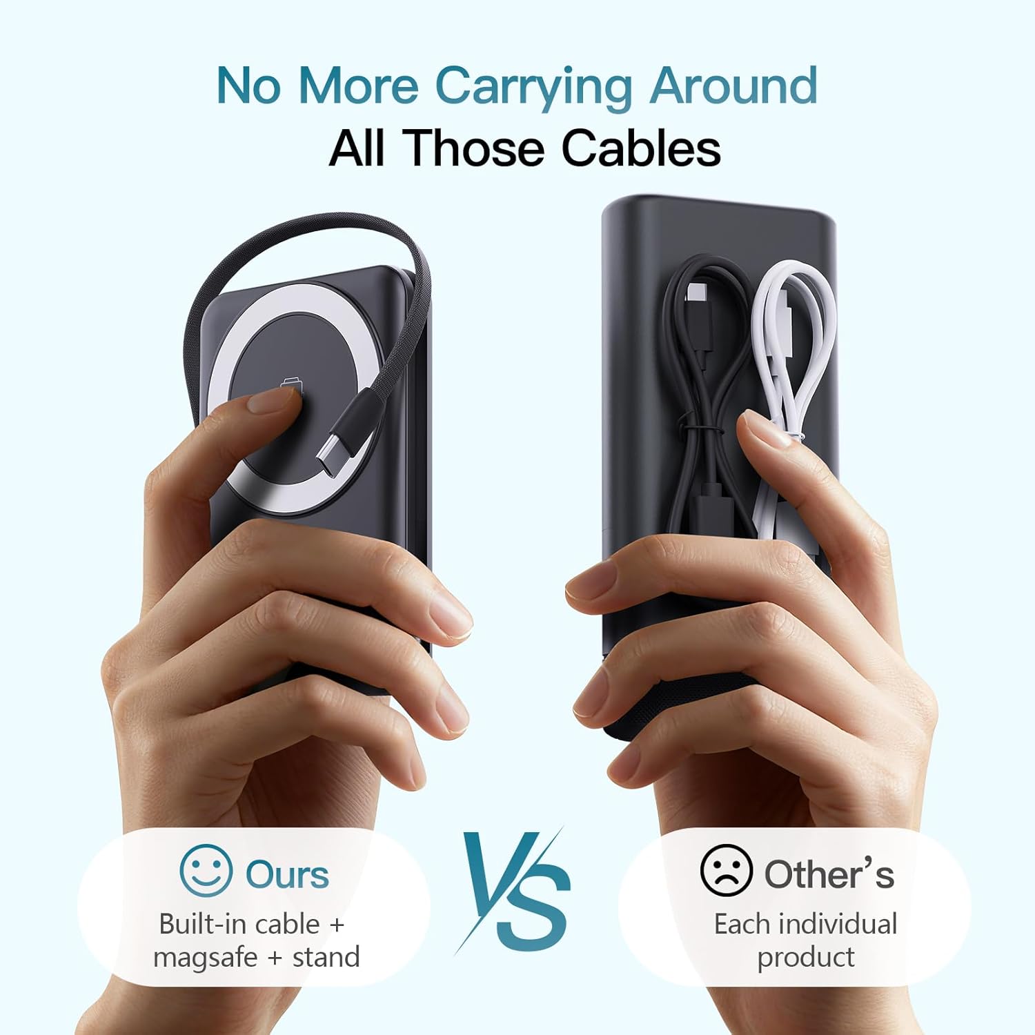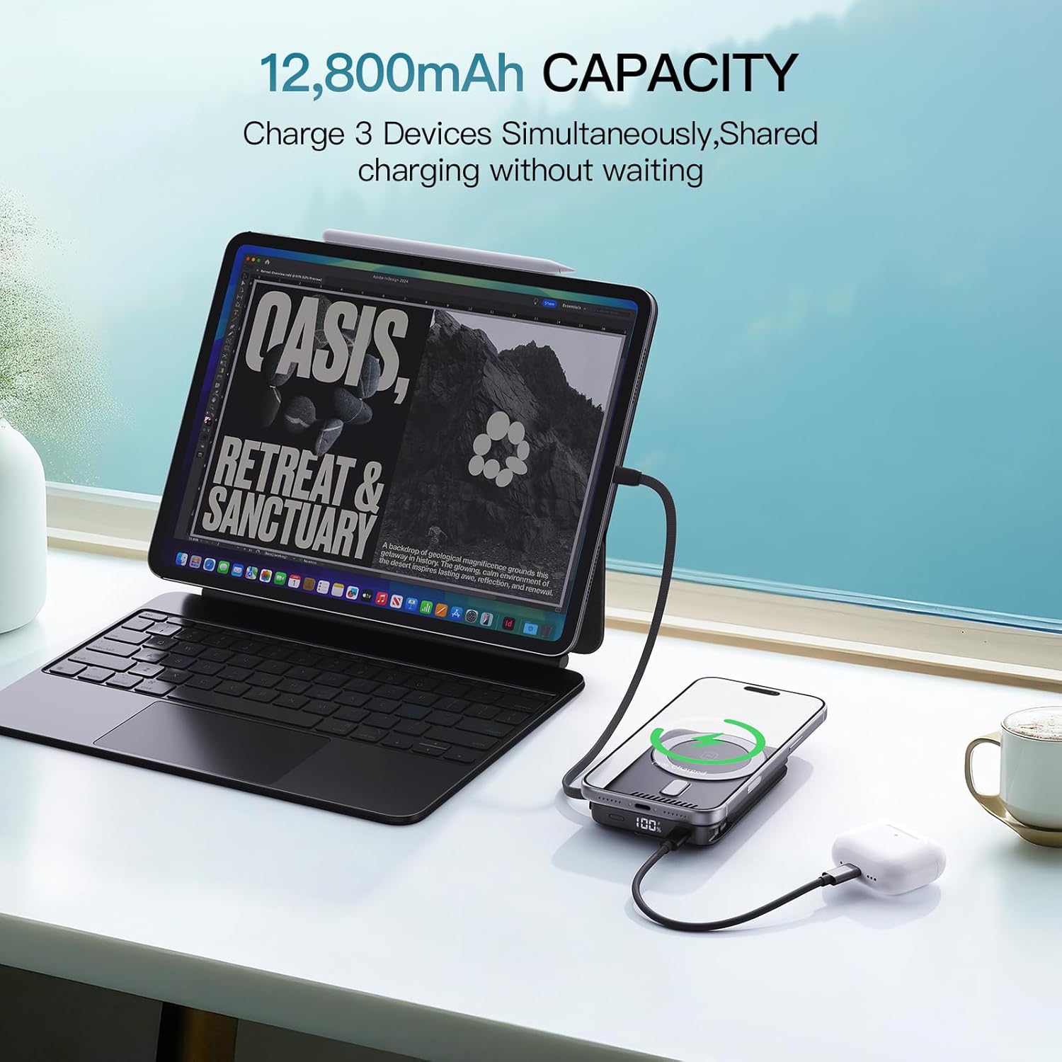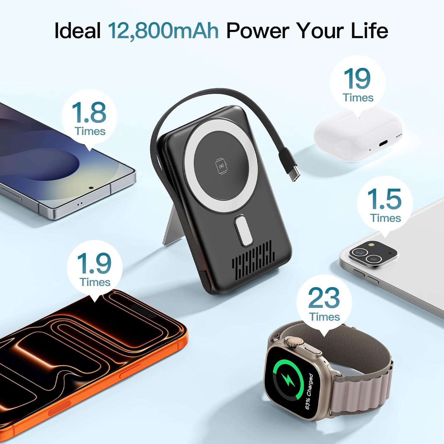 2026 Latest Wireless Power Bank, 12800mAh Portable Charger with Built in Cables, LED Display Magnetic Battery Pack Travel Essentials for iPhone 17/16/15/14/13/12/Pro/Mini/Pro Max Andriod (Black)