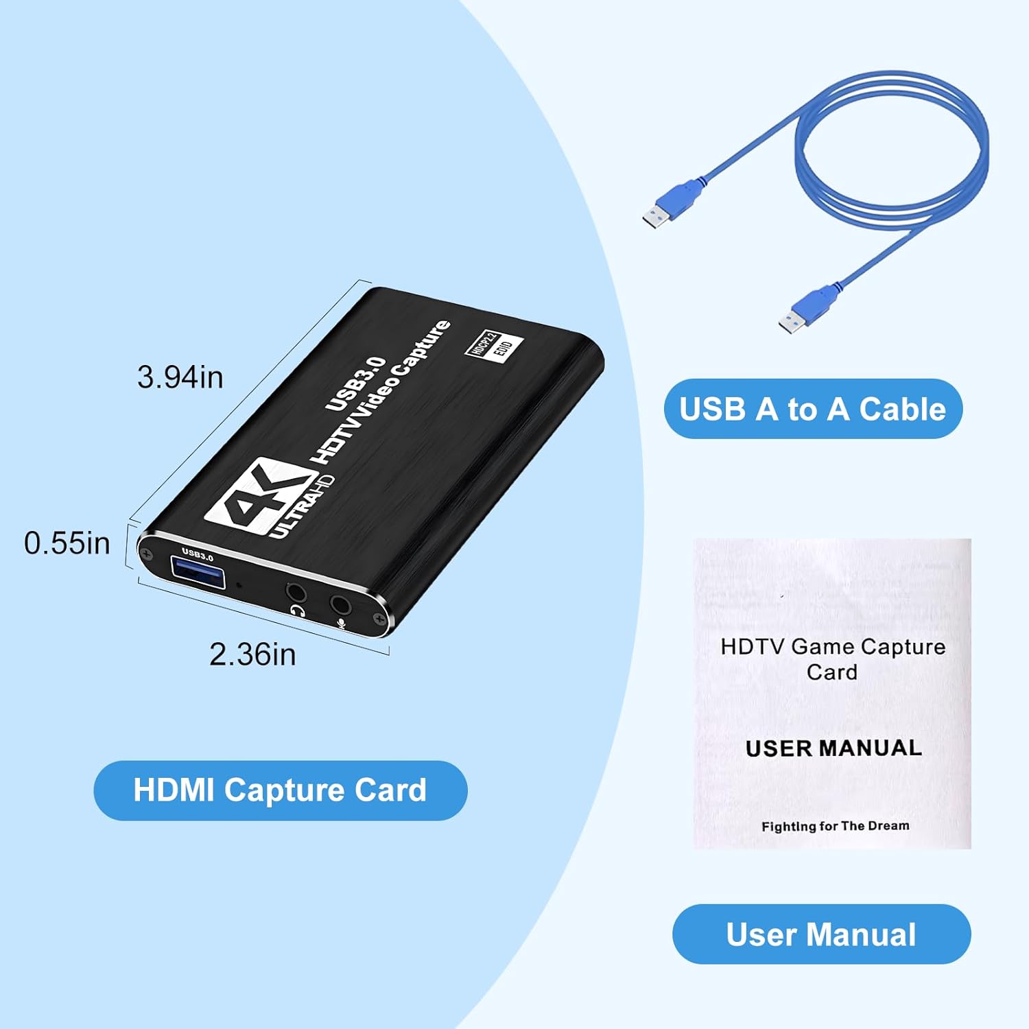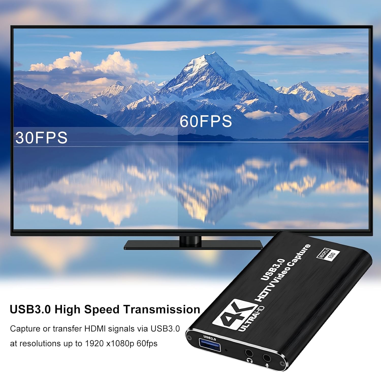 4K Capture Card Game Capture Card 1080P 60FPS for Streaming Capturadora De Video for Game Recording Live Streaming Broadcasting Supports Microphone Input and 3.5MM Headphone Output