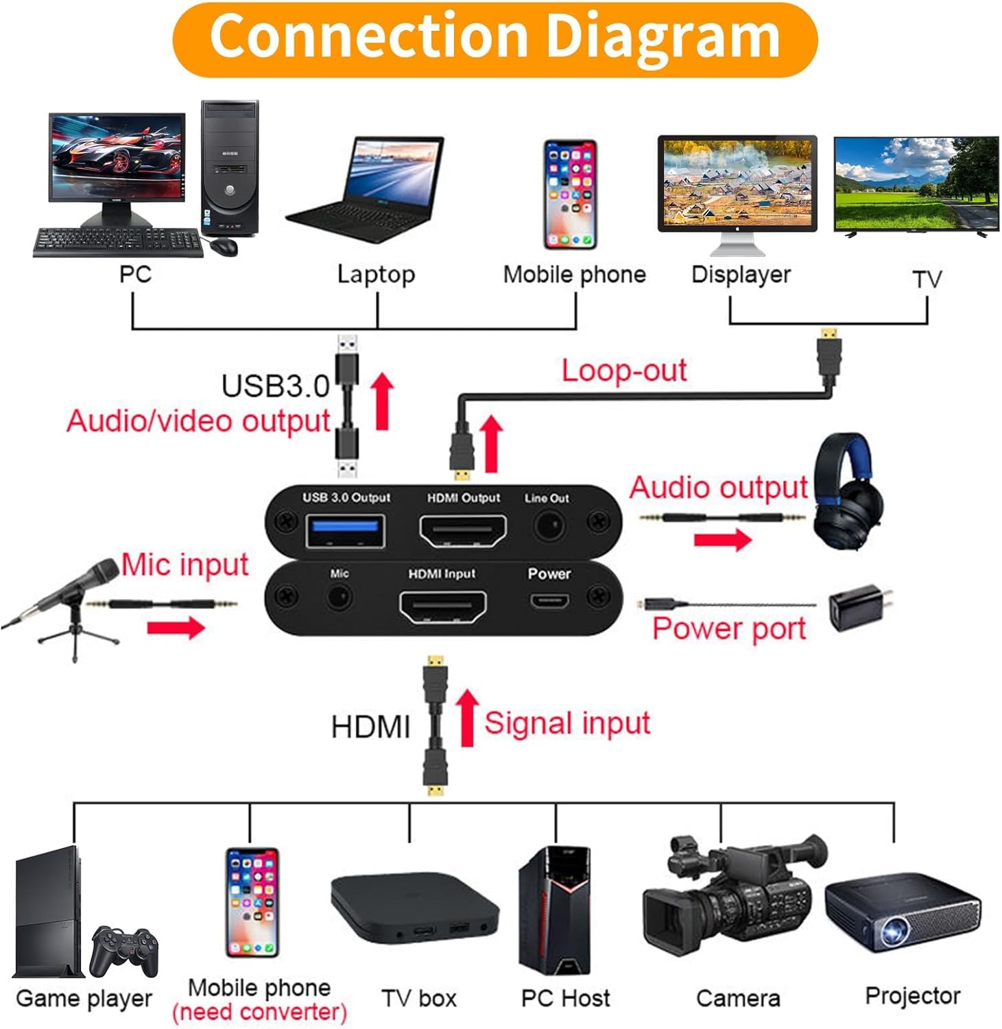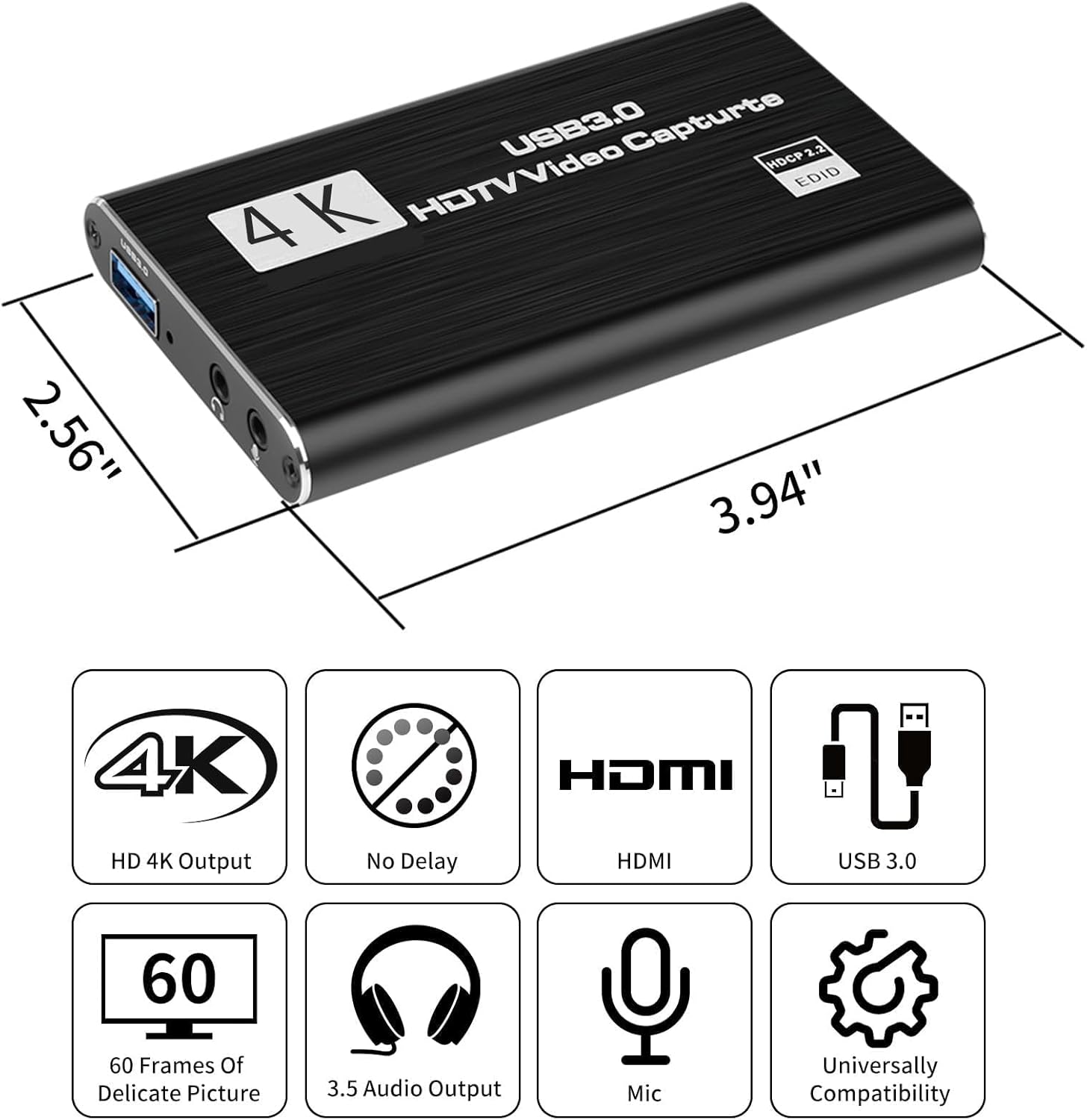 4K HDMI Video Capture Card, Plug & Play USB 3.0 Gaming Capture Card with Microphone – No Driver Needed for PC/Mac, 1080P 60FPS for Nintendo Switch, PS5, PS4, Xbox, OBS Streaming
