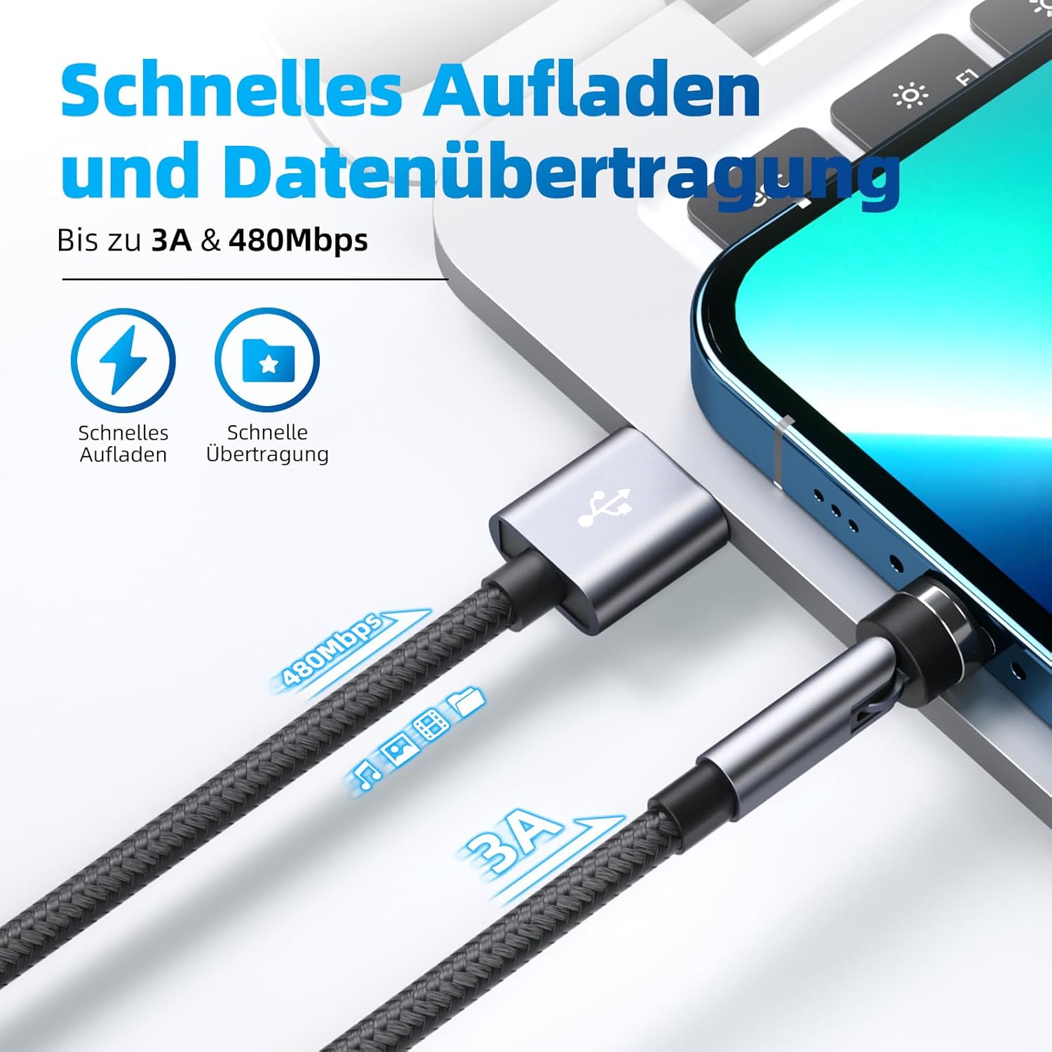 540° Rotation Magnetic Charging Cable, 3 in 1 Magnetic Phone Charger [4-Pack, 3ft/3ft/6ft/10ft] 3A Fast Charging Cable Support Data Transfer USB Magnet Charger Cable for i-P/Micro USB/Type C Device