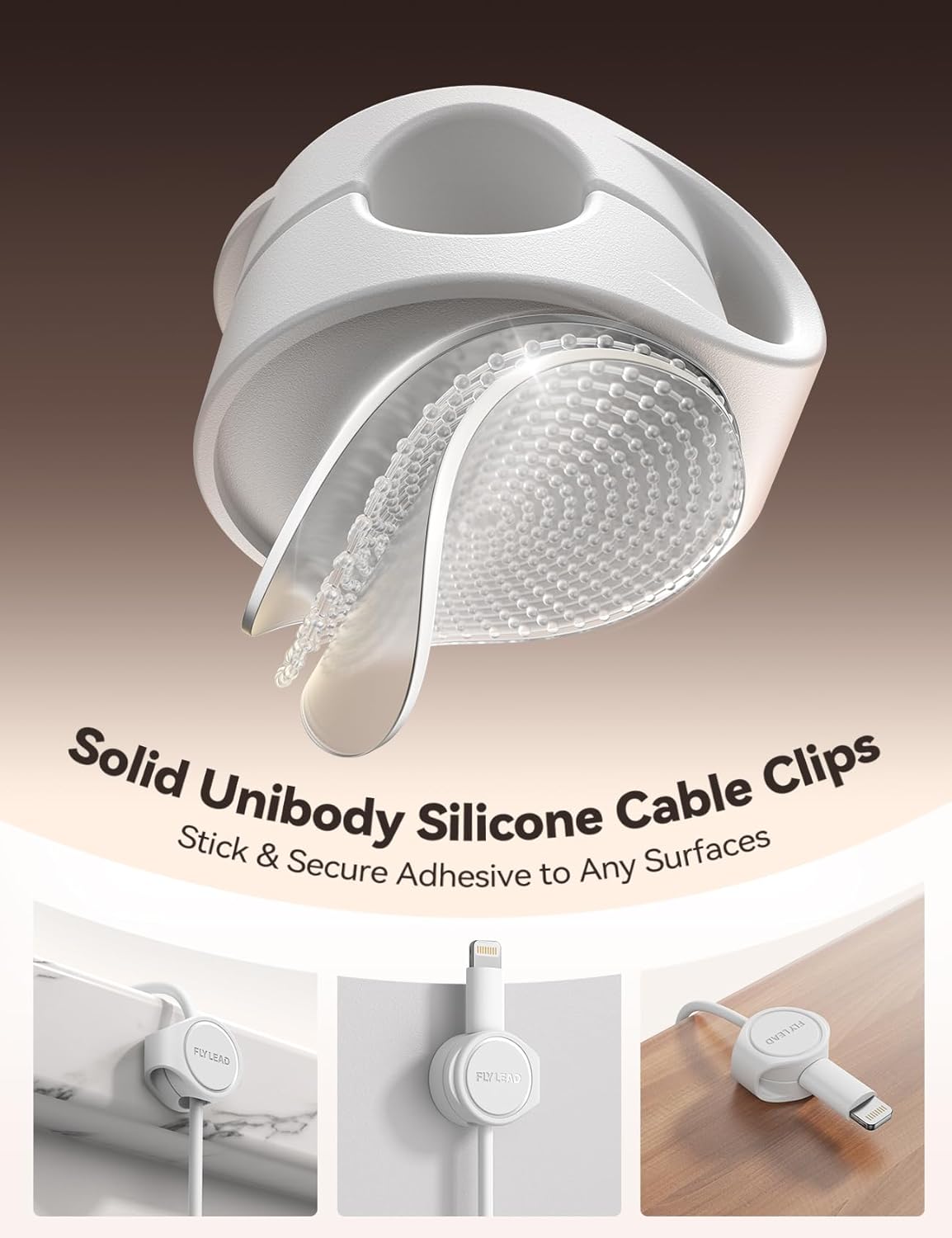 8-Pack Cord Organizer Silicone Magnetic Cable Clips [8 mm Wider Cable Accessible] Desk Wire Management, FLYLEAD Desktop Cord Holder for Nightstand, Office Workspaces Desk Organization Home Accessories