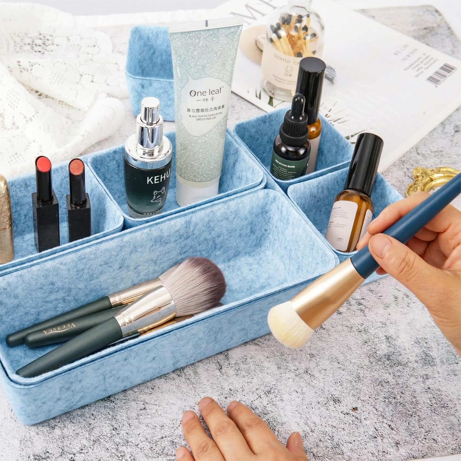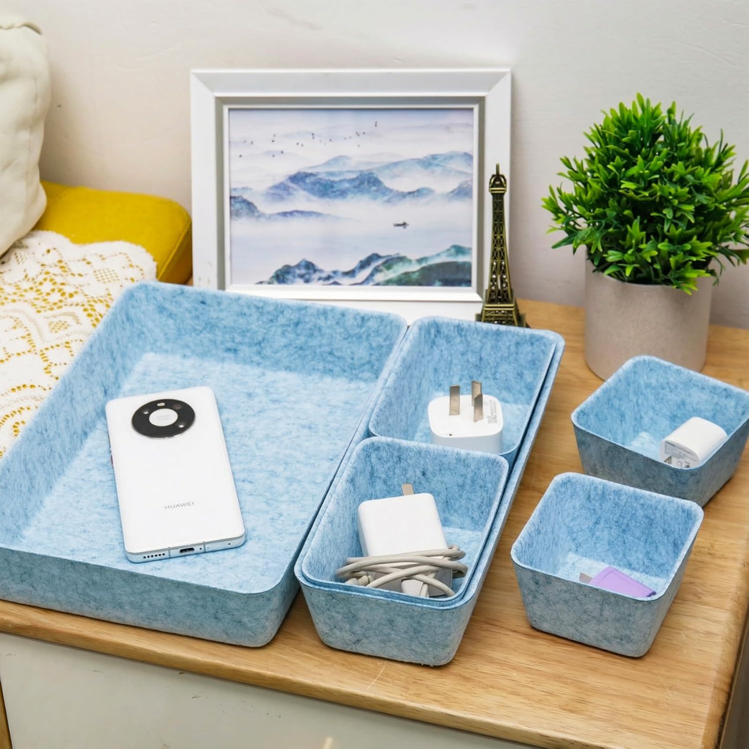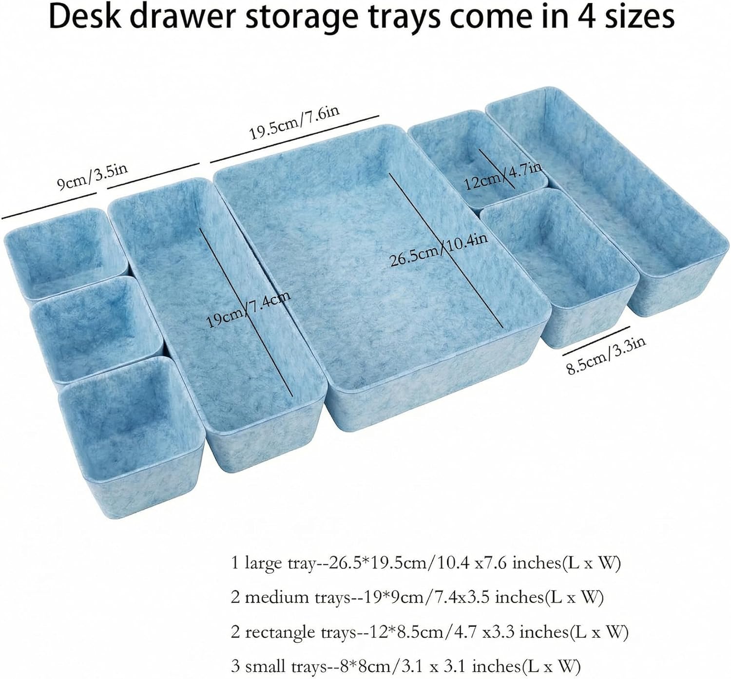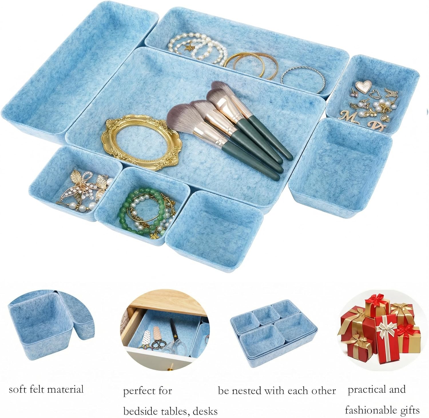 8pcs Drawer Organizer Bins, Felt Desk Organization Sets, Office Accessories & Workspace Organizers, Shallow Jewelry Makeup Storage Box Basket Shelf Containers Separators Inserts(Blue)