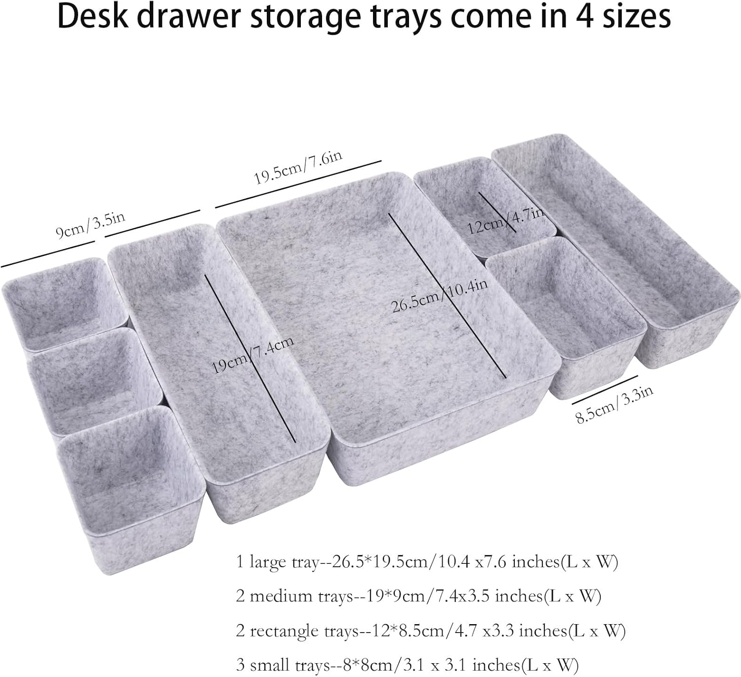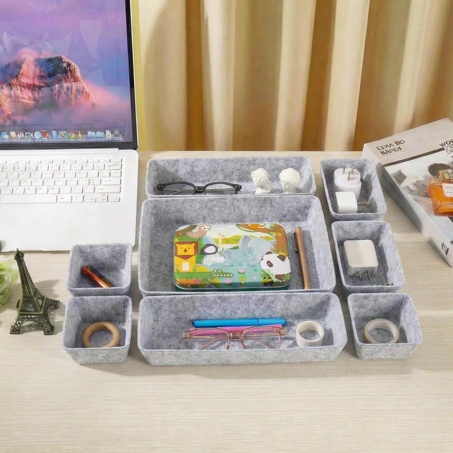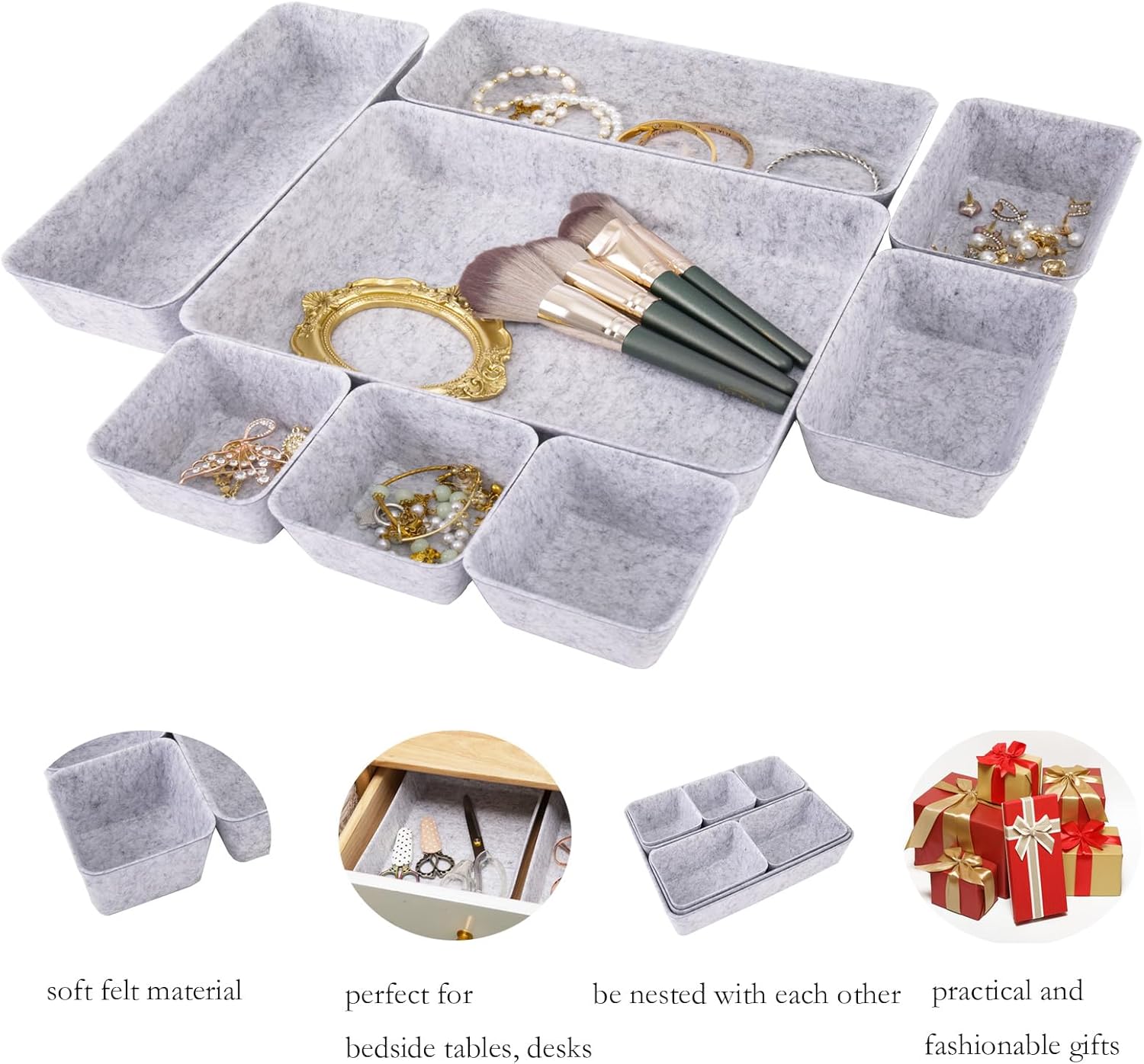 8pcs Drawer Organizer Bins, Felt Desk Organization Sets, Office Accessories & Workspace Organizers, Shallow Jewelry Makeup Storage Box Basket Shelf Containers Separators Inserts(Grey)