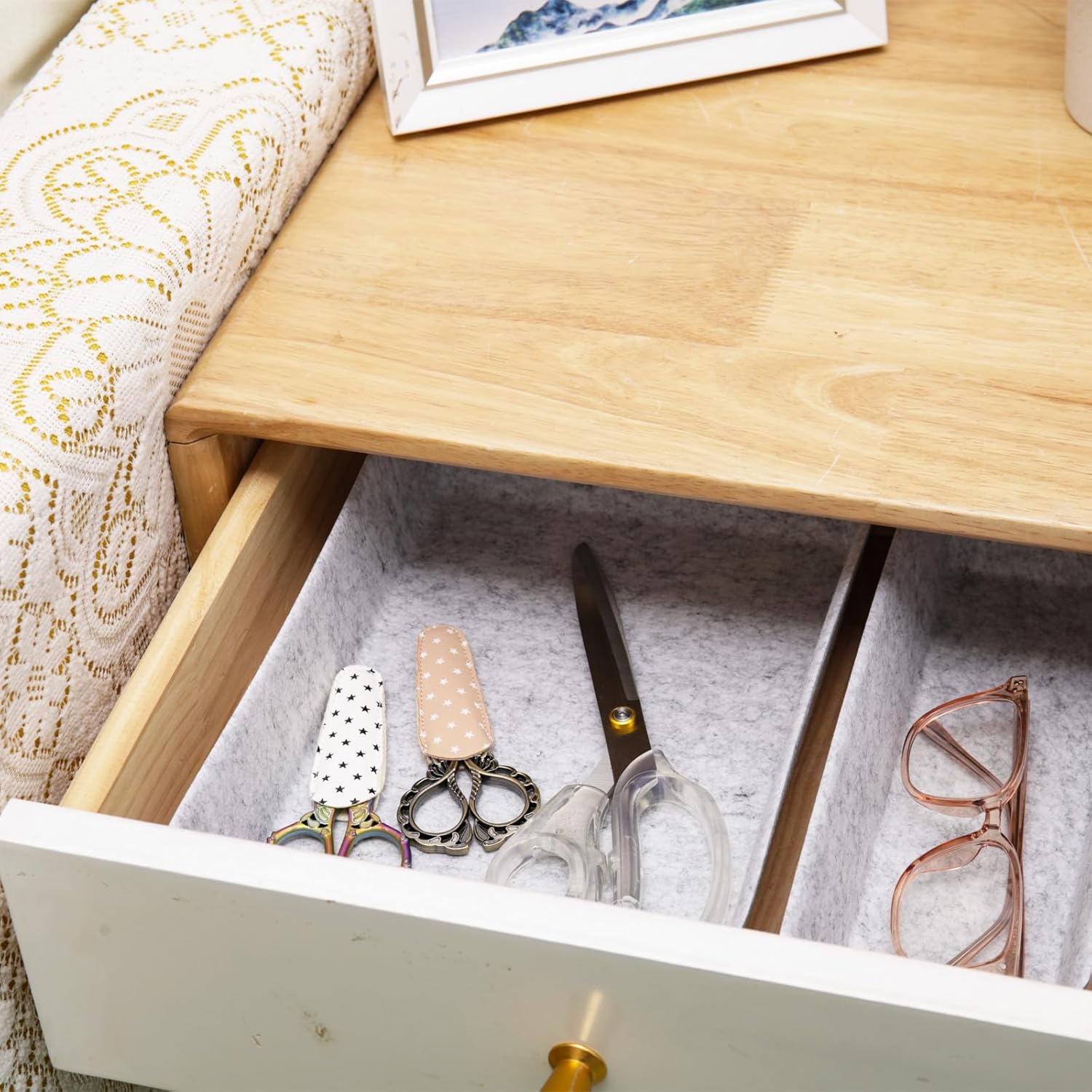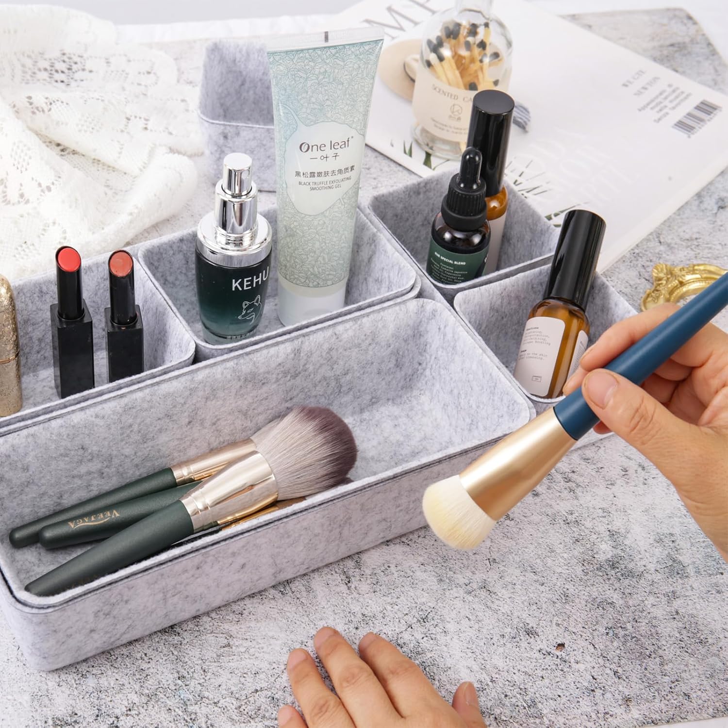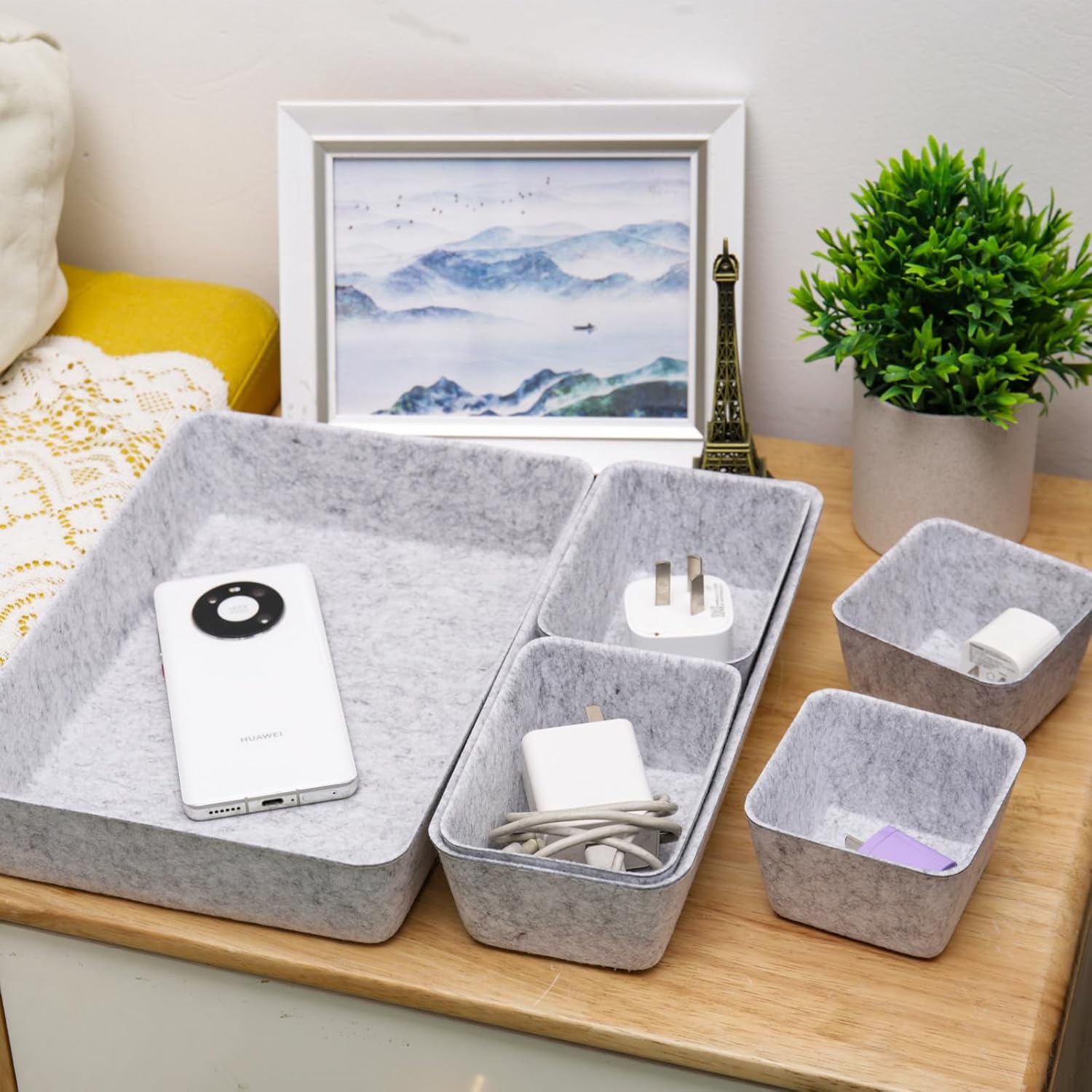 8pcs Drawer Organizer Bins, Felt Desk Organization Sets, Office Accessories & Workspace Organizers, Shallow Jewelry Makeup Storage Box Basket Shelf Containers Separators Inserts(Grey)
