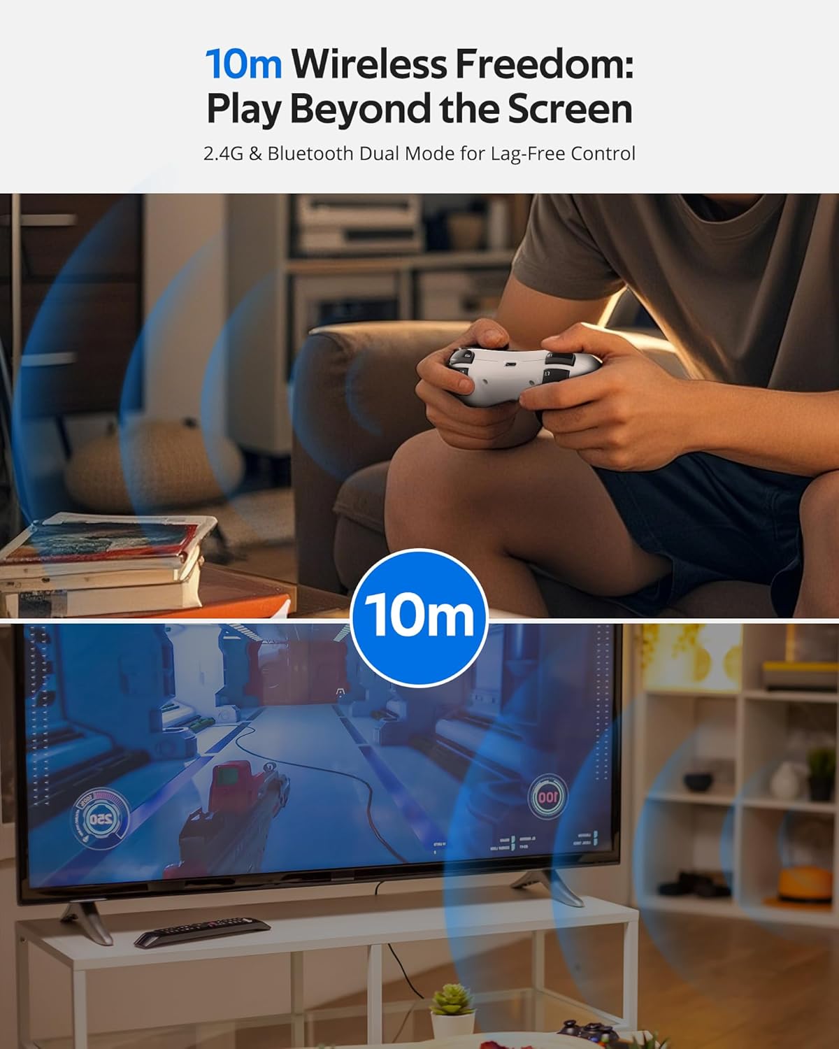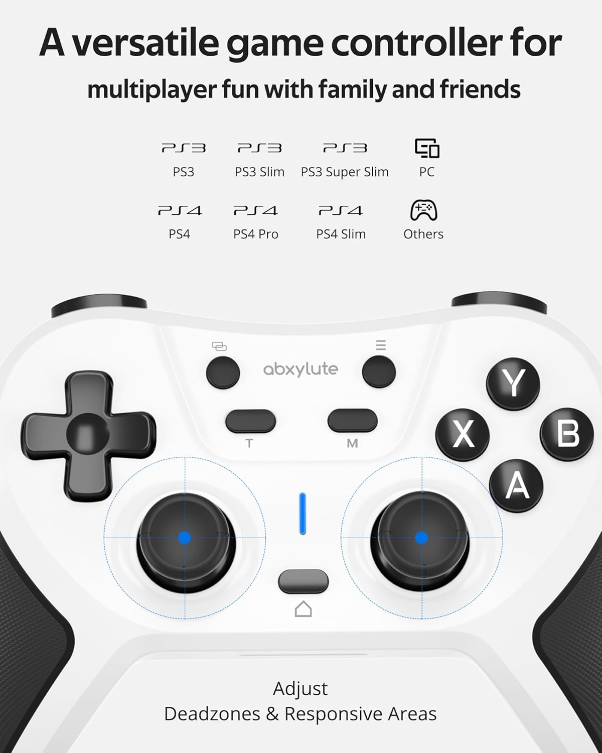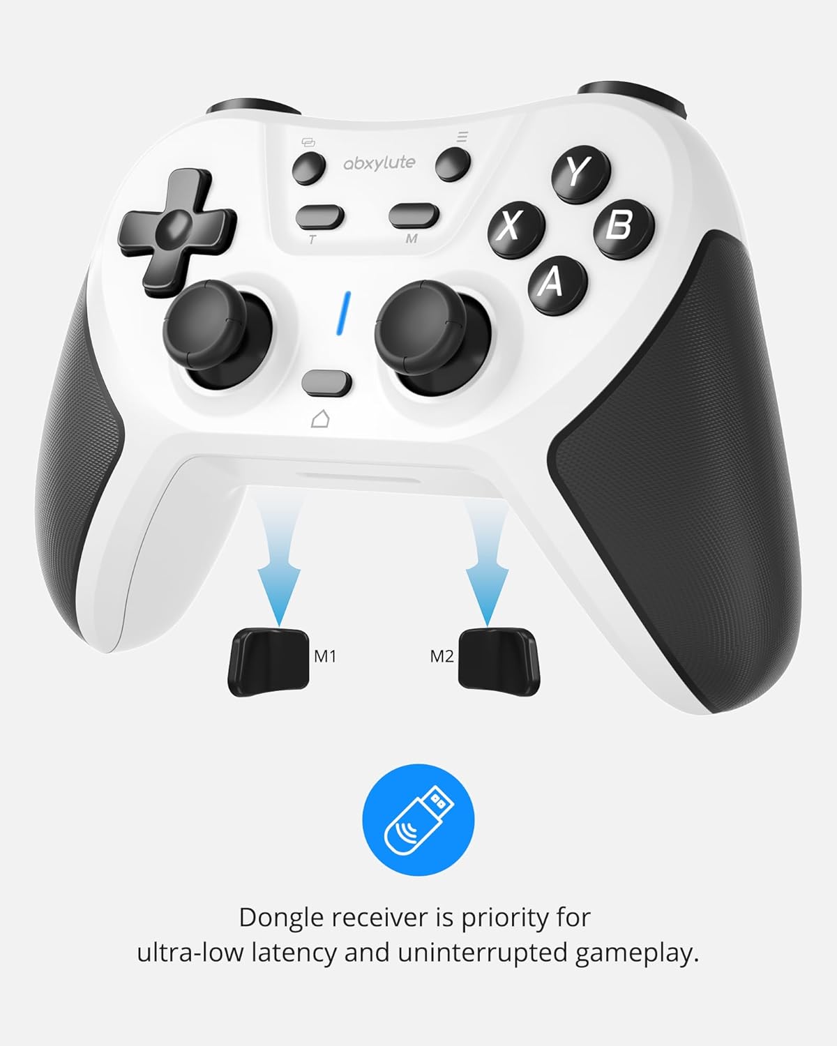 abxylute C5P Wireless Gaming Controller for PC/Switch/iOS/Android/PS3/PS4/Steam/MAC, 2.4 GHz Hall Effect Stick & Trigger Turbo-Remappable Back Buttons Rubberized Grip Console Layout Gamepad Vibration