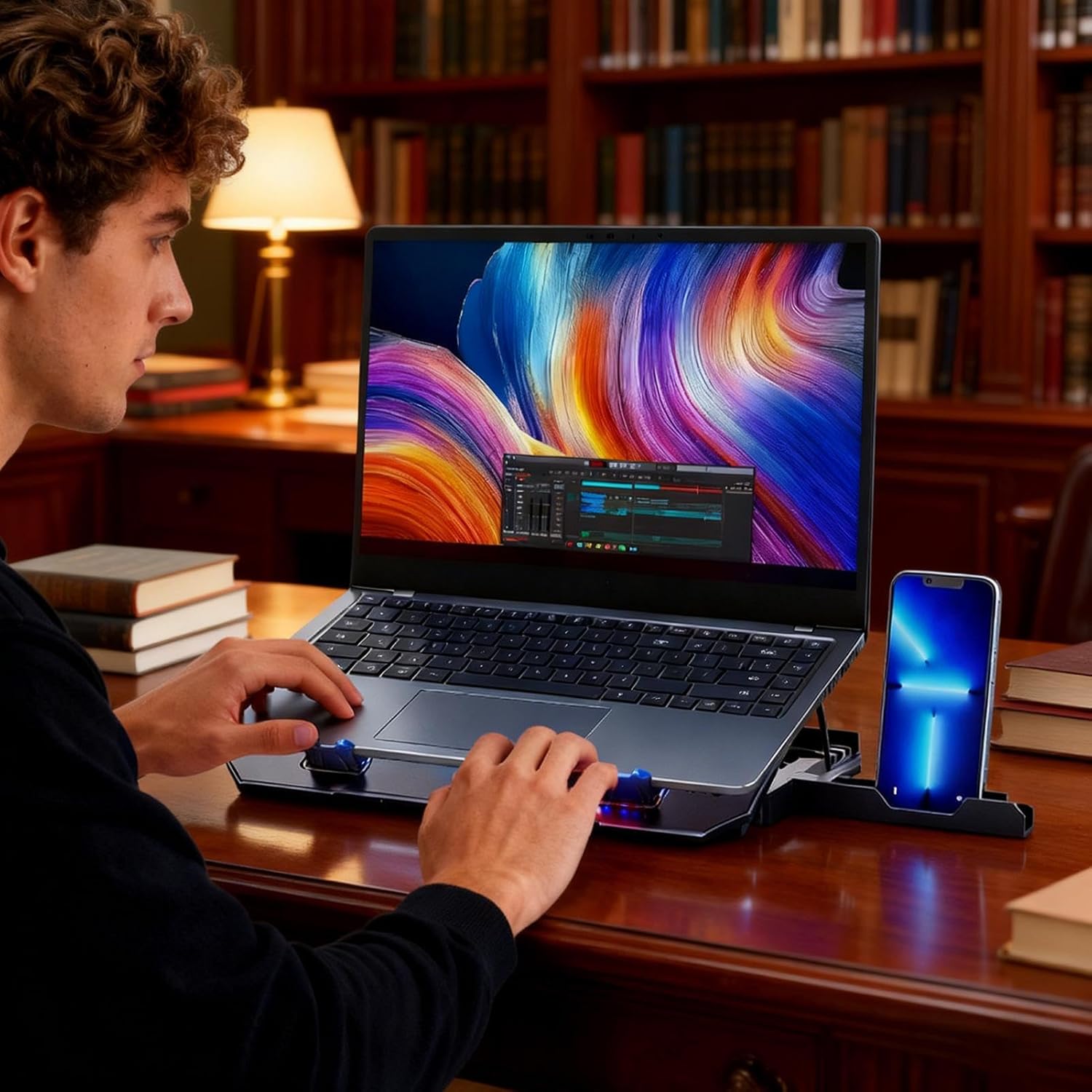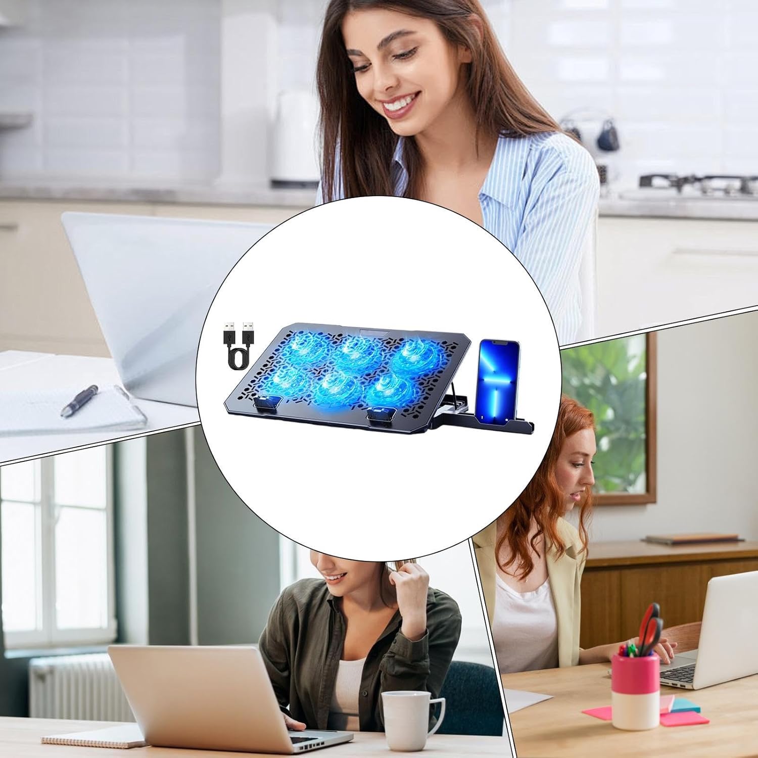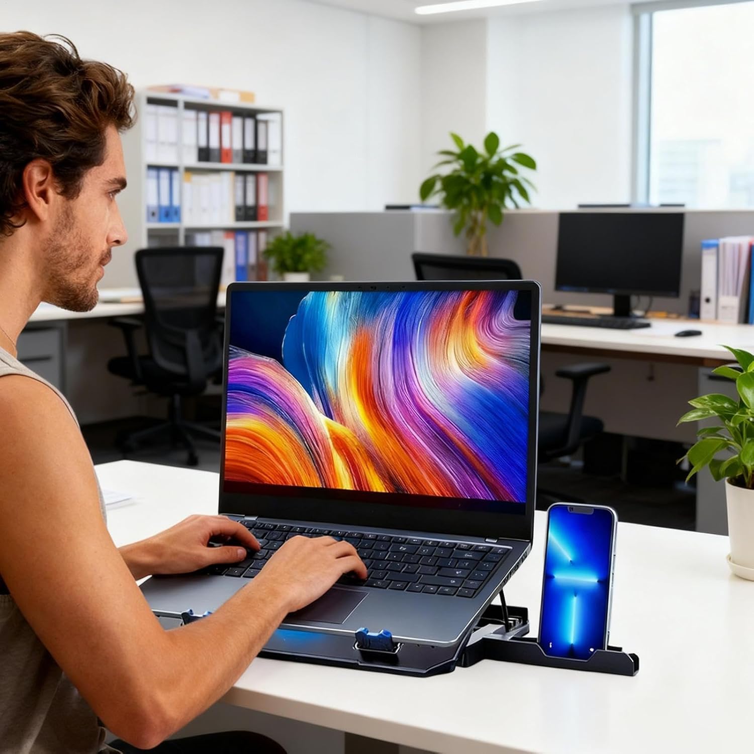 Adjustable Laptop Cooler – Cooling Pad Stand, Ergonomic Design with Built-in-Fans, Height Adjustable Feature with Airflow, Desk Accessories Equipment, Notebook Stand for Offices
