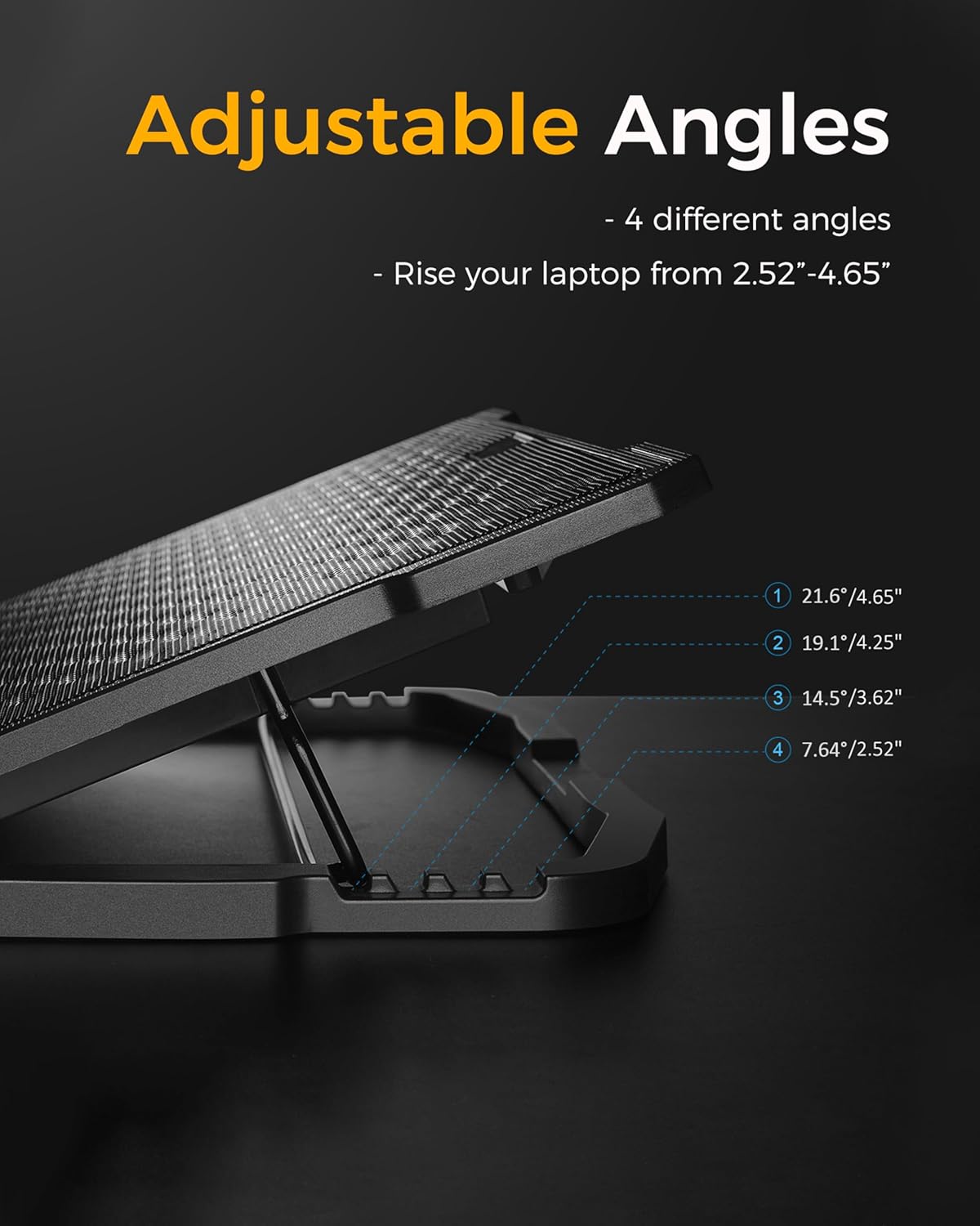AICHESON Laptop Cooling Pad 5 Fans Up to 17.3 Inch Heavy Notebook Cooler, Blue LED Lights, 2 USB Ports, S035, Blue-5fans