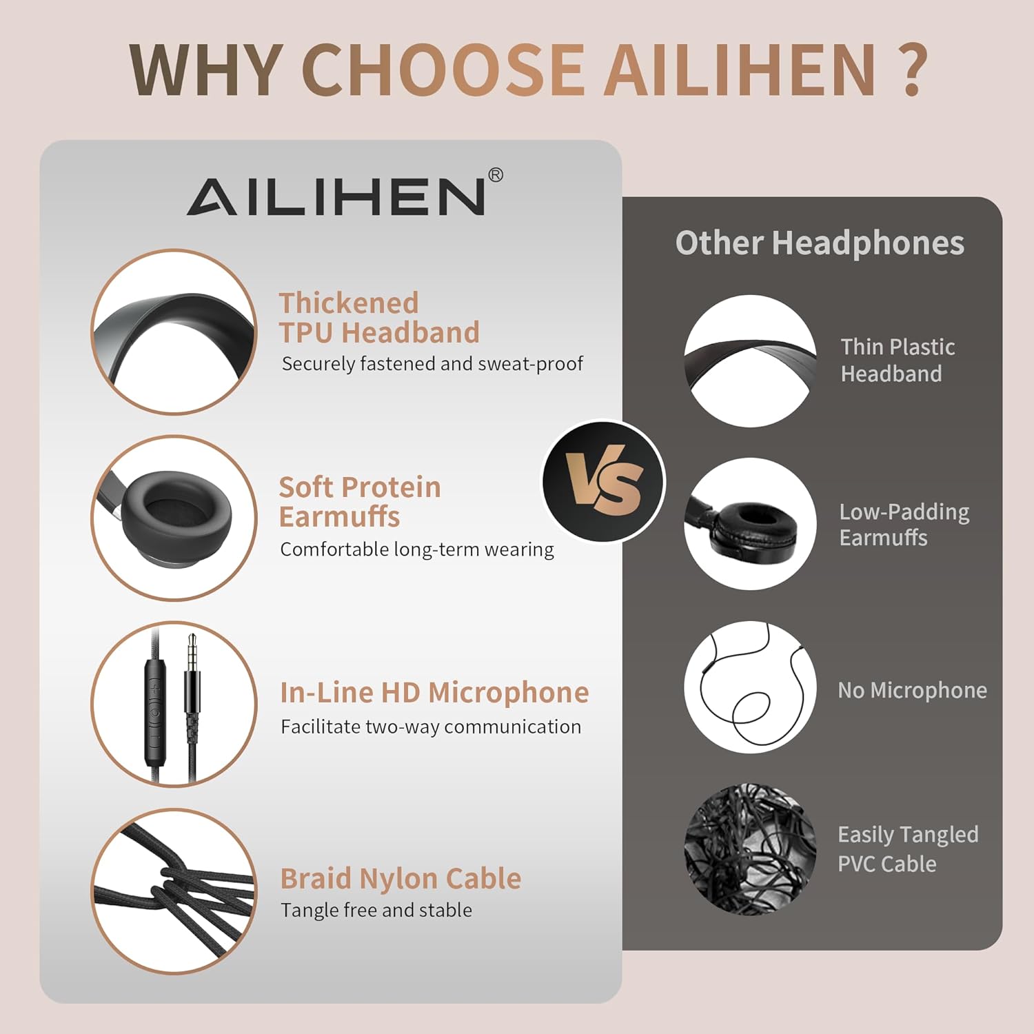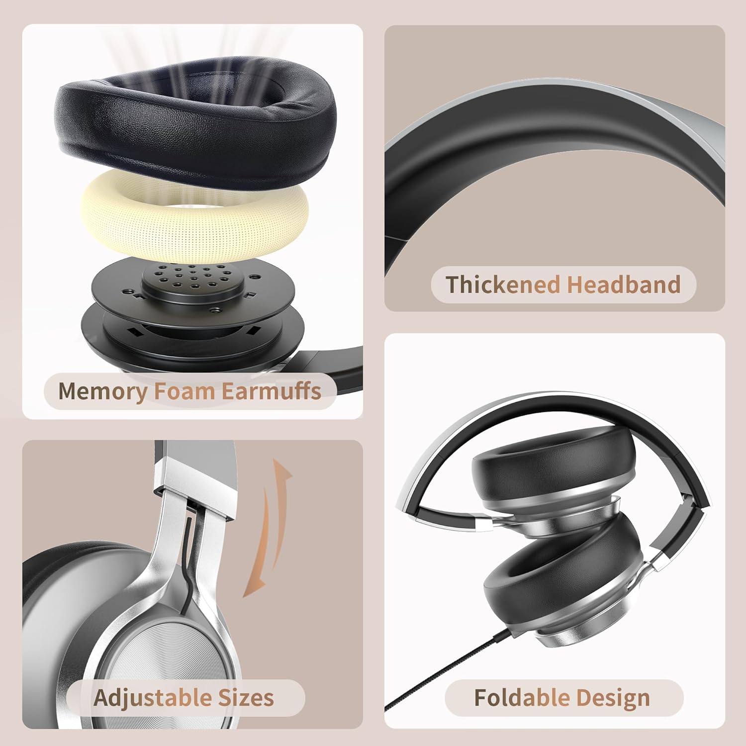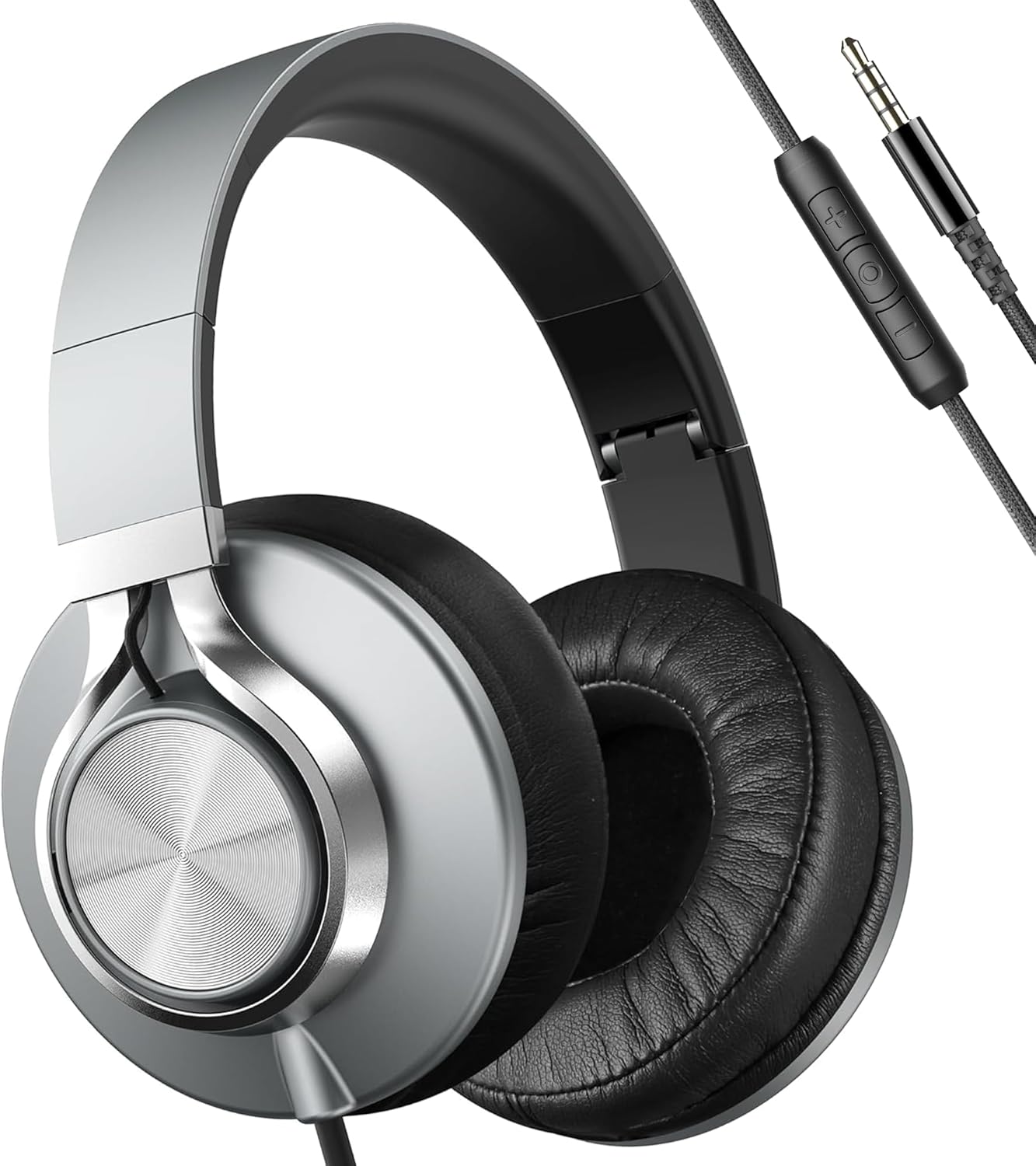 AILIHEN Wired Headphones with Mic and Volume Control, Noise Isolation Over Ear Headphones for Adults&Teens, Foldable, Adjustable, Soft, Braid 3.5mm for Travel/Online Meeting/Remote Learning-Grey Black