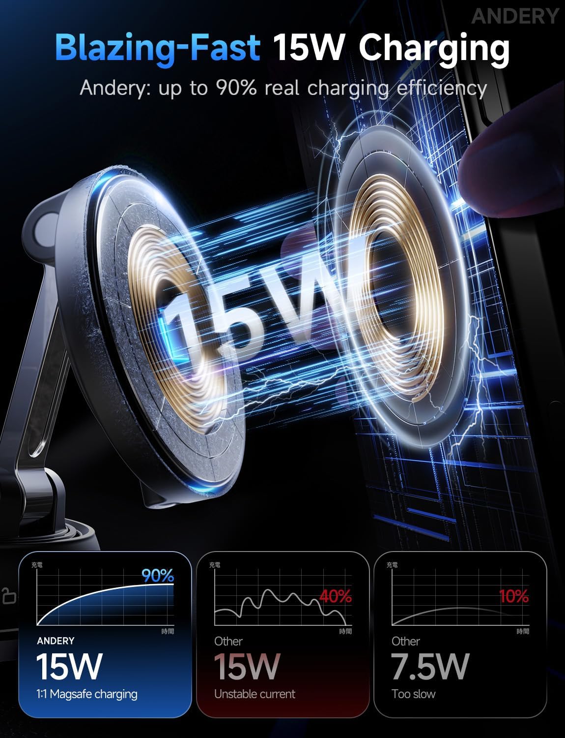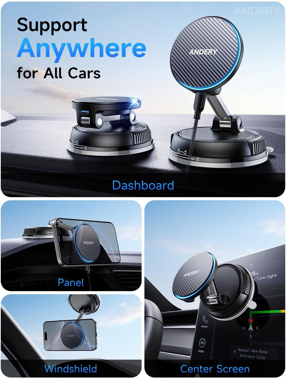 ANDERY Only for iPhone Magsafe Car Mount Charger [15W Wireless Faster Charging, 78+LBS Strongest Suction, 2400gf Strongest Magnetic] 360° Adjustable Car Phone Holder for iPhone 17-12 Pro Max Plus Air