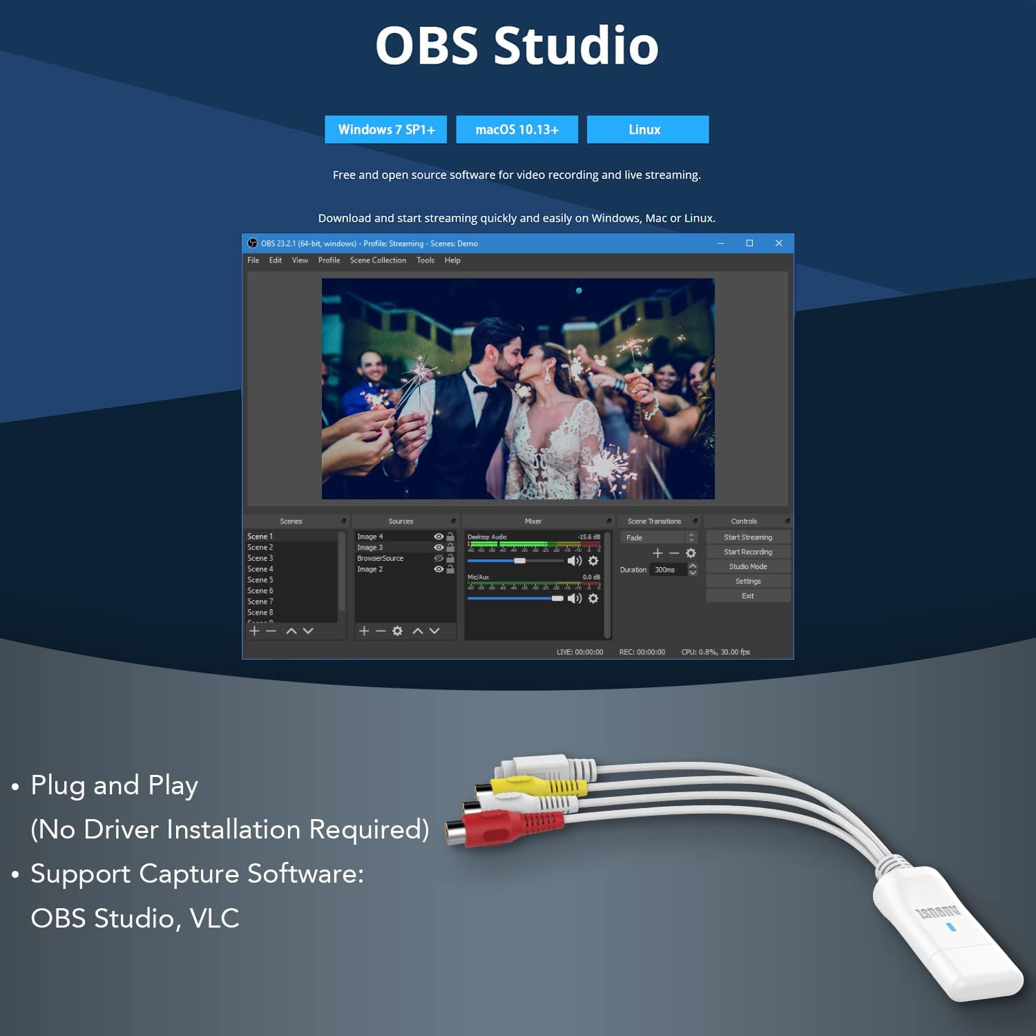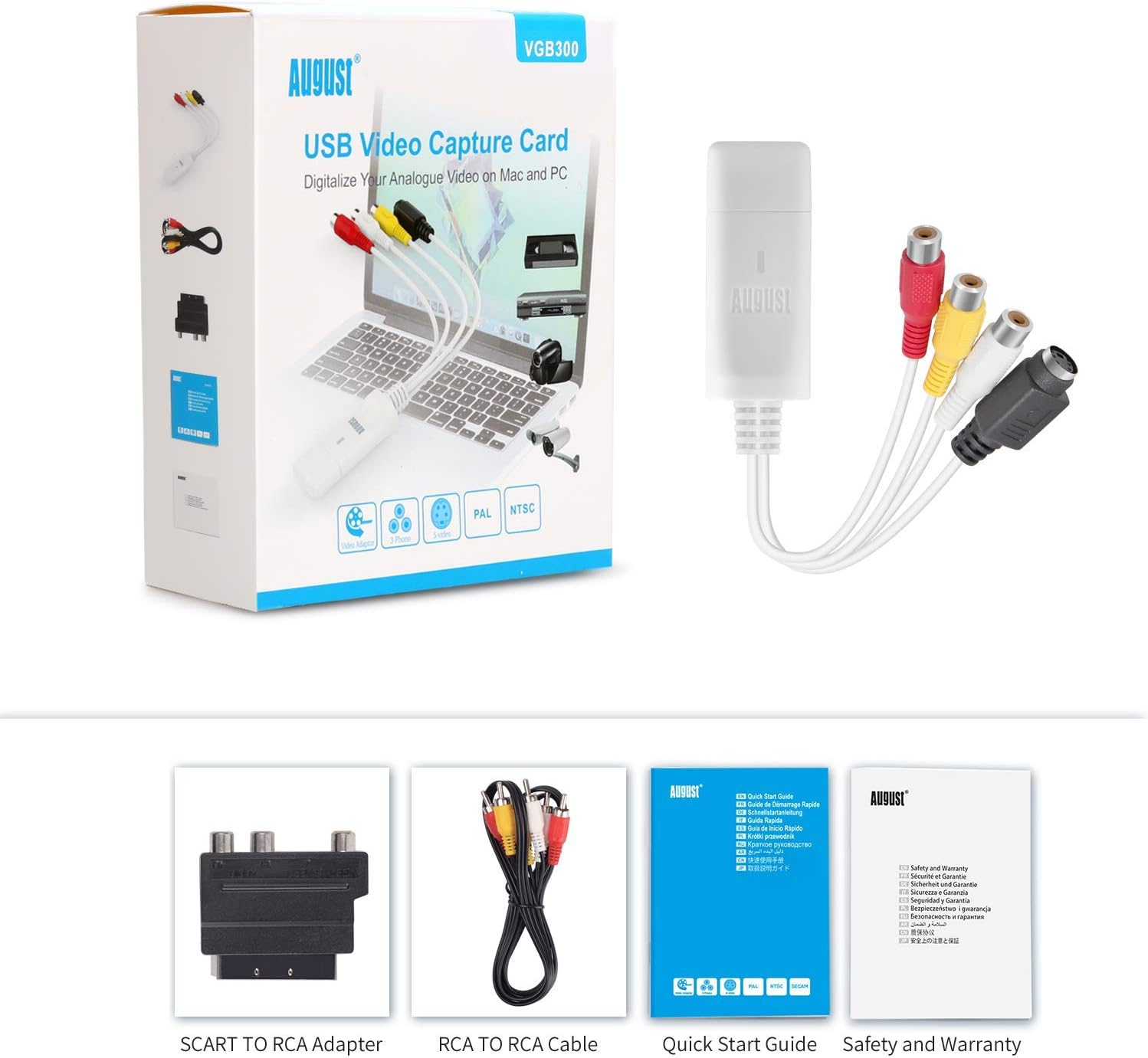 August External USB Video Capture Card VGB300 – Transfer VHS Home Videos to Mac OS and PC Windows – S-Video and Composite in