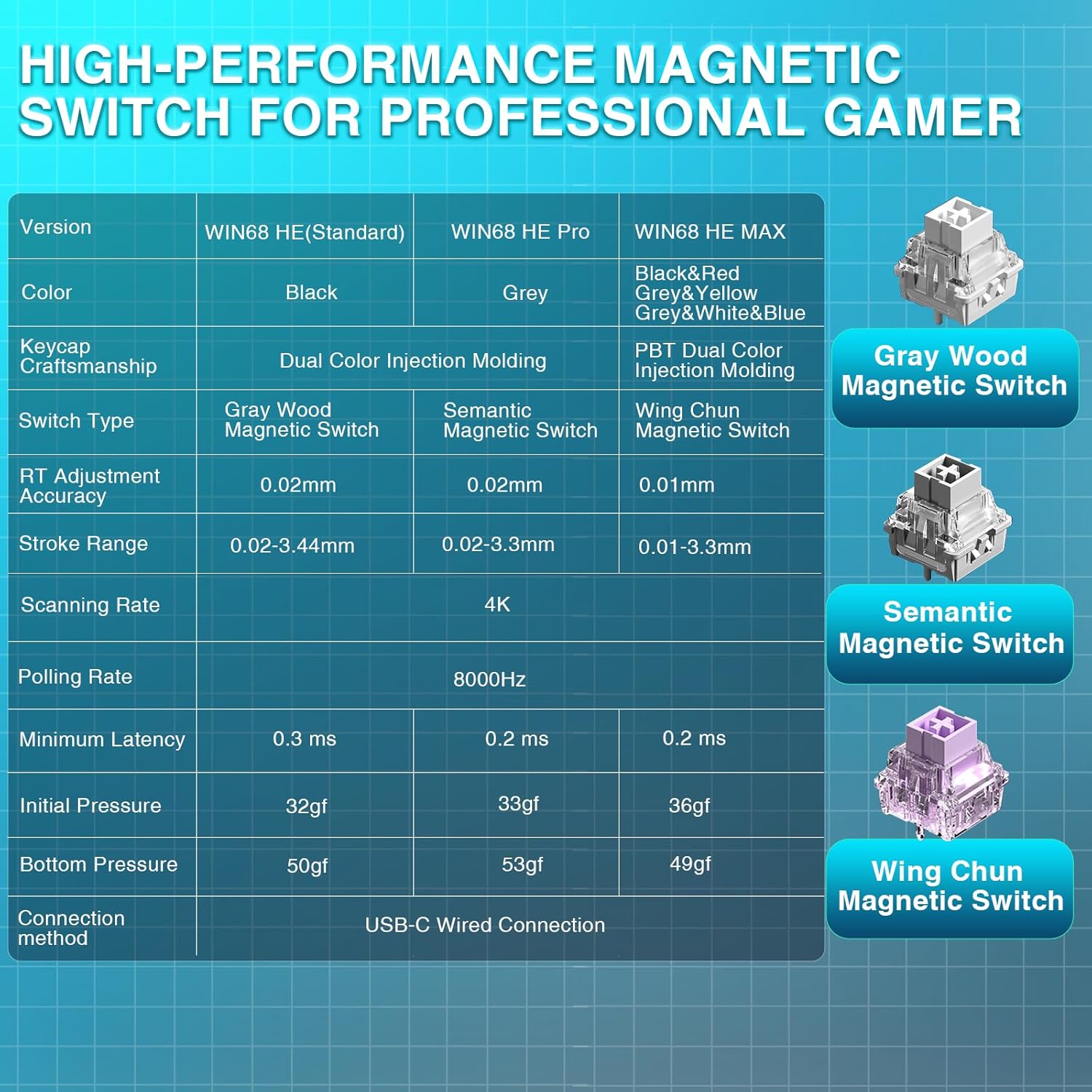 AULA WIN68 HE MAX – Hall Effect Gaming Keyboard with Magnetic Switch, Adjustable Actuation Fast Trigger Mode, 8KHz Polling Rate, RGB Backlit Wired Mechanical Gaming Keyboard 60 Percent Compact Design