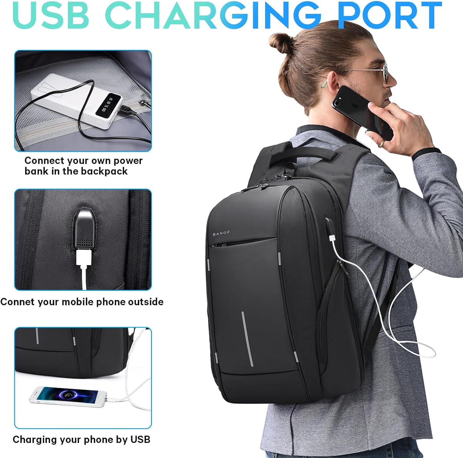 BANGE Travel Backpack for 15.6 Inch Notebook,Lightweight Work Backpacks for Men, Daily Fashion Backpack for Men and Women
