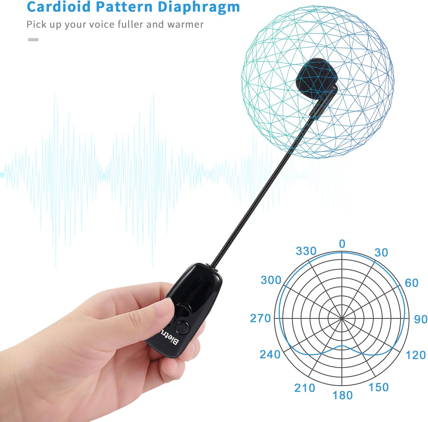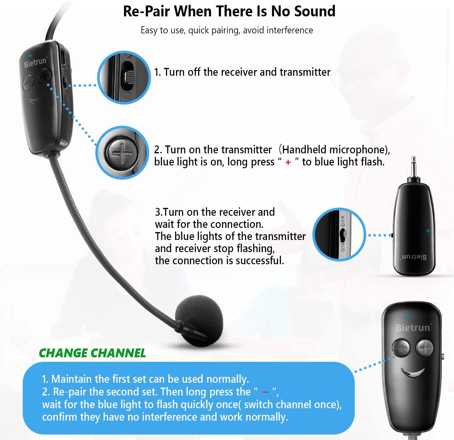 Bietrun Wireless Microphone Headset, UHF Wireless Headset Mic System, 160ft Range,1/8” and 1/4” Plug, for Speakers, Voice Amplifier, PA System(Not Supported AUX/iOS)