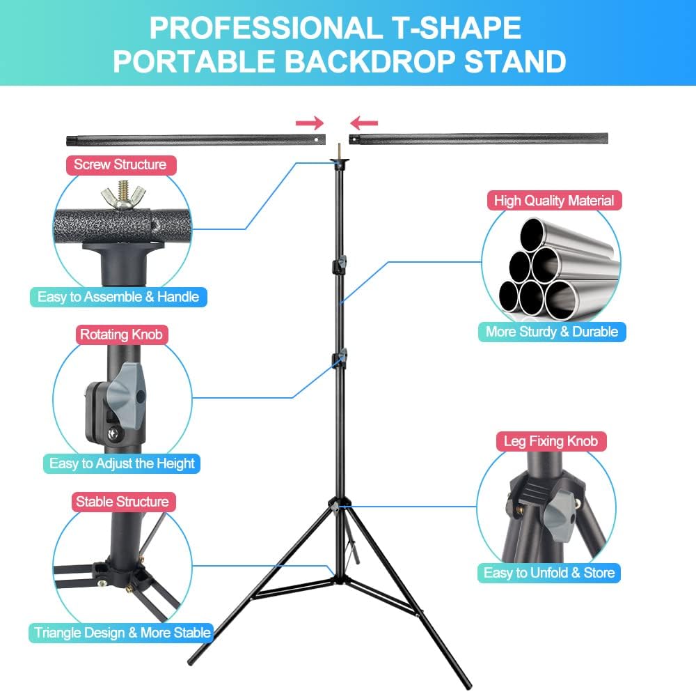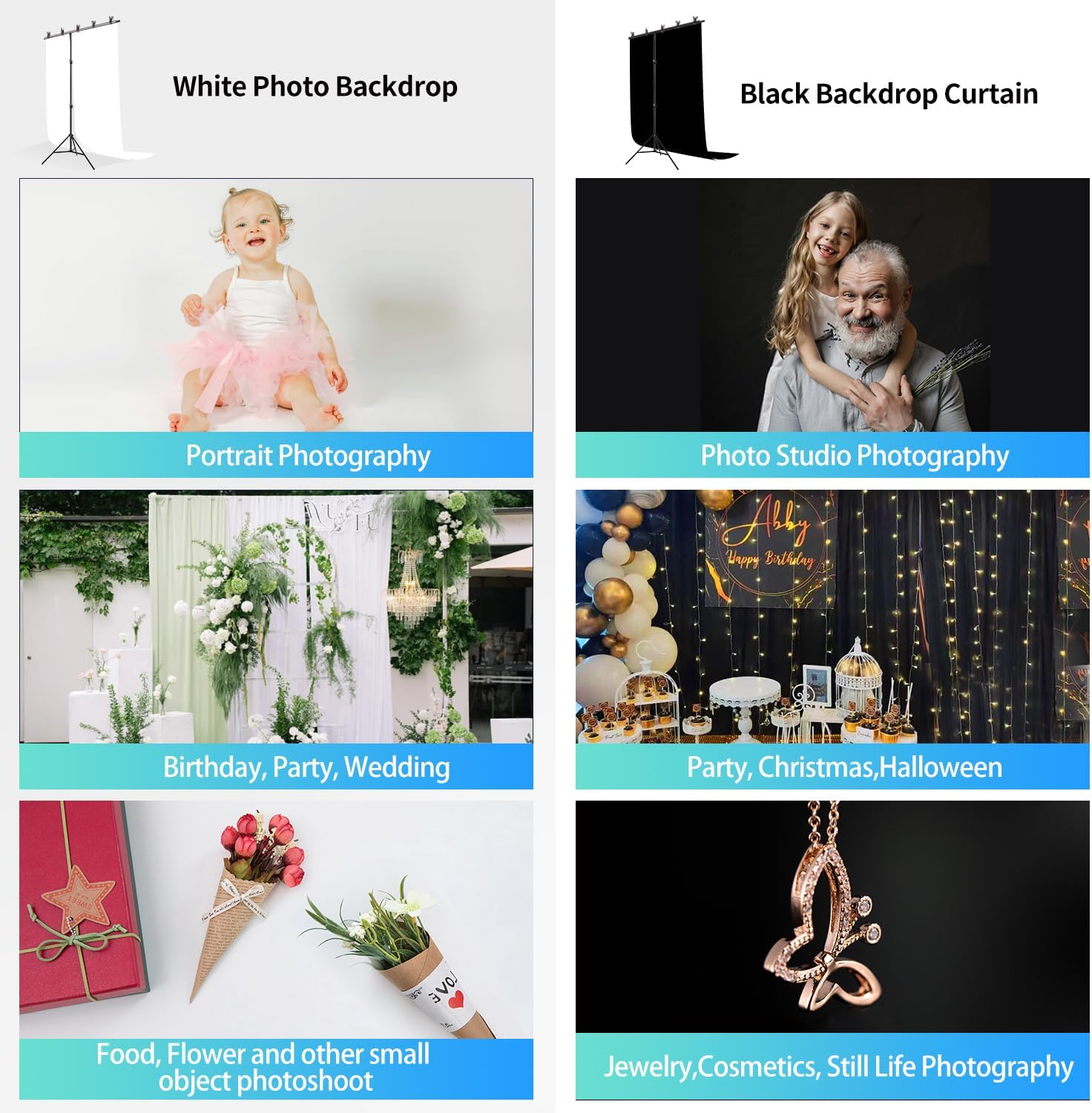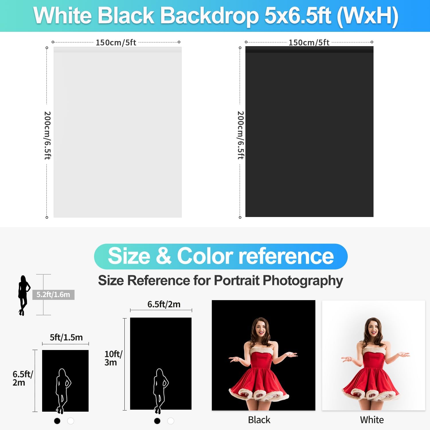 Black White Backdrop Screen with Stand Kit for Photo Video Studio Filming 5X6.5ft, Black Backdrop White Photo Curtain Background with T Shape Stand and 5 Spring Clamp for Photography Party Decorations