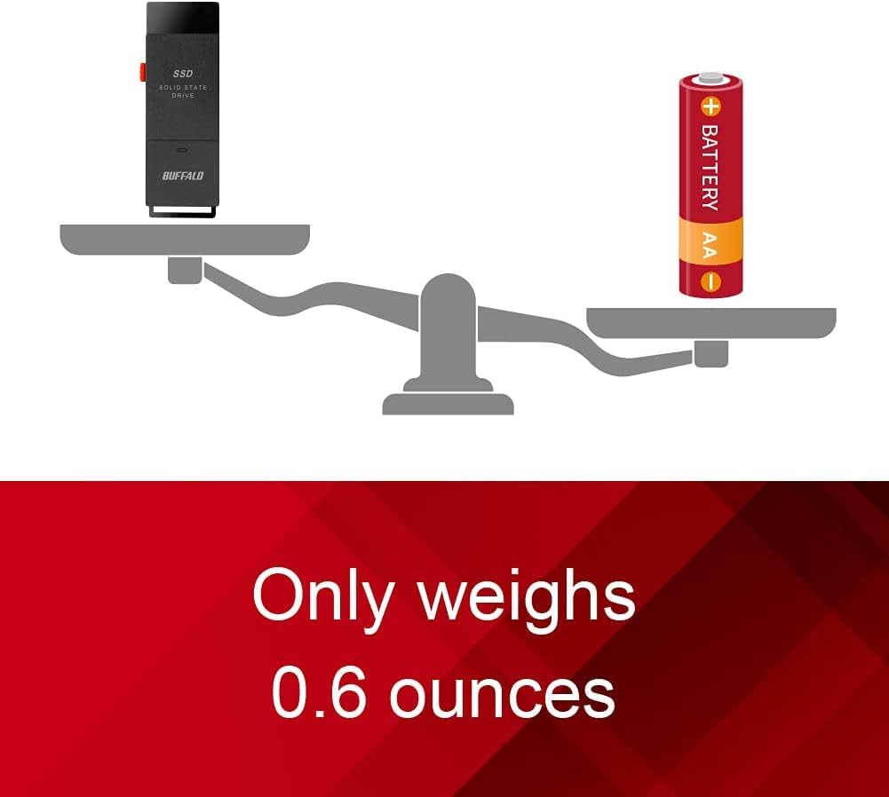 BUFFALO External SSD 1TB – Up to 600MB/s – USB-C – USB-A – USB 3.2 Gen 2 (Compatible with PS4 / PS5 / Windows/Mac) – External Solid State Drive Stick – SSD-PUT1.0U3B