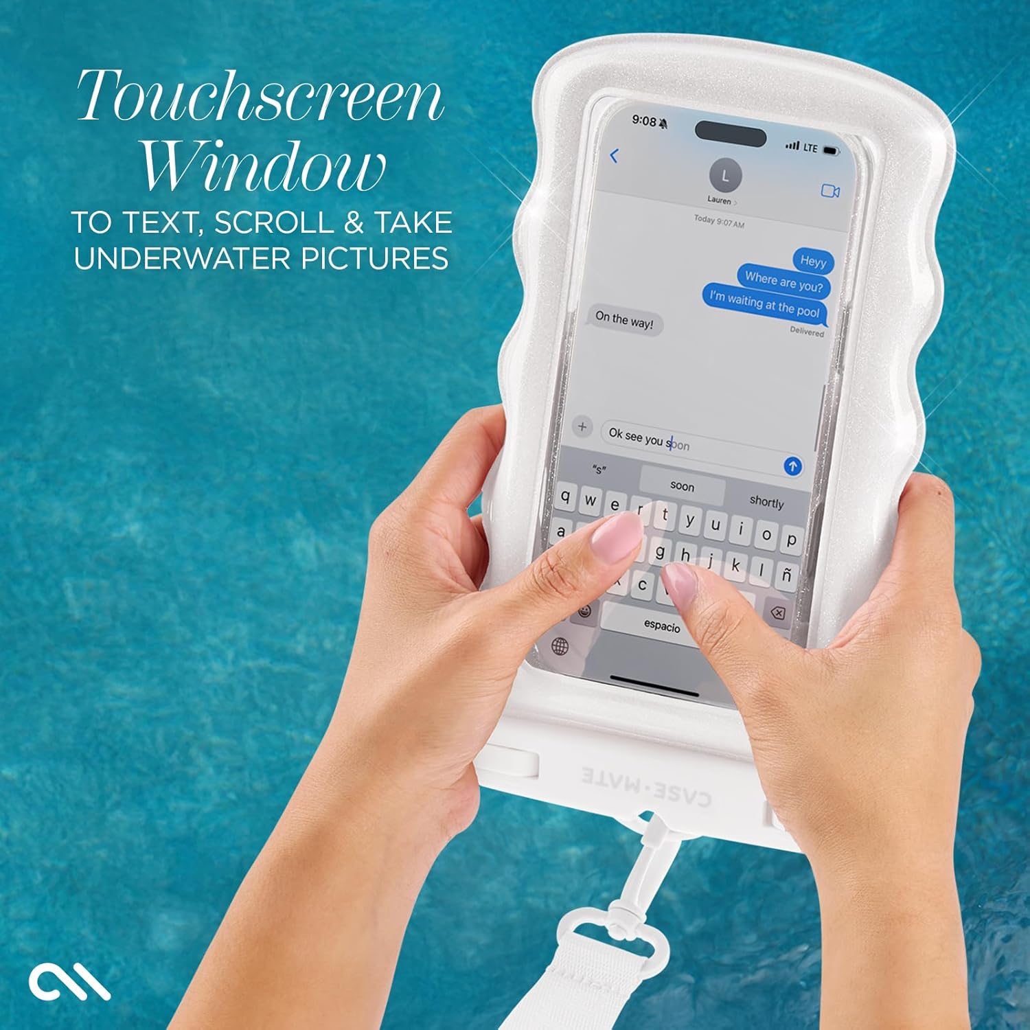 Case-Mate Wavy IP68 Waterproof Phone Pouch – Large Floating Phone Case w/Crossbody Lanyard – Cruise Ship Travel Essentials Compatible w/All Devices – Hidden Pocket for Card/Cash- Ivory Twinkle