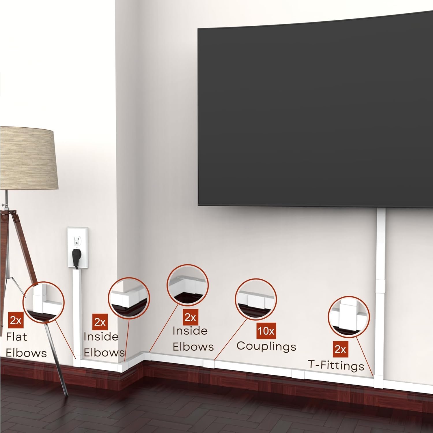 Cord Hider, Wire Cover, Cord Covers Wall Mounted TV, Cable Hider, 157 in Paintable White Raceway Kit, Electrical Cords Concealer, Cable Management, Hide Cords Wall, Wire Molding, Adhesive Channel