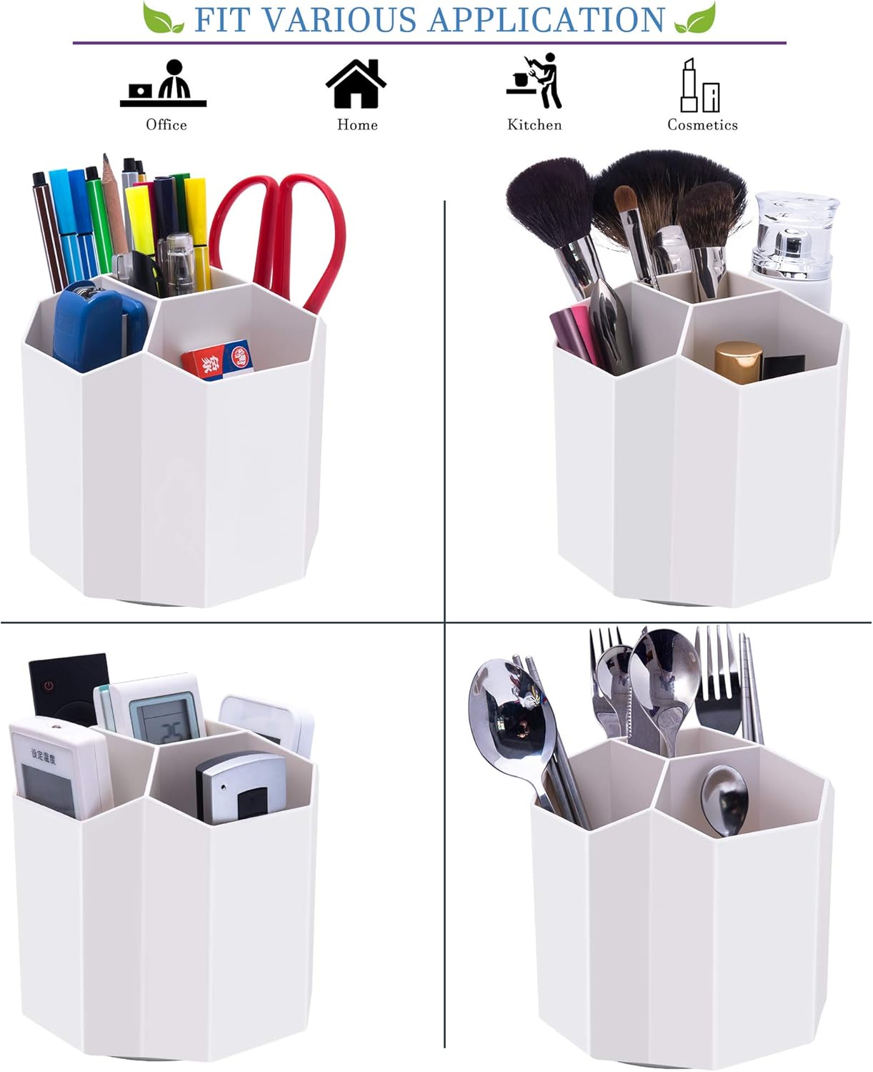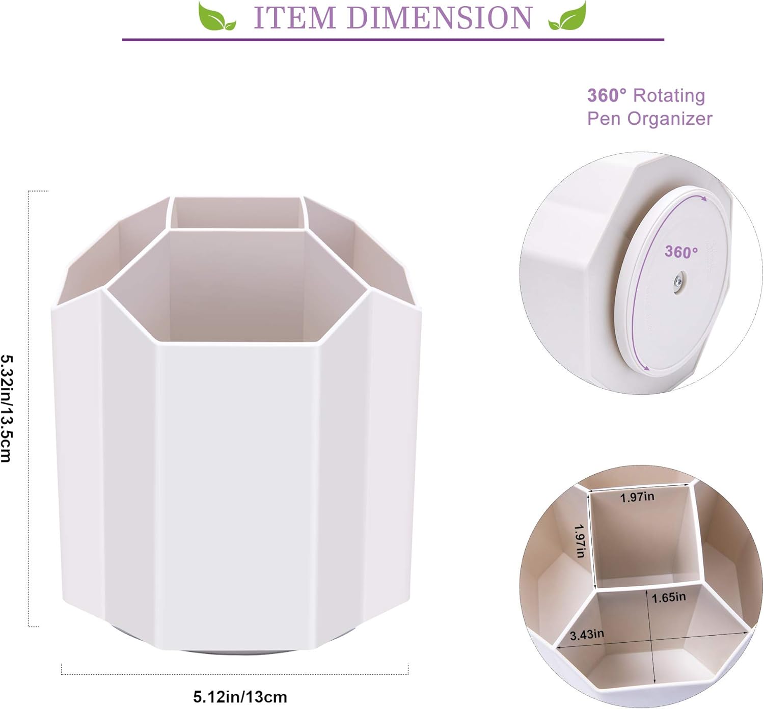 Desk Pencil Pen Holder, Rotating Pen Organizers 360-Degree 5 Grid Pen Holder for Desktop Storage Stationery Supplies Organizer, Home, Office, School, Kids, White