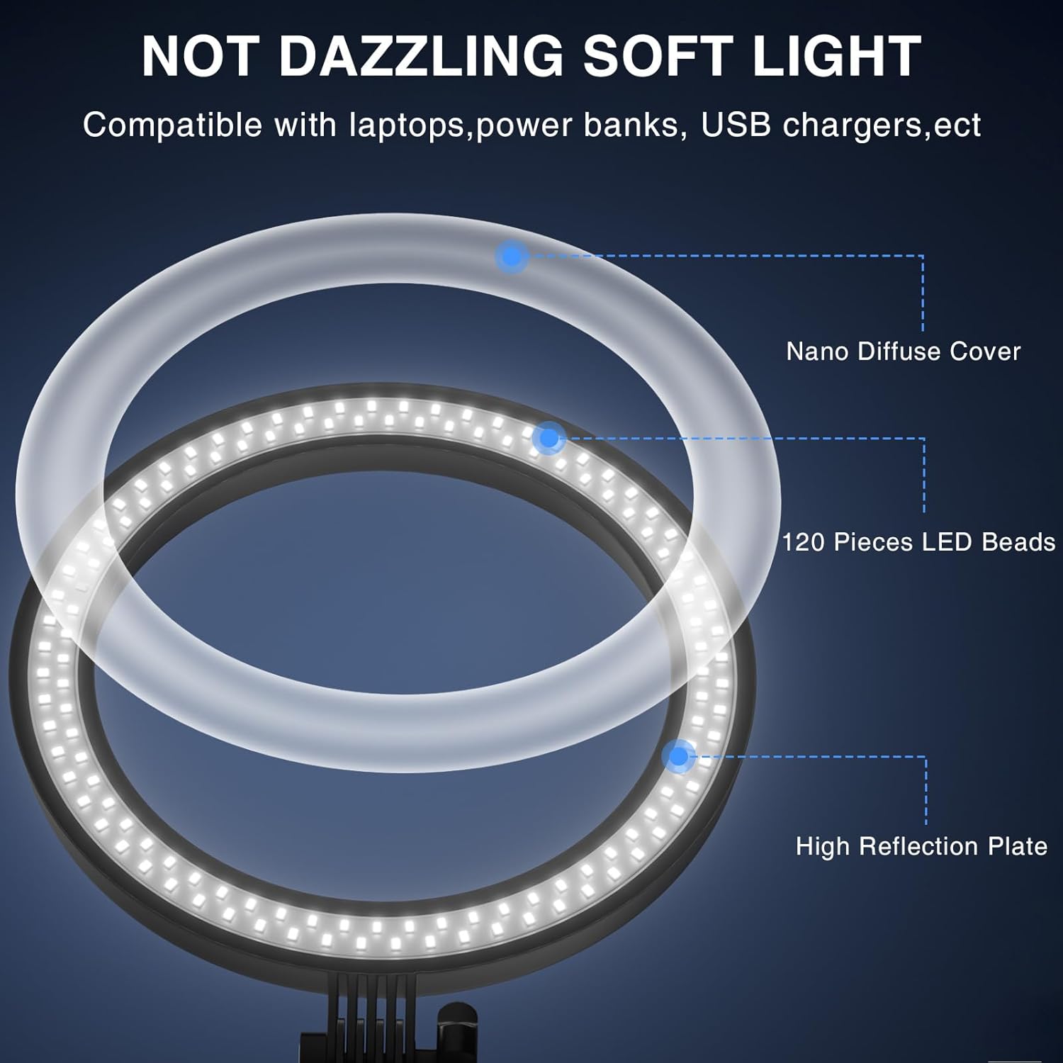 Desk Ring Light with Stand – 10.5” Desktop Ring Light with Phone Holder for Video Recording, Circle Light for Computer Zoom Meeting Video Conference Lighting Video Calls Podcast Streaming