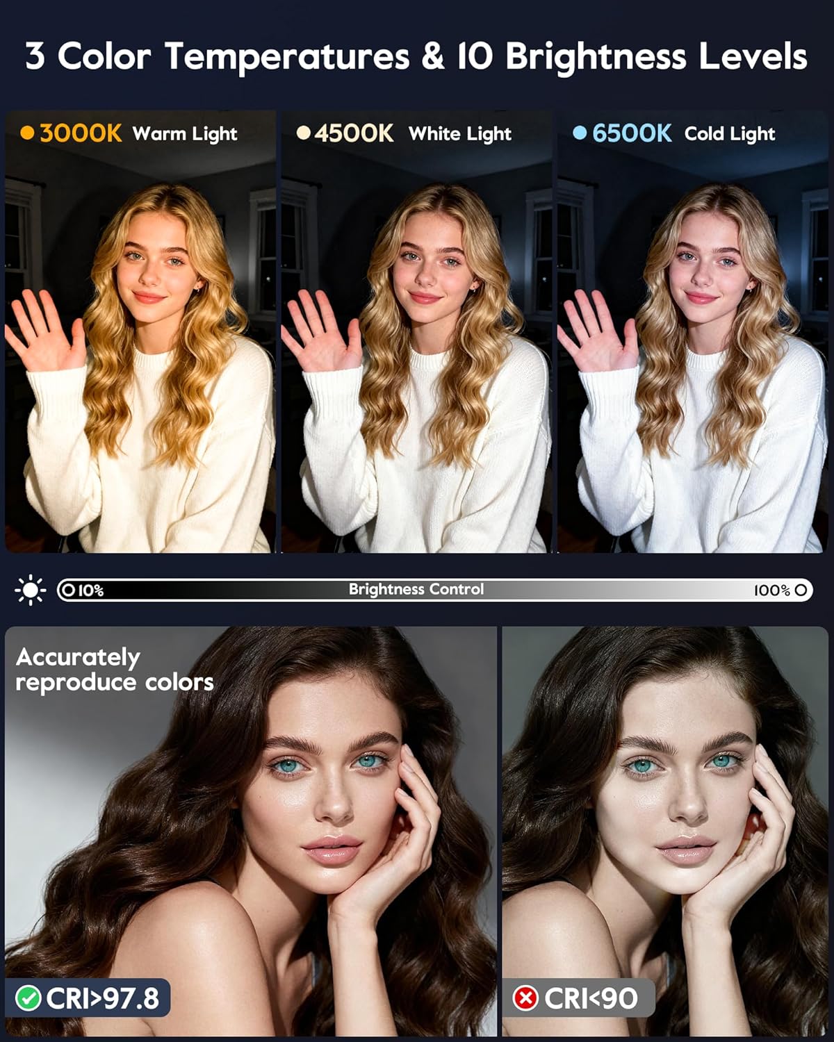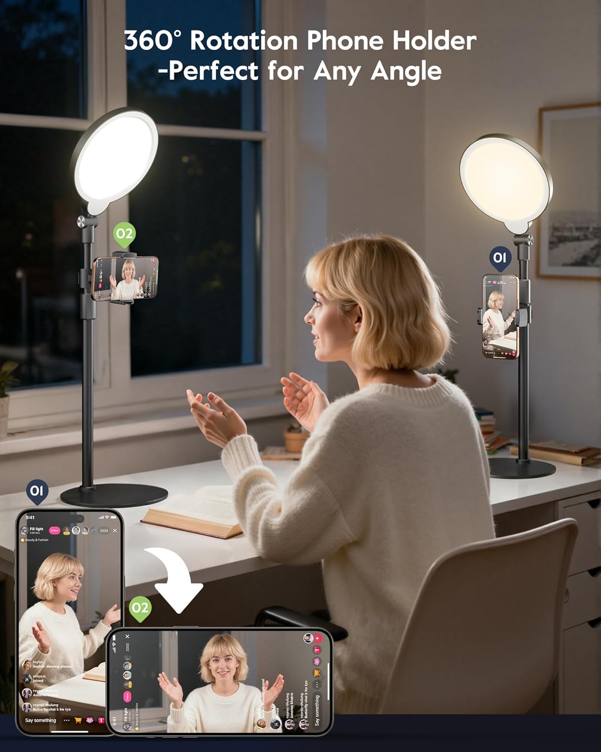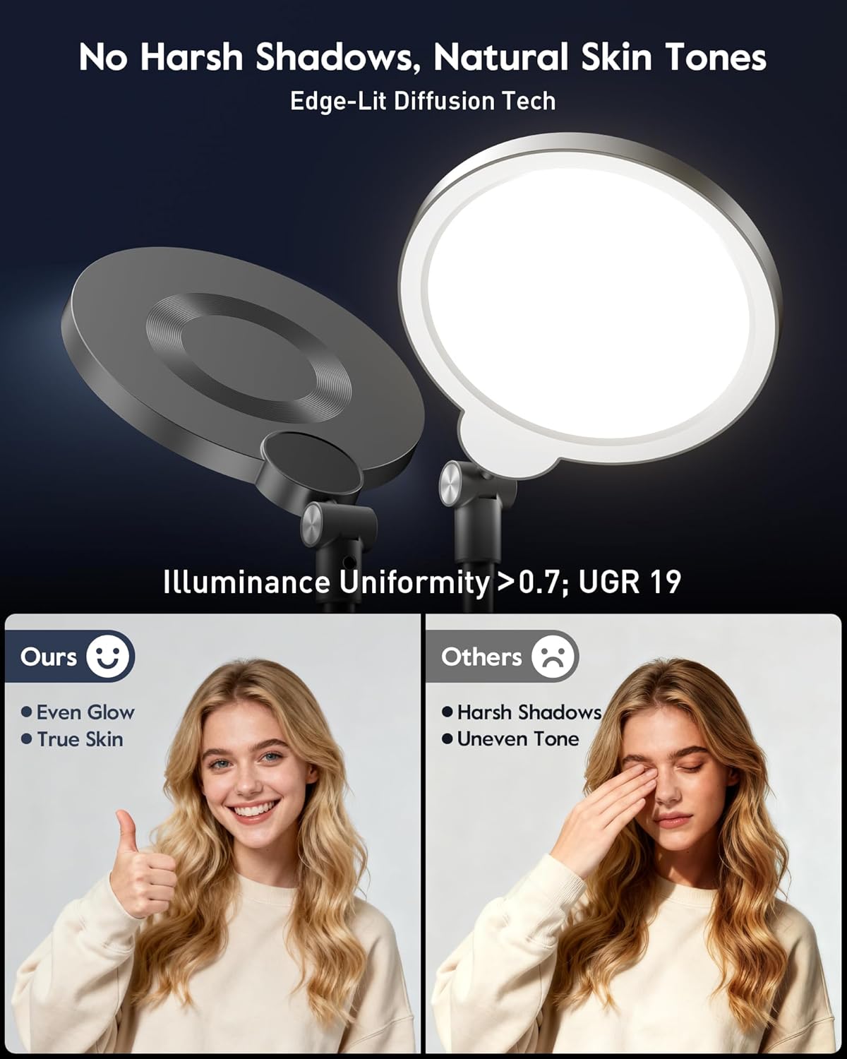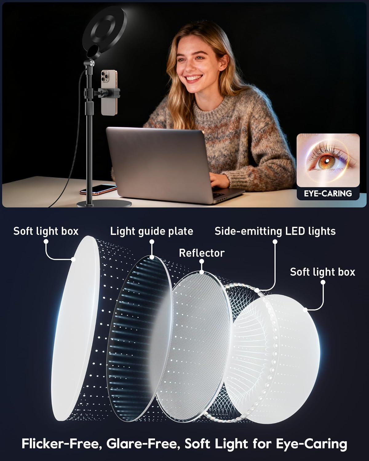 Dimmable Ring Light with Stand for Desk, Adjustable Desk Light for Video Recording, 30 Light Modes Video Conference Lighting, Zoom Lighting for Computer, Webcam, Podcast, Calls, Home Office, CRI 97.8