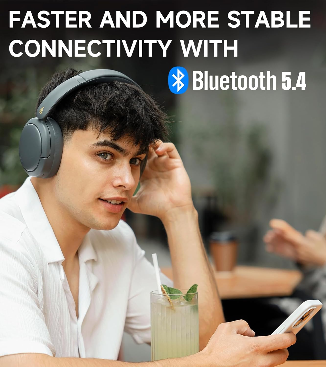 Edifier W800BT Pro Hybrid Active Noise Cancelling Headphones – Hi-Res Audio – AI Call Noise Cancellation – 45H Playtime – Fast Charging – Foldable – Wireless Over-Ear Bluetooth 5.4 Headphones – Gray