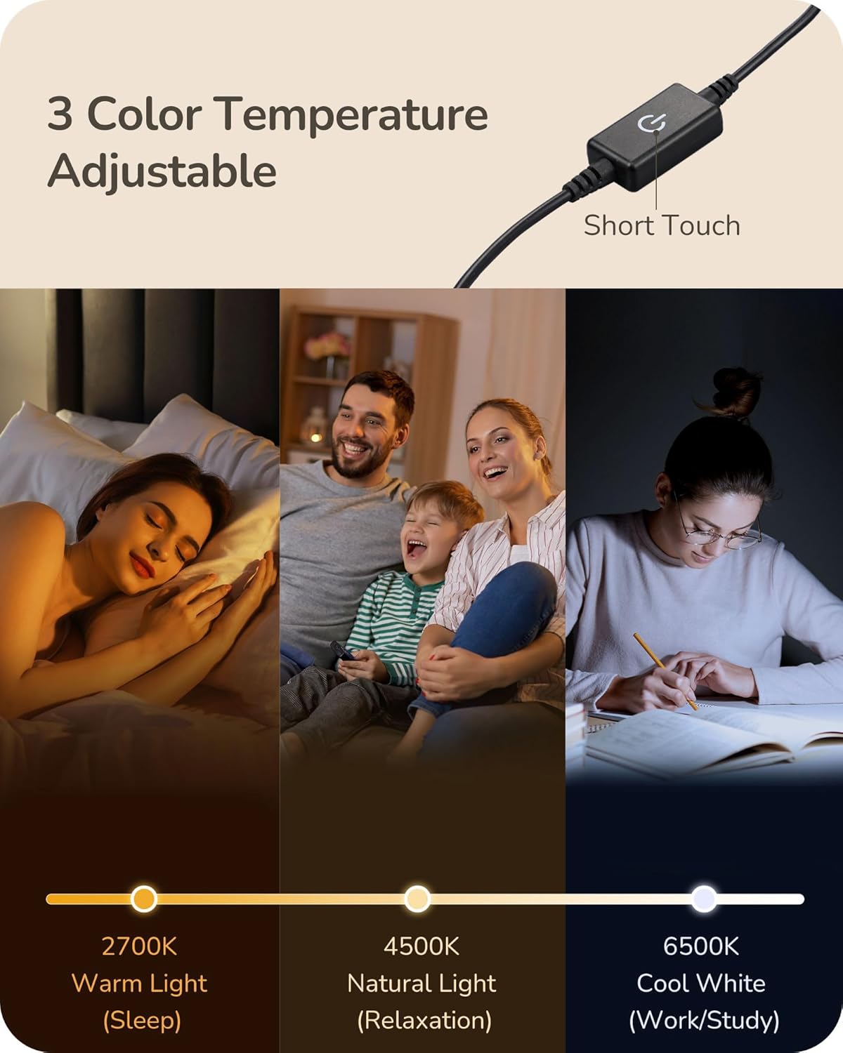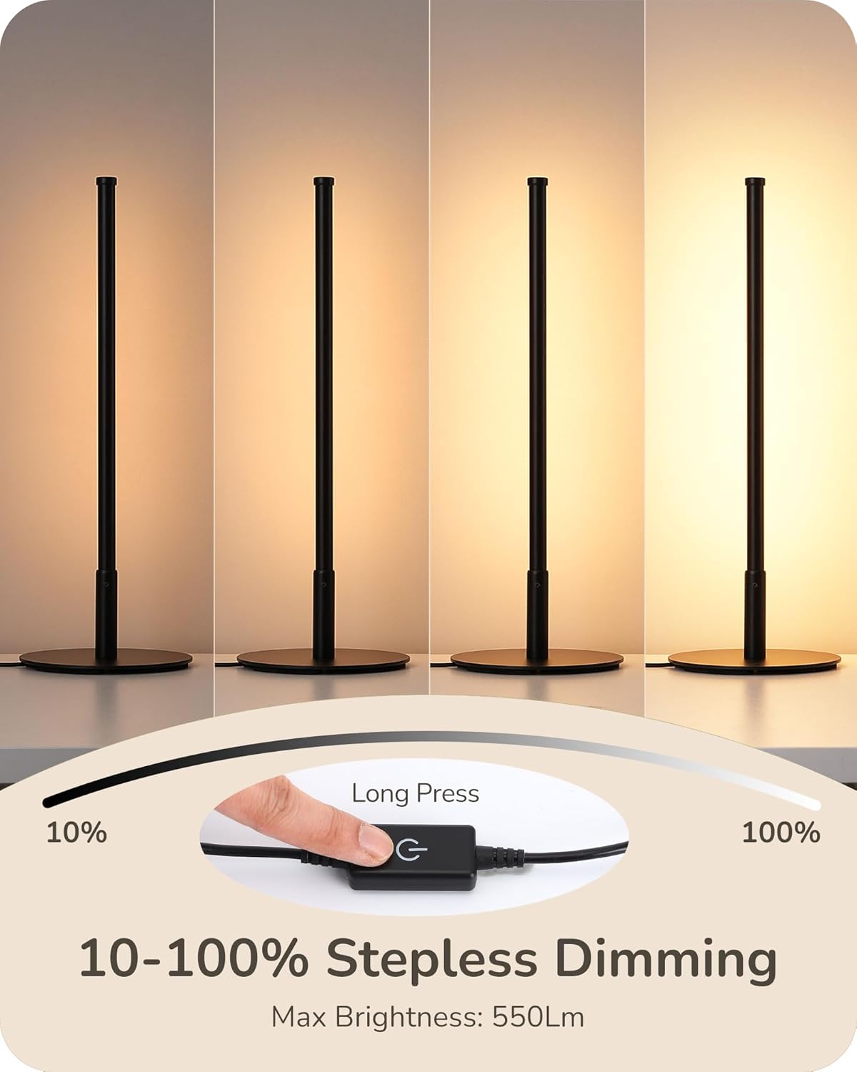 EDISHINE Upgraded LED Table Lamp, Stepless Dimmable Bedside Lamp with 3 Color Temperature, Modern Nightstand Lamp, Desk Lamp for Bedroom, Living Room, Corner, Gift, Metal Finish, Black, 6W
