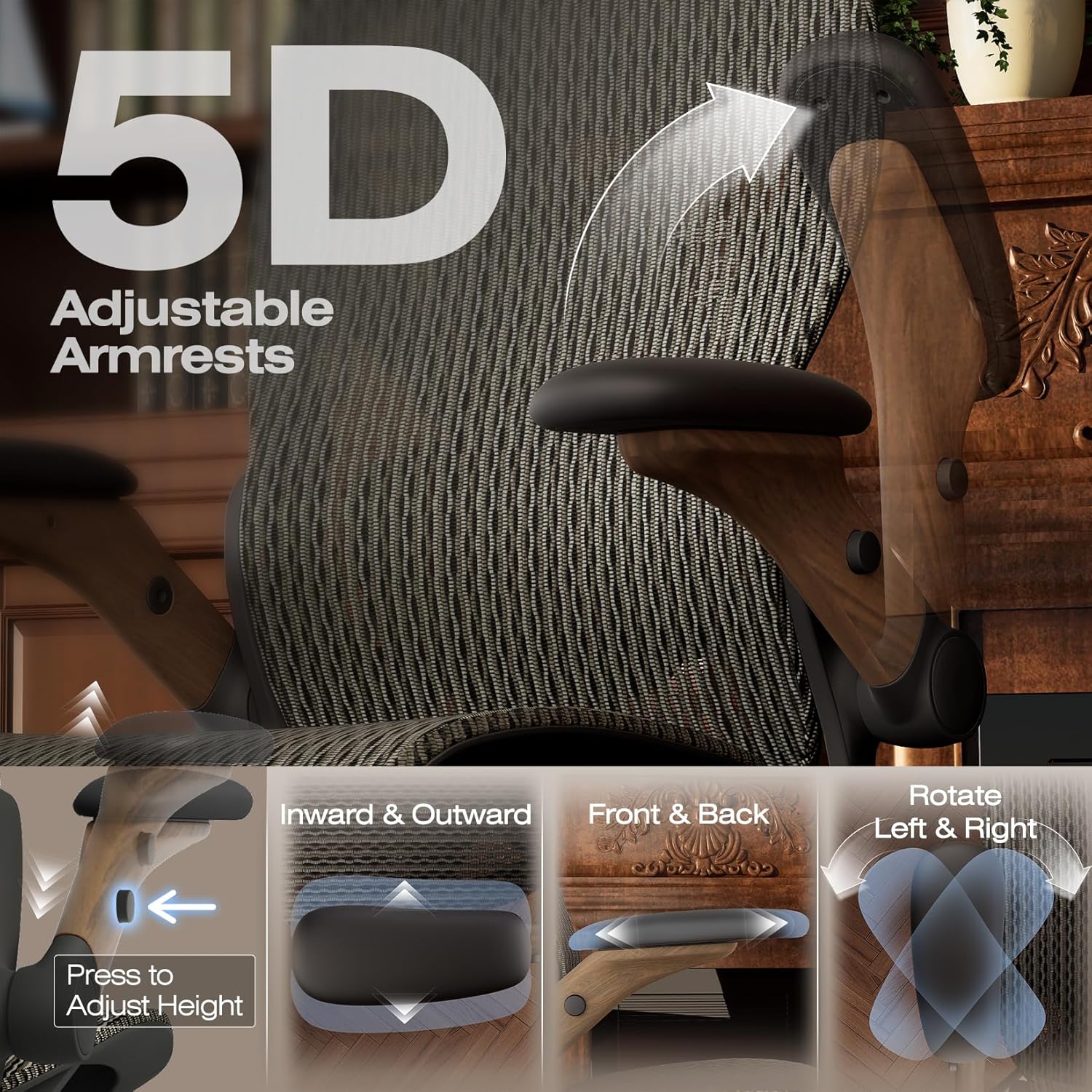 ELABEST X100 Ergonomic Office Chair with Footrest, Big and Tall Home Desk Chair with 5D Flip-Up Arms, Adjustable 3D Lumbar Support,High Back Rolling Computer Chair, Swivel Mesh Chairs (Coffee Break)
