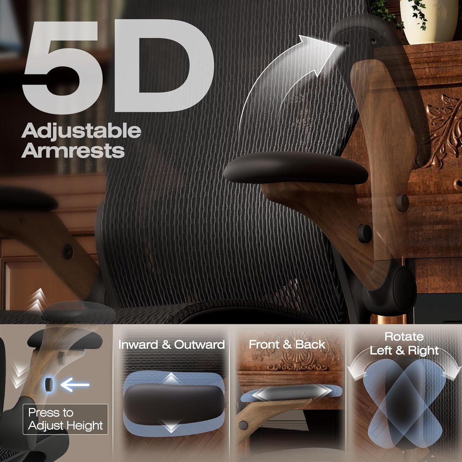 ELABEST X100 Ergonomic Office Chair with Footrest, Big and Tall Home Desk Chair with 5D Flip-Up Arms, Adjustable 3D Lumbar Support,High Back Rolling Computer Chair, Swivel Mesh Chairs (Library Oak)