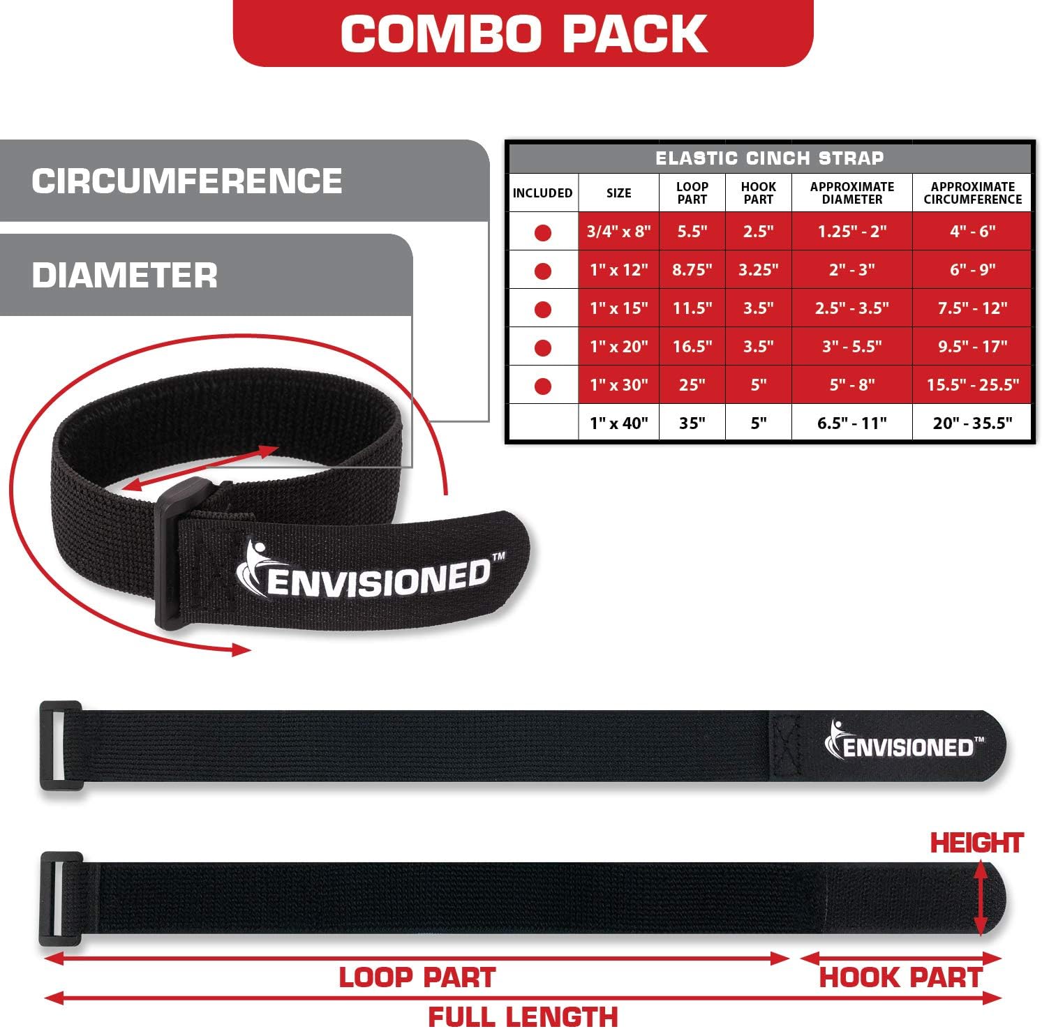 Elastic Reusable Cinch Straps & Cable Ties, 26 Pack Combo Set Assortment, Multipurpose Quality Hook & Loop Cable Organizer, Securing Straps