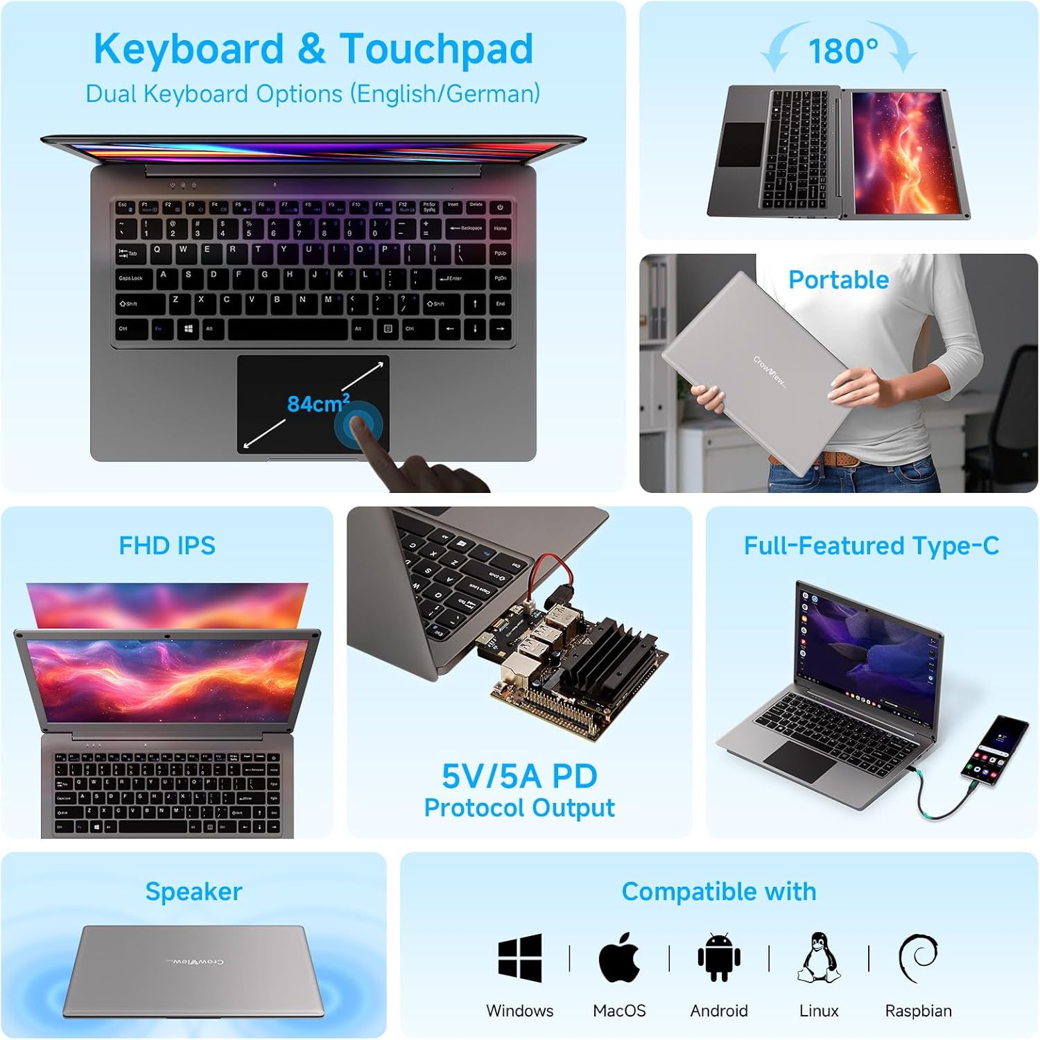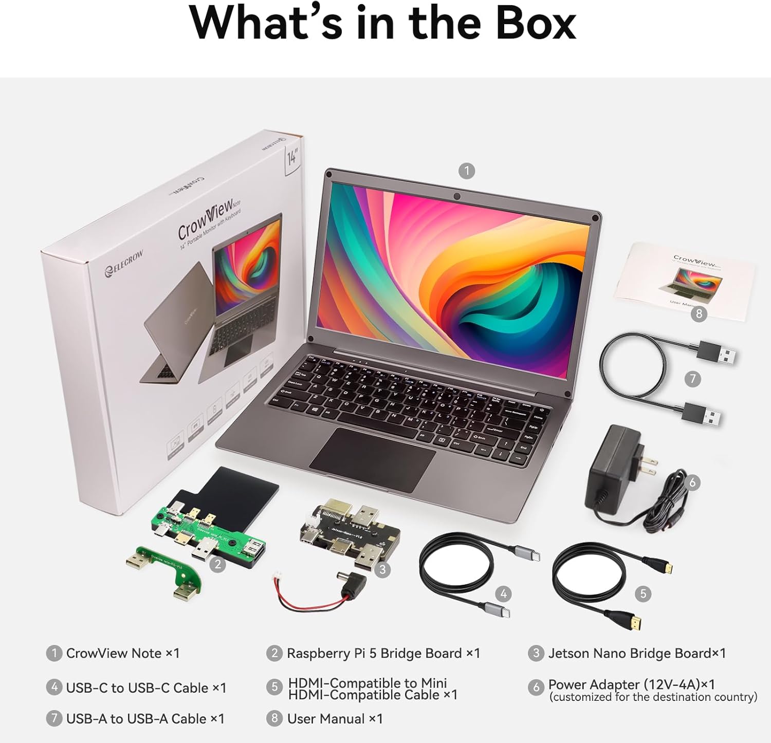 ELECROW Portable Monitor with Keyboard, 14 Inch Lapdock Display with Built-in Battery, 1080P FHD USB C Monitors with RPi5 & Jetson Adapters Compatible with Raspberry Pi, PC, Phone, Mac, Game Console