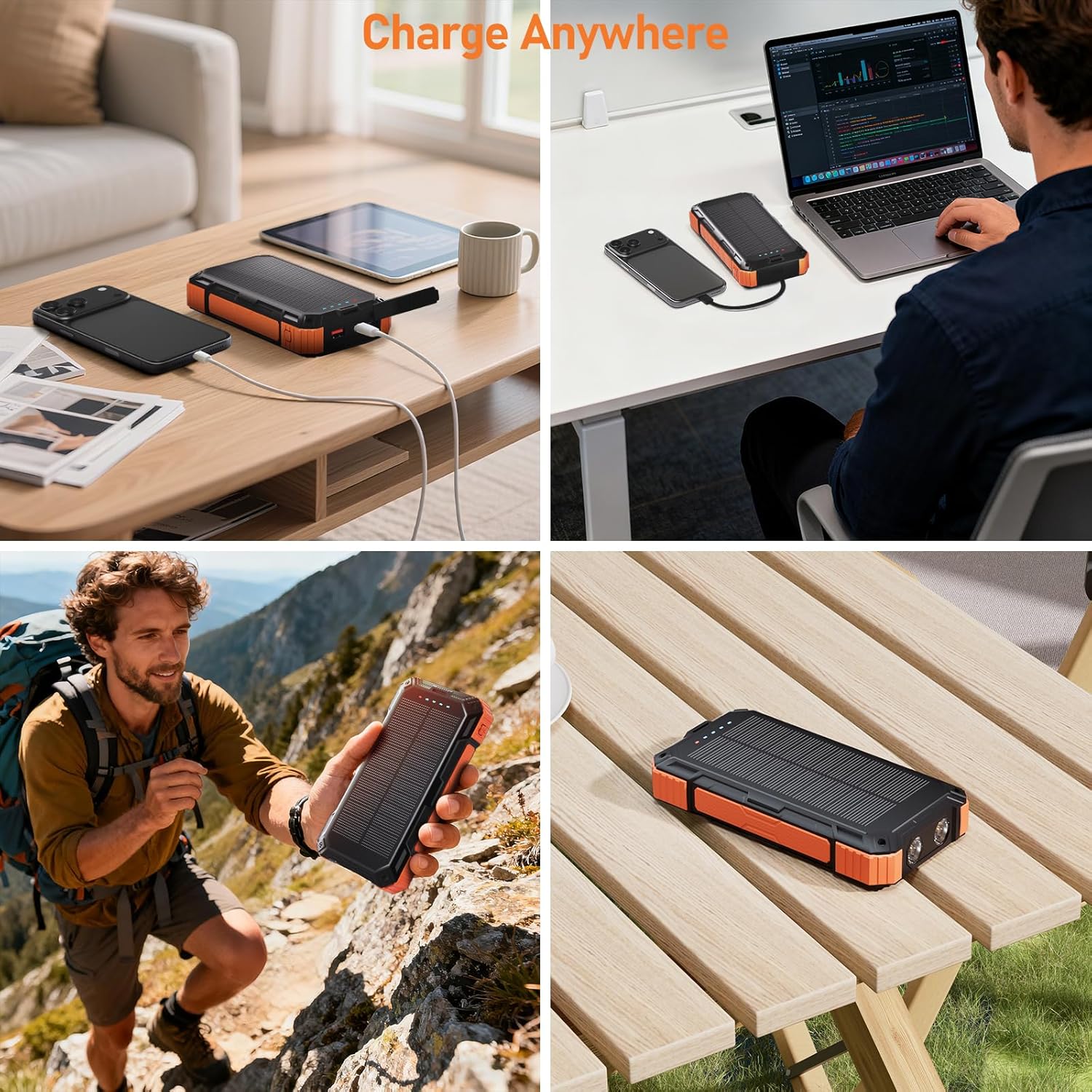 ERRBBIC Solar Charger Power Bank 49800mAh, 22.5W Portable Charger, 15W Wireless Charging, Solar Panel Charger, Built-in Four Cable, with USB C for Cell Phones, with Dual Flashlight for Camping