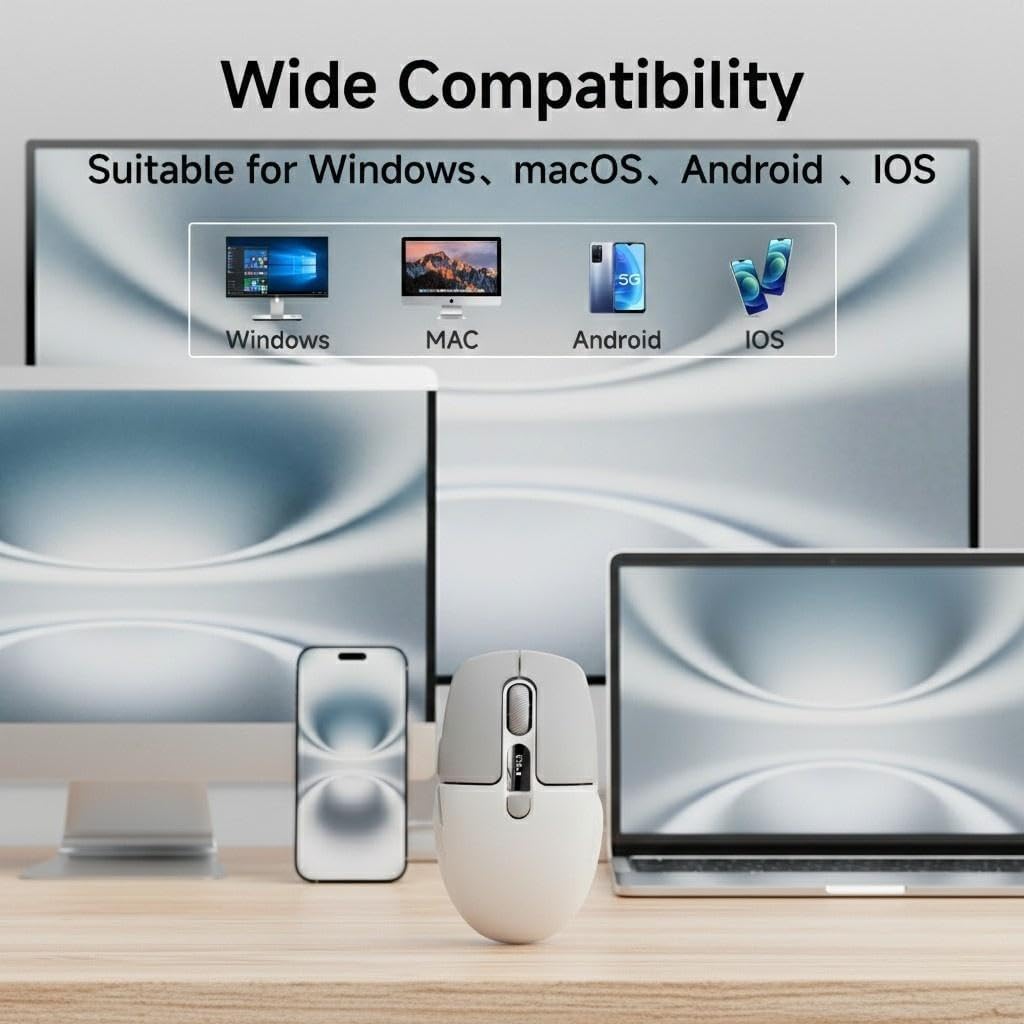 EWEADN Q1 Wireless Mouse, BT & 2.4G Silent Mouse Quiet Click with 1600 DPI Levels, Battery & DPI LED Screen Display, 6 Button Small Portable Bluetooth Mouse for Laptop/PC/Mac-Grey