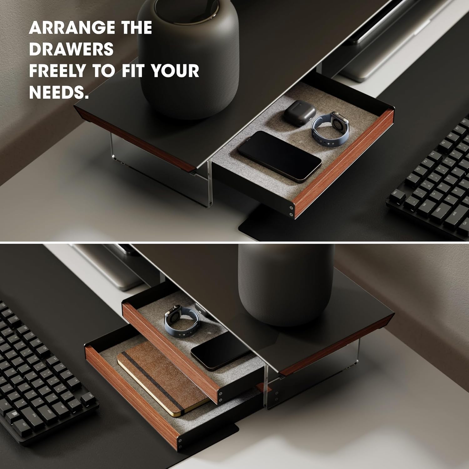 Fenge Dual Monitor Stand with Drawer, 42.5 Inch Large Monitor Riser with Acrylic Legs Supports, Computer Stand for Desk, 2 Tier Wood Desk Shelf with Storage Organizer for PC, Laptop, Printer, TV