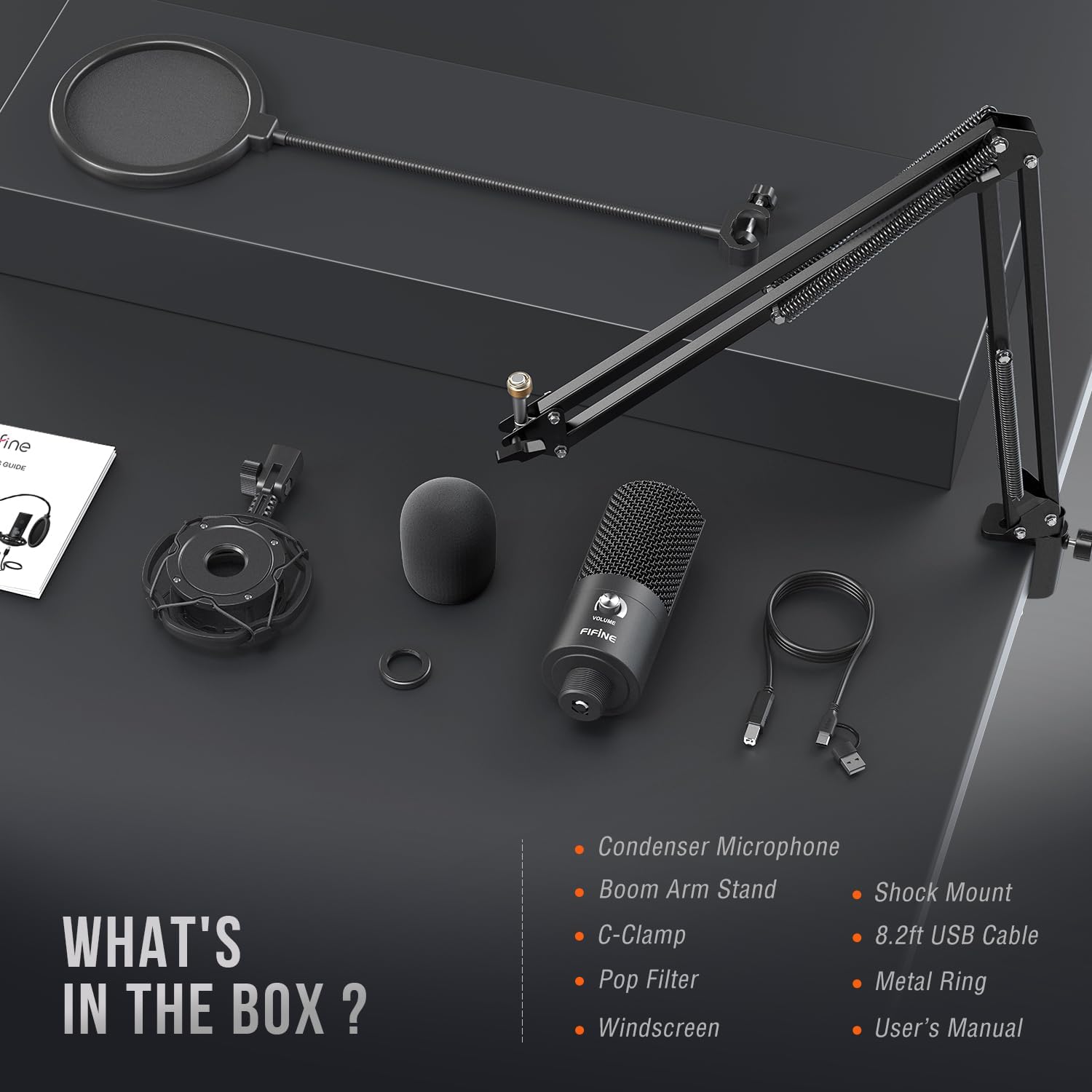 FIFINE Studio Condenser USB Microphone Computer PC Microphone Kit with Adjustable Boom Arm Stand Shock Mount for Instruments Voice Overs Recording Podcasting YouTube Vocal Gaming Streaming-T669