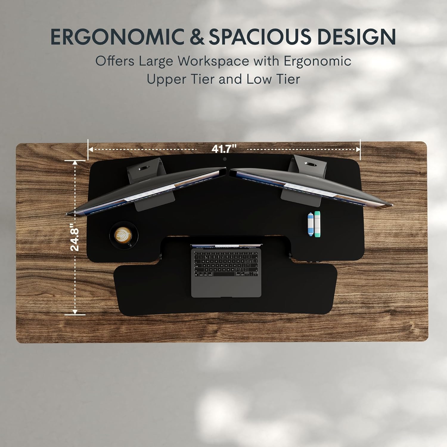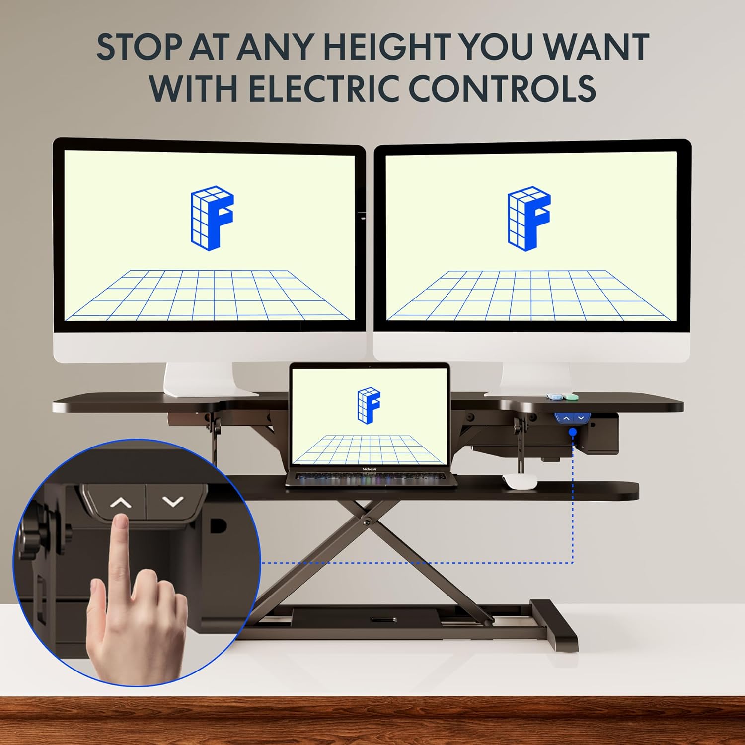 FLEXISPOT 42 inch Electric Motor Desk Converter, Height Adjustable Motorized Stand up Desk Riser with Quick Release Keyboard Tray, Black Monitors and Laptop Workstation