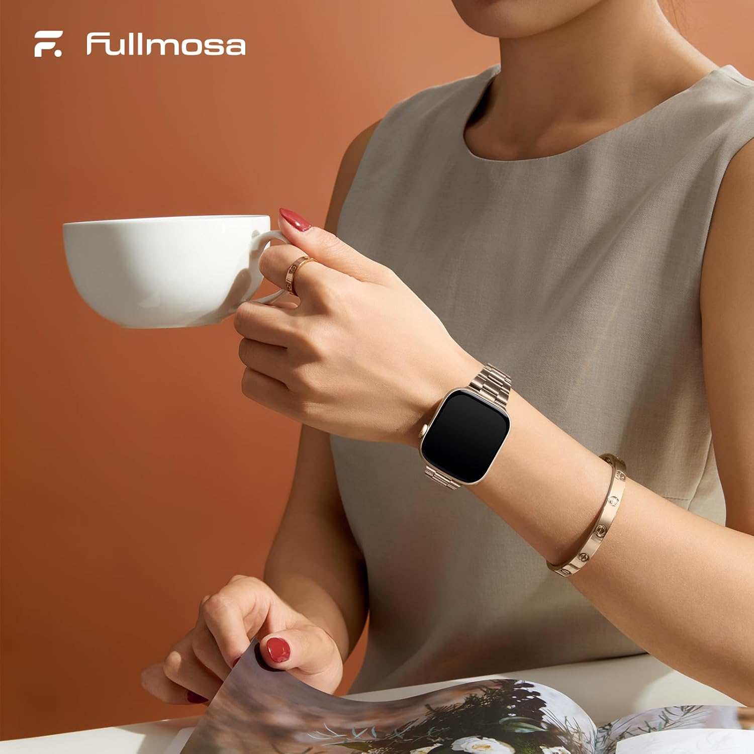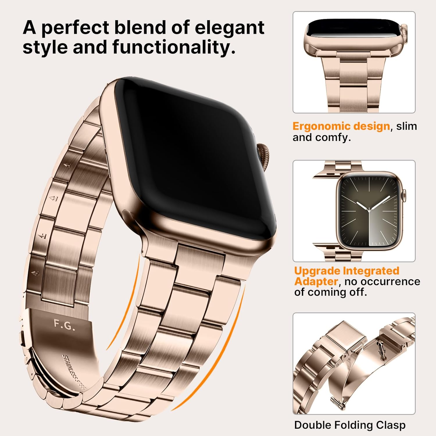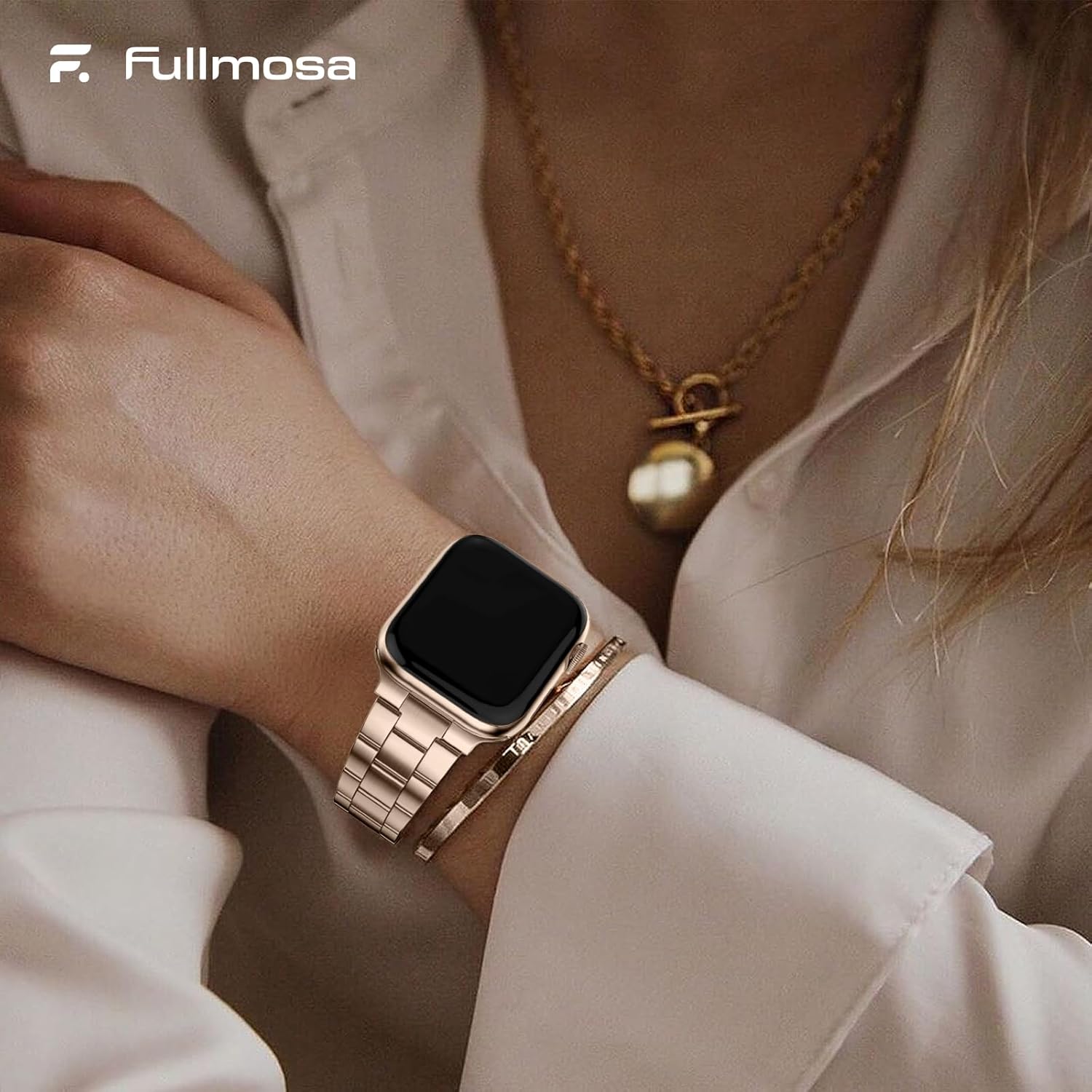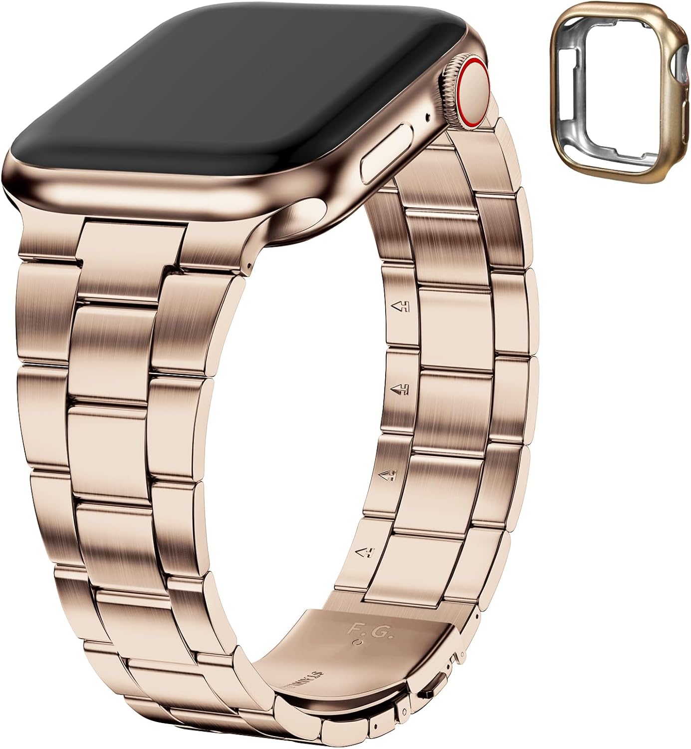 Fullmosa No Tools Needed Compatible with Apple Watch Bands for Women Men 41mm 40mm 38mm 46mm 49mm 45mm 44mm 42mm, Metal Strap with Case for iWatch Series 11 10 9 8 7 6 5 4 3 2 1 SE3/2/1 Ultra3/2/1, 38mm 40mm 41mm, Rose Gold