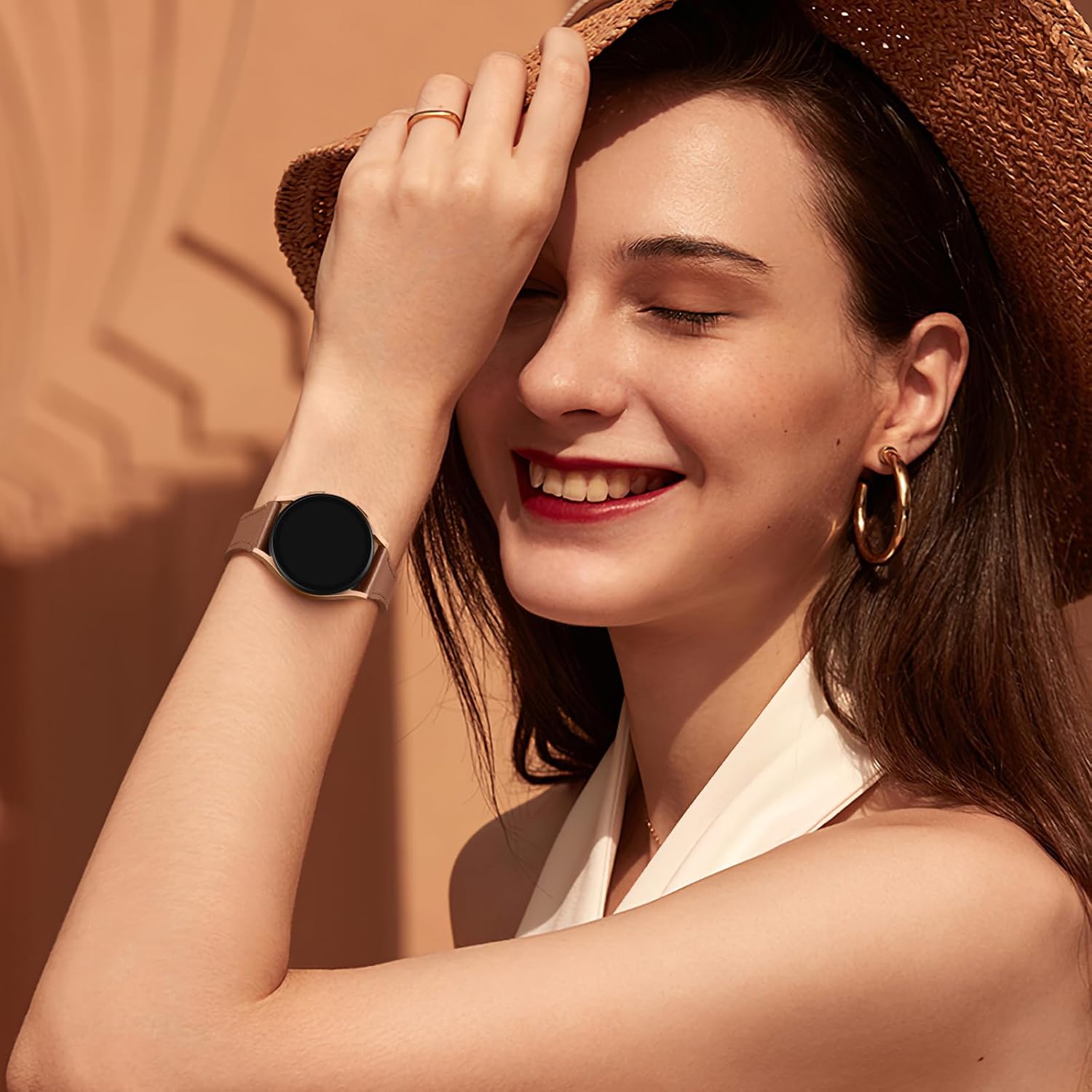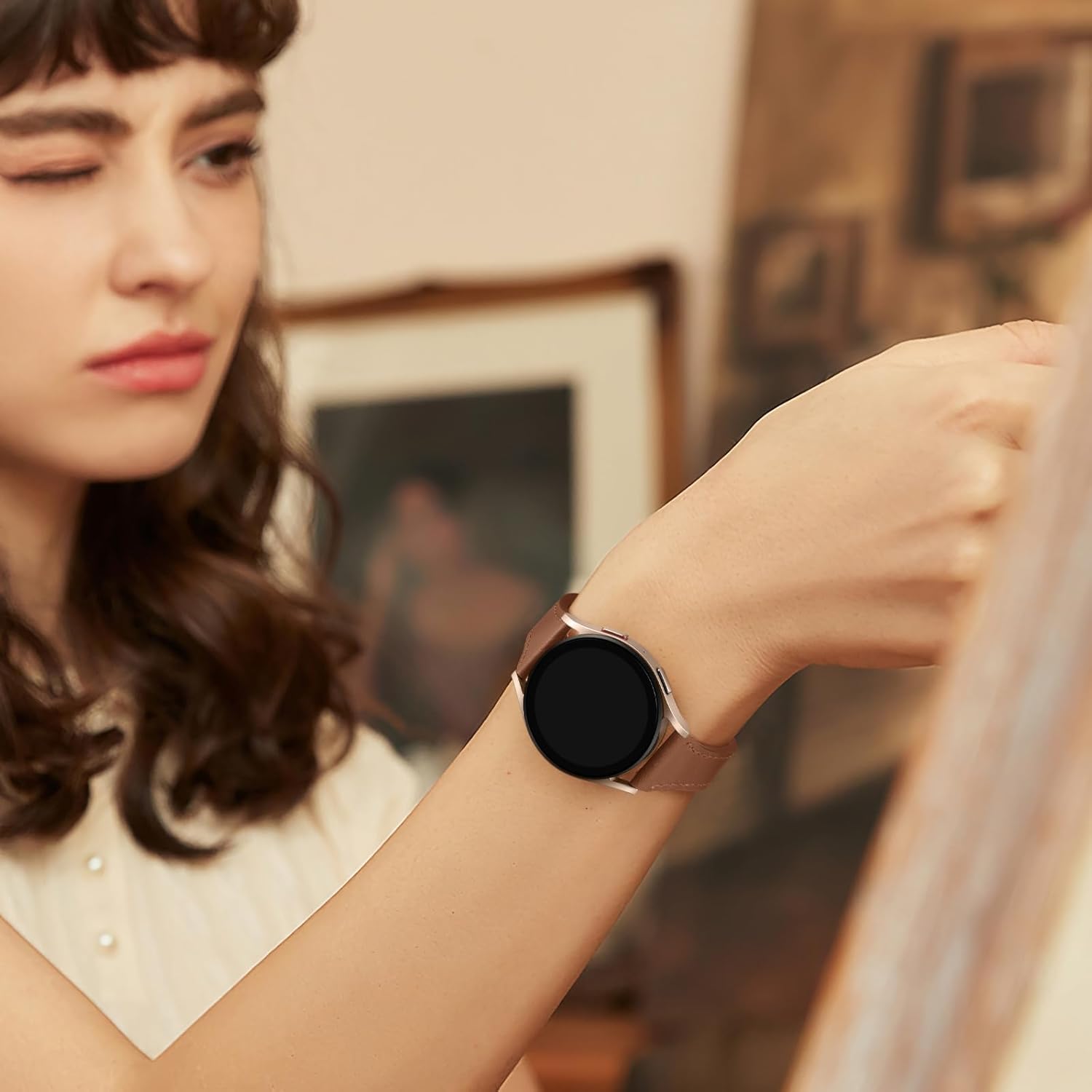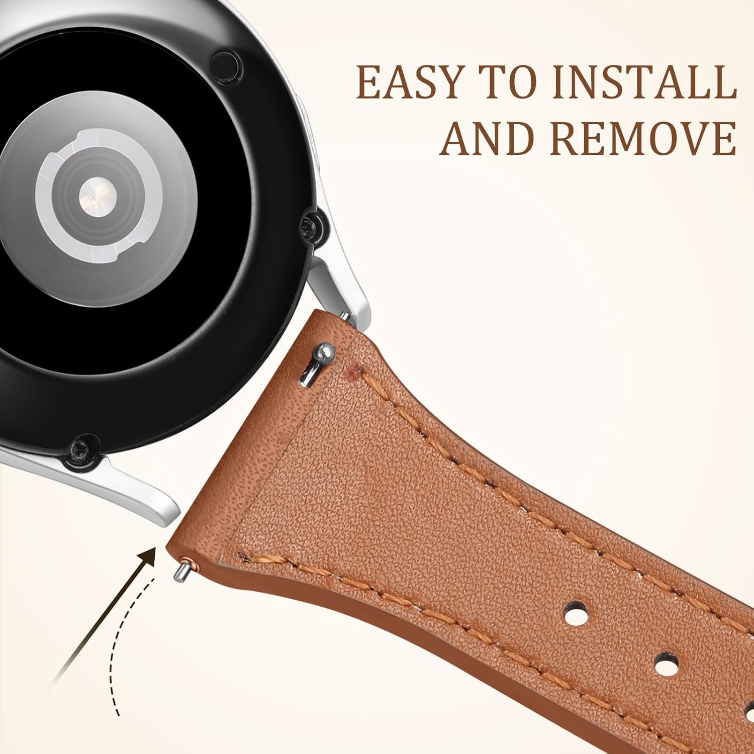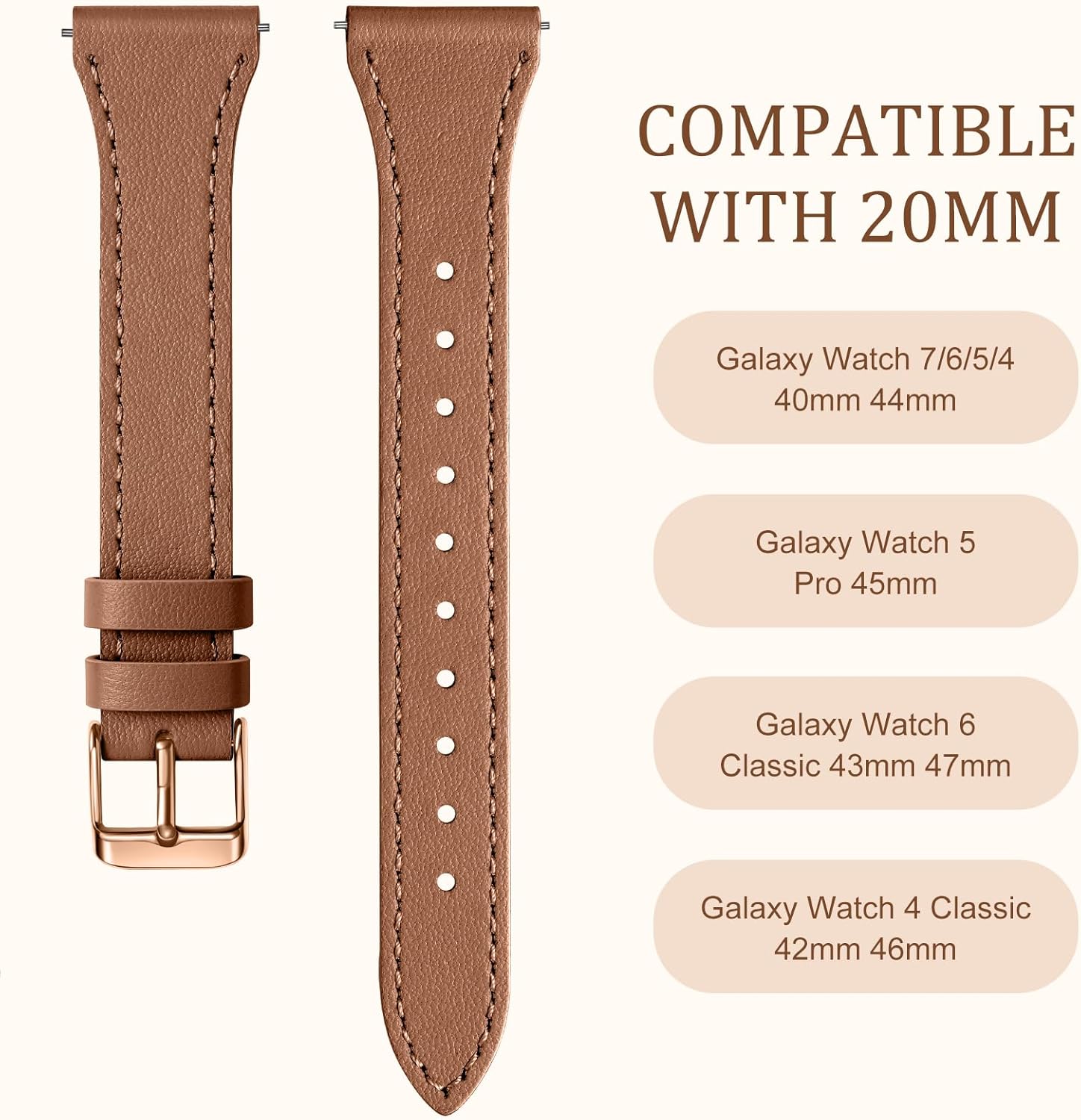 GEAK Slim Leather Band Compatible with Galaxy Watch 7 Band/6 5 4 FE 40mm 44mm/5 pro 45mm/Classic/Galaxy Active 2, 20mm Genuine Leather Strap with Quick Release Buckle for Samsung Watch Bands Women