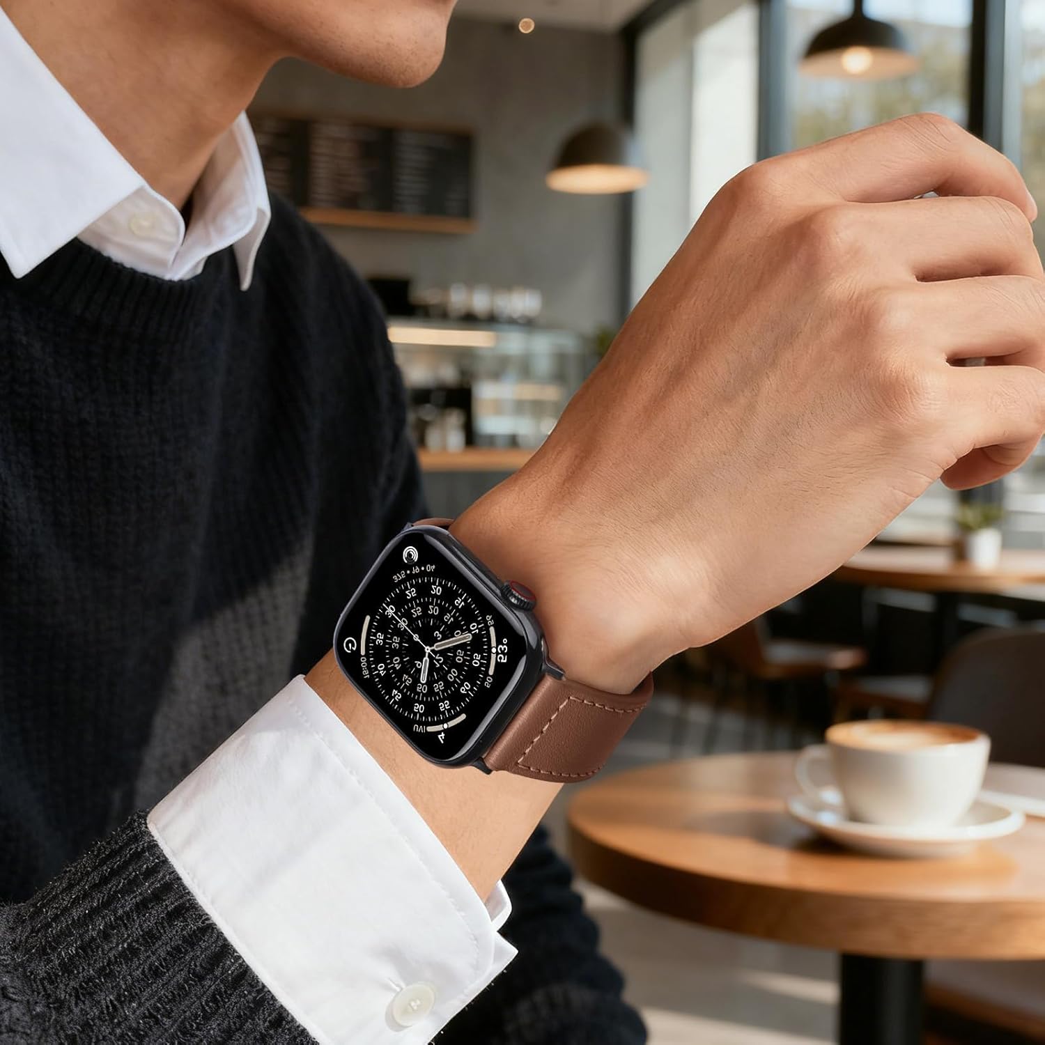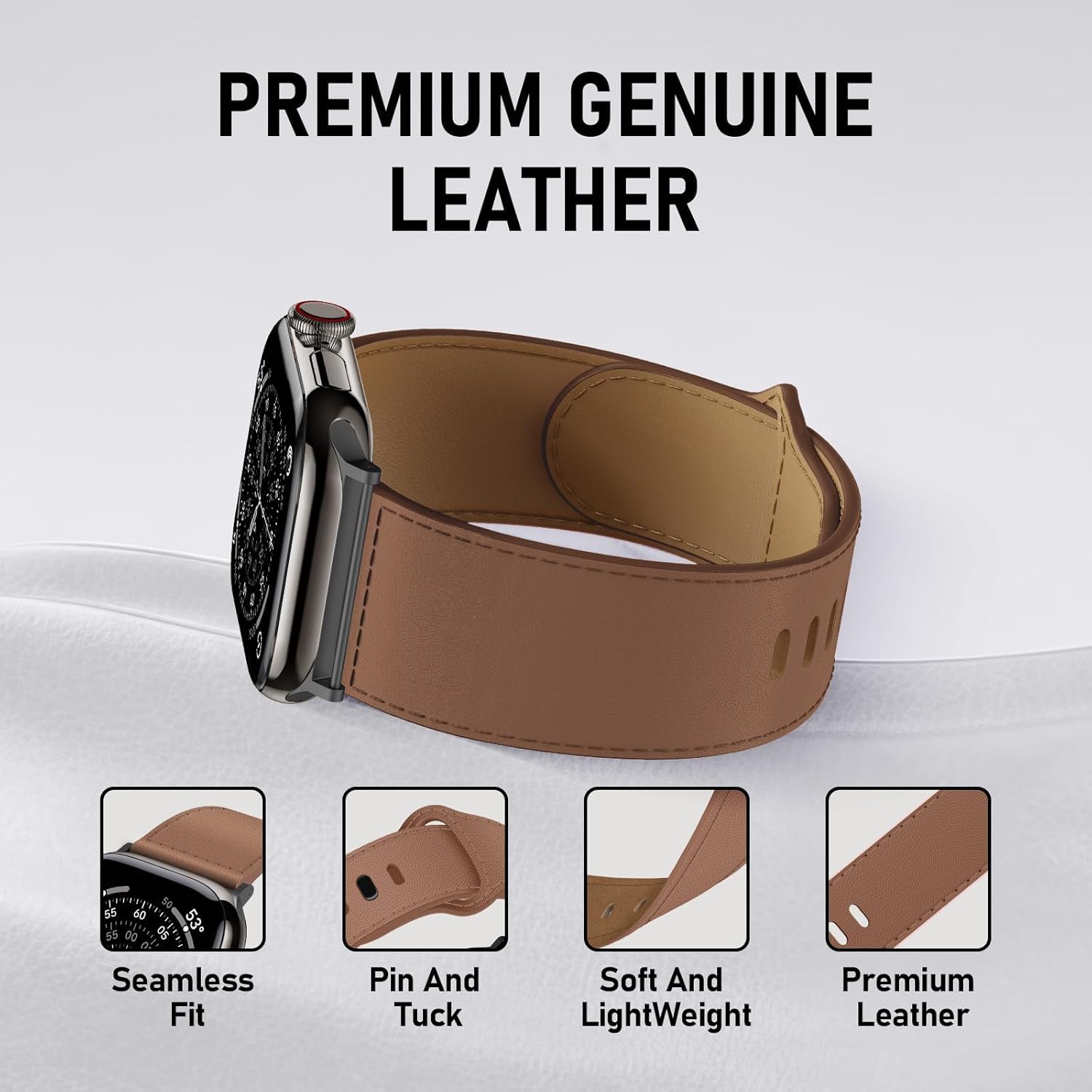 Genuine Leather Band for Apple Watch Bands 44mm 45mm 46mm Ultra/3/2 49mm 42mm 41mm 40mm 38mm iWatch Bands Men Women,Top Grain Leather Strap Wristband for Apple Watch Series 11 10 9 8 7 6 5 4 3 SE 3/2