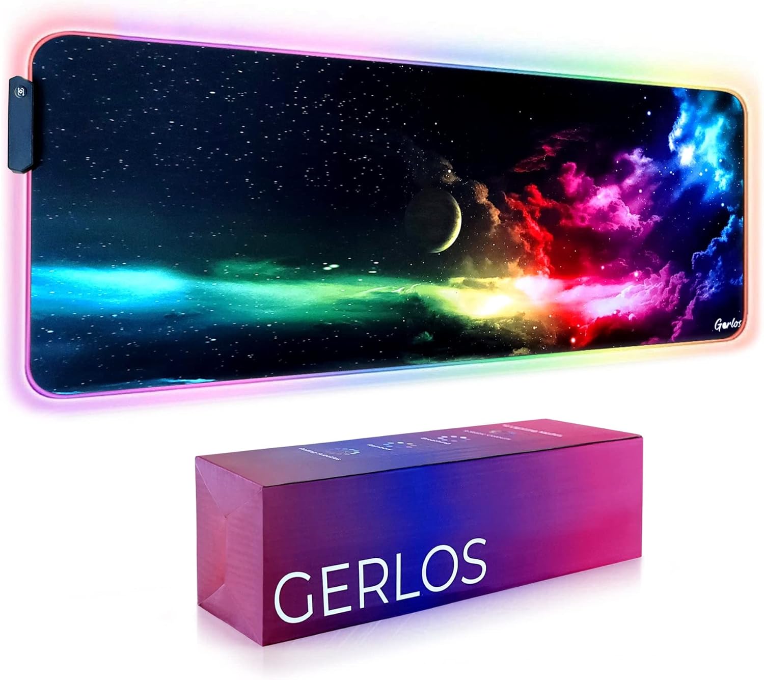 Gerlos RGB Large Gaming Mouse Pad, Extended Soft LED Mouse Pad, Non-Slip Rubber Base, Water Resist Keyboard Pad, Computer Mousepad 31.5×11.8 inches