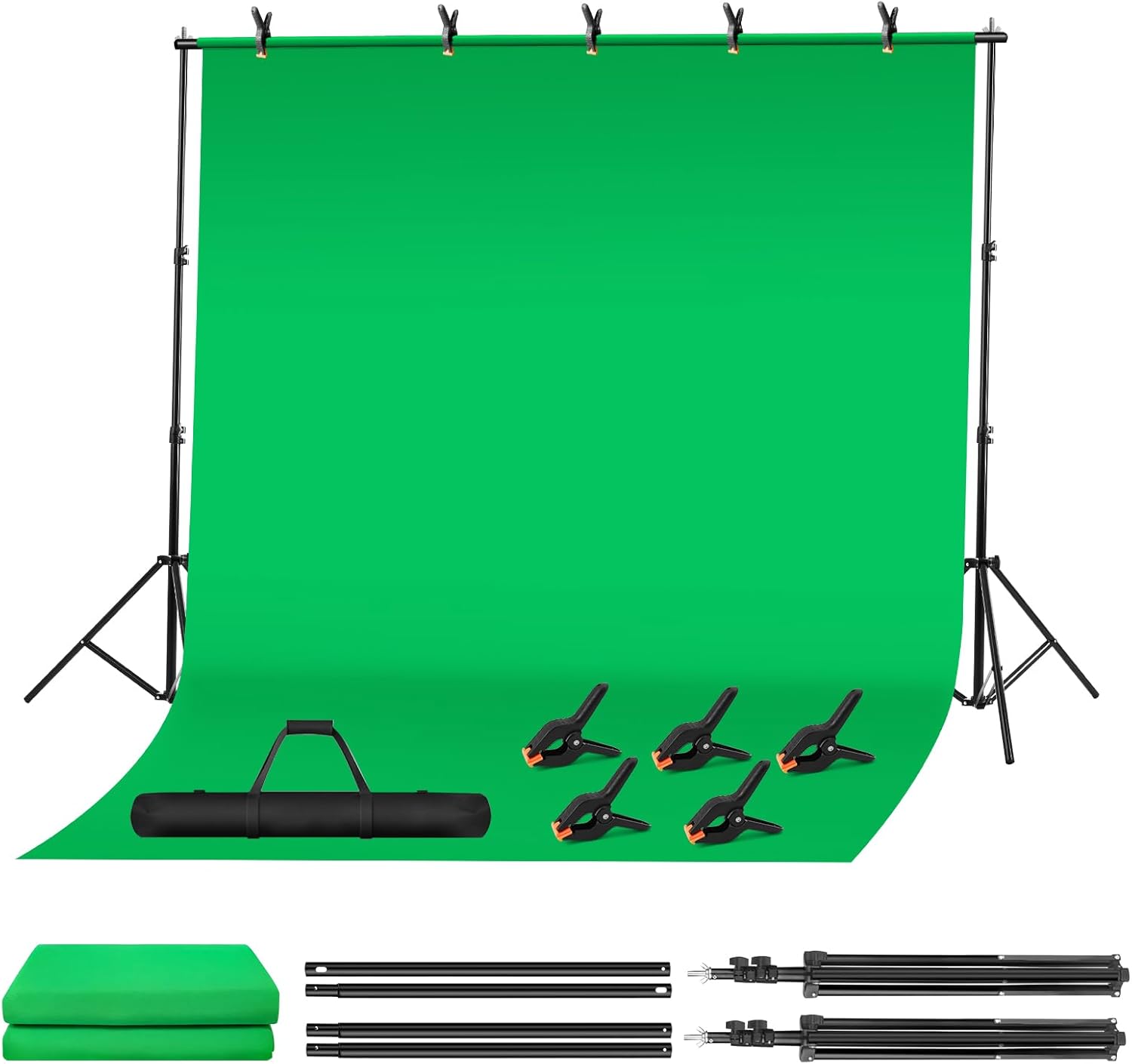 Green Screen Backdrop Kit, 10 x 6.5 Ft Portable Green Screen with T-Shaped Stand, Carrying Bag, 5 Clamps, Photography Greenscreen Background Kit for Streaming, Gaming, Zoom