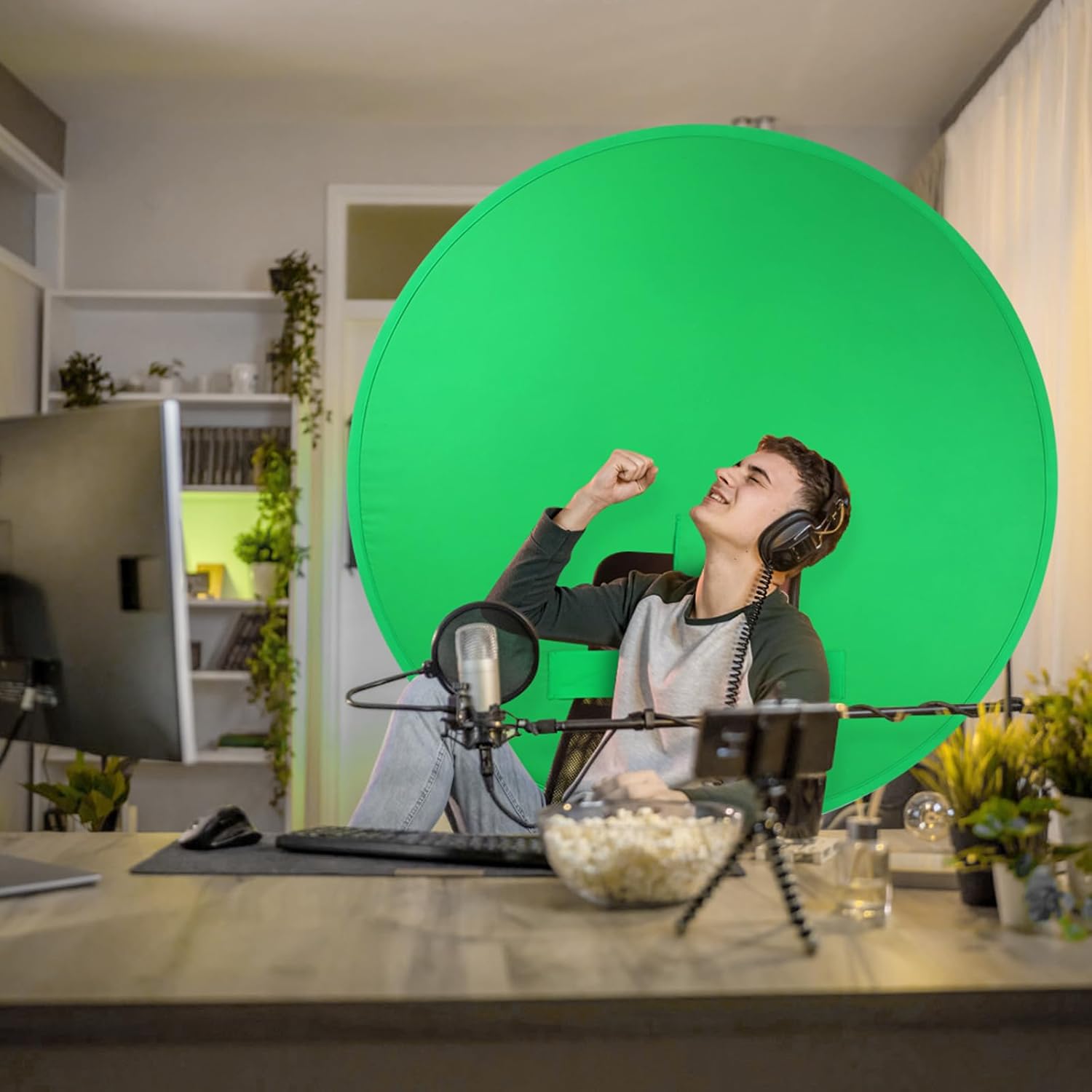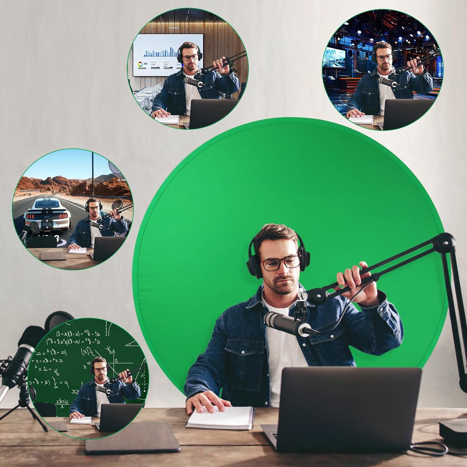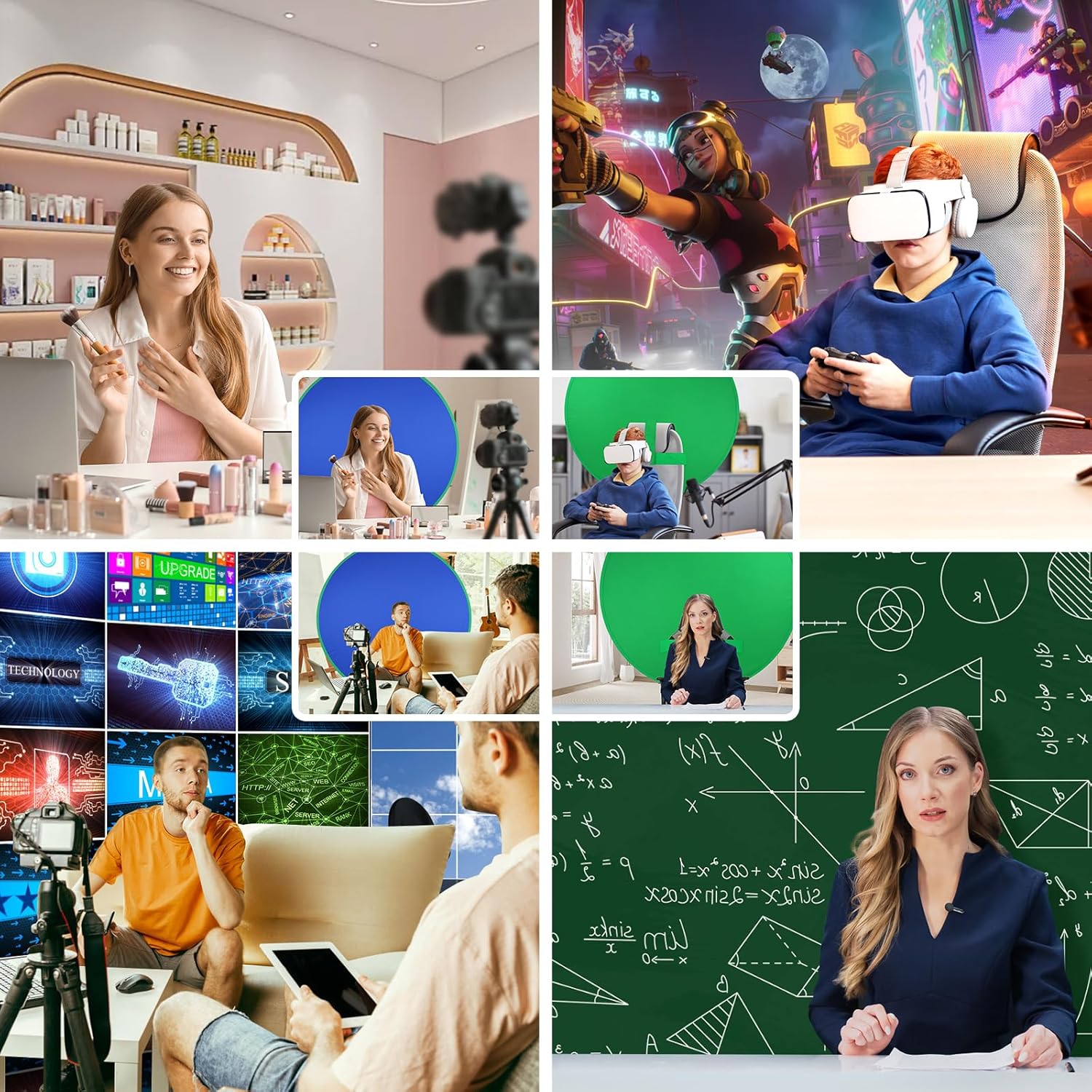 Green Screen Chair,Heorryn 59in Portable Green Blue Screen Backdrop Kit with Double Sided Pop Up Greenscreen Background for Chroma Key Photo/Video, Streaming, Conferencing and Product Photography
