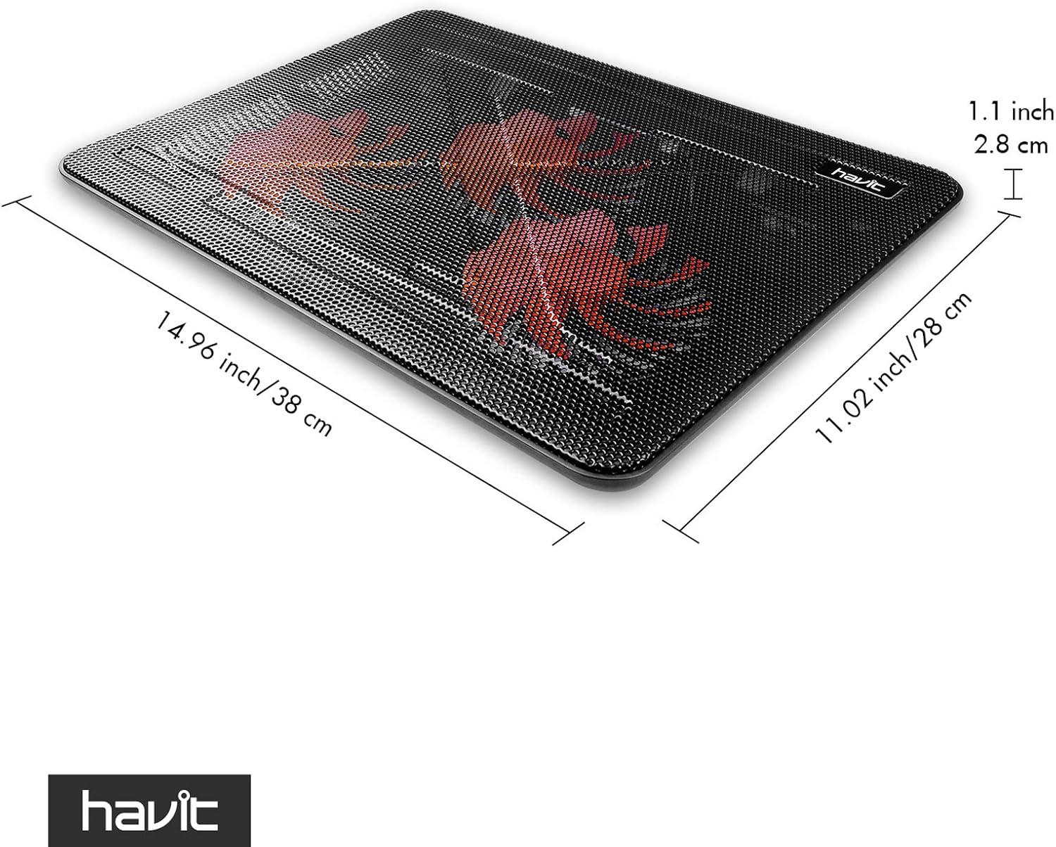 Havit HV-F2056 15.6-17 Inch Laptop Cooler Cooling Pad – Slim Portable USB Powered (3 Fans) (Black+Red)