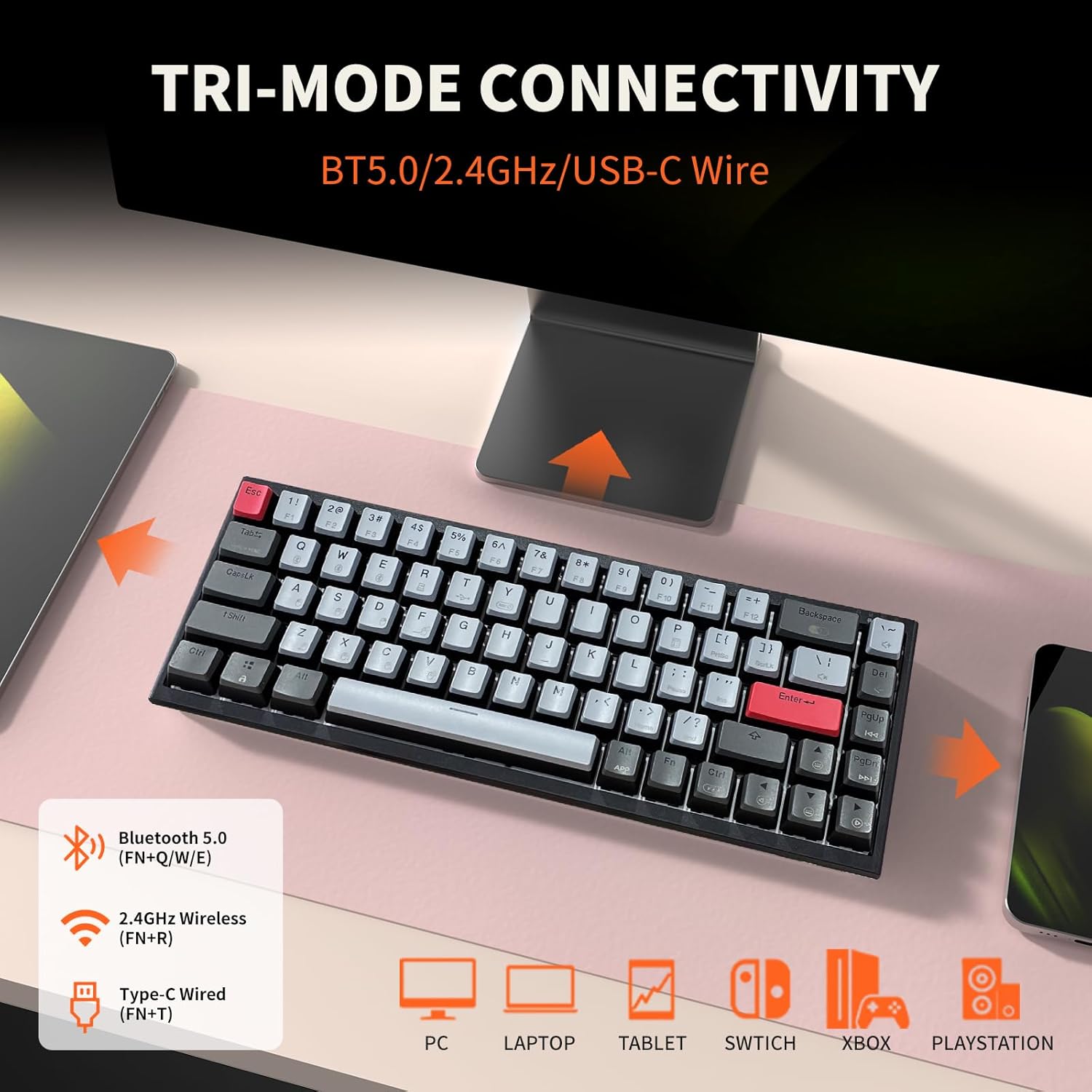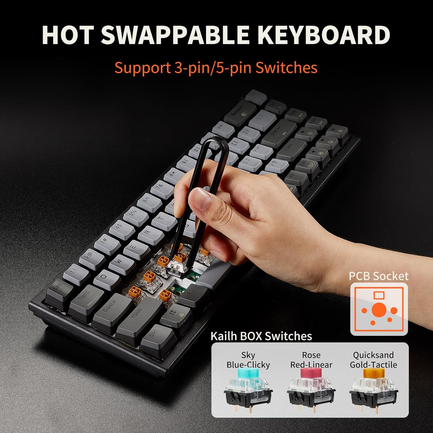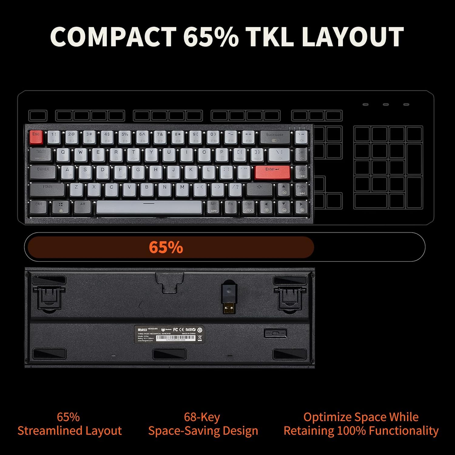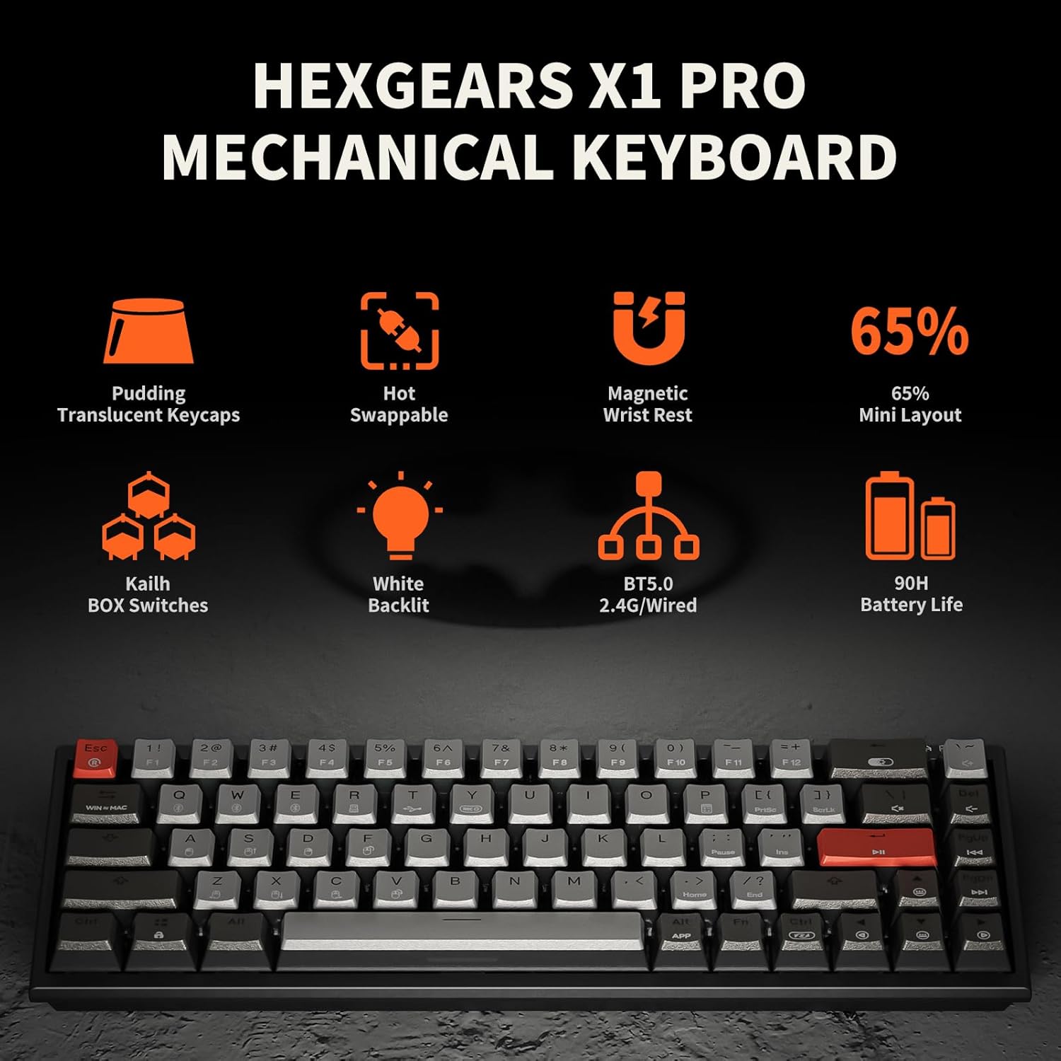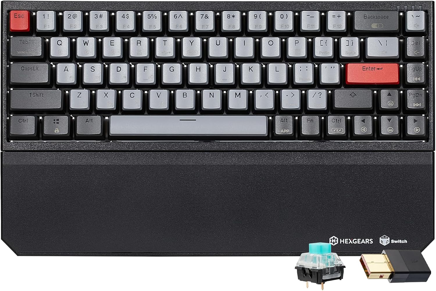 Hexgears X1 Pro Wireless Mechanica Keyboard, Tri-Mode Bluetooth/2.4G/USB-C, Hot-Swappable Clicky Switch Gaming Keyboard, Mini Compact White Backlit Keyboards with Wrist Rest – Dark