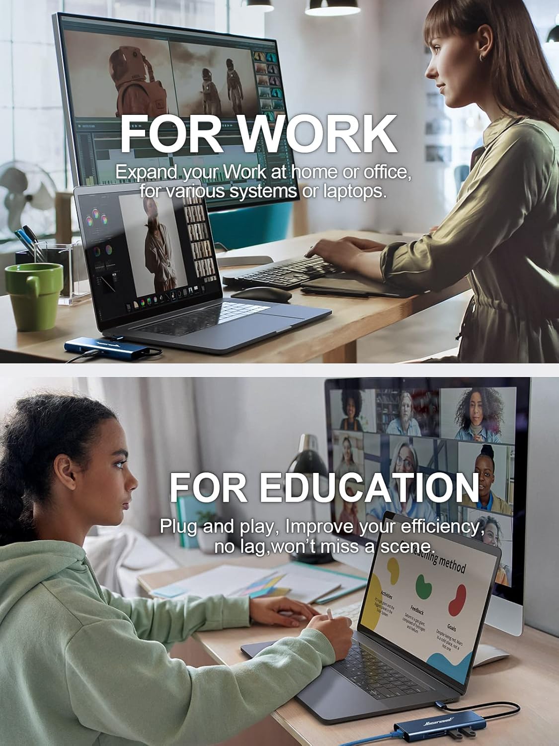 Hiearcool USB C Hub, 8in1 USB-C to 4K 60Hz HDMI Docking Station, USBC Ethernet Multi-Port Adapter 100W PD Dock Compatible for MacBook Pro Air M1 Dell HP Lenovo and Other C Devices-Midnight Blue