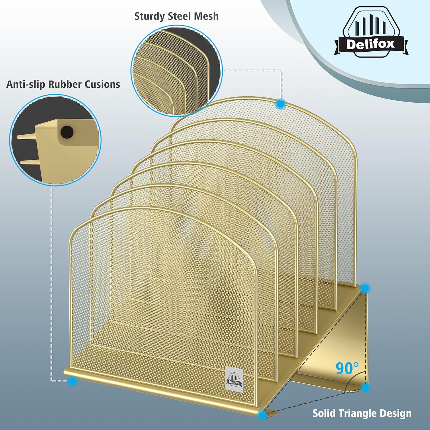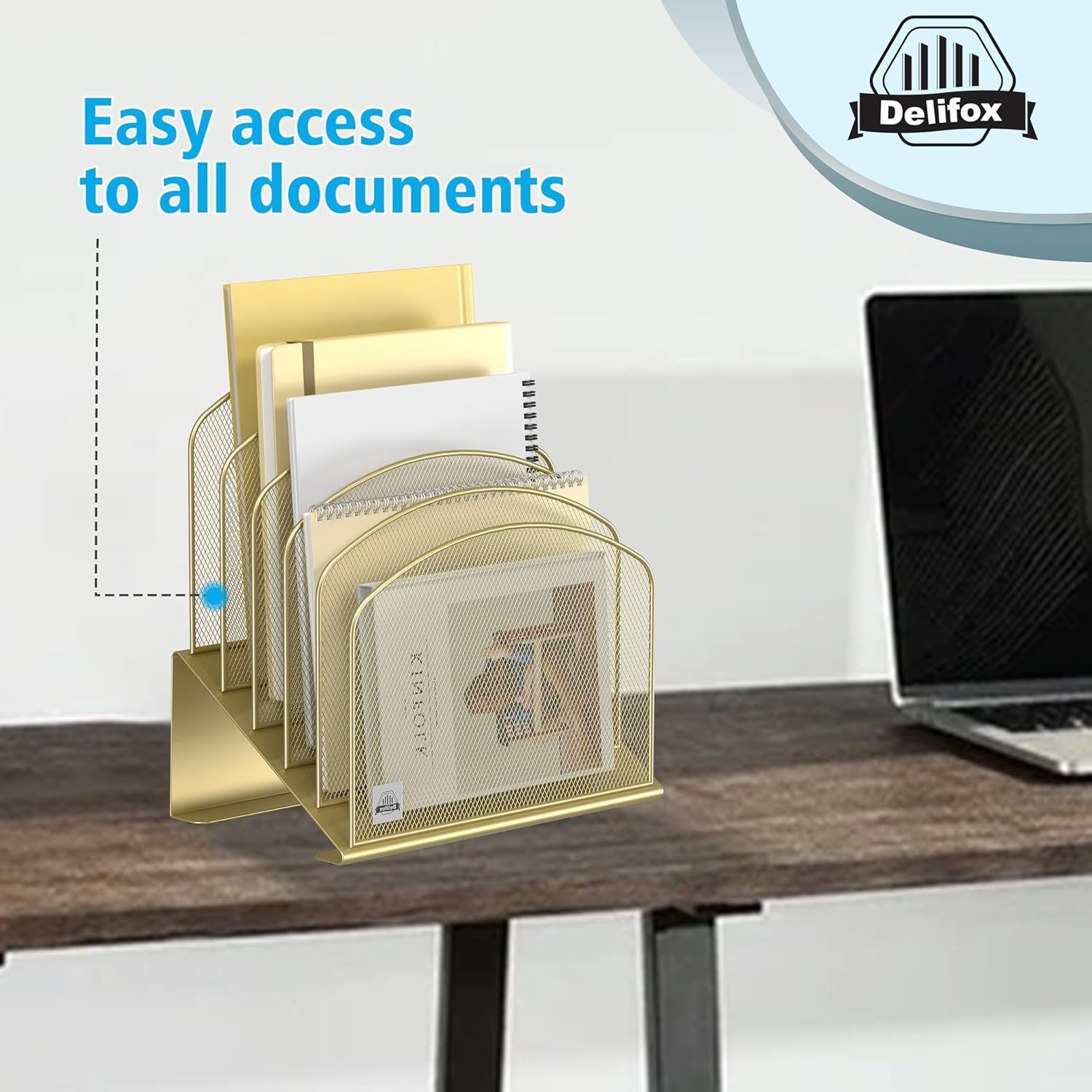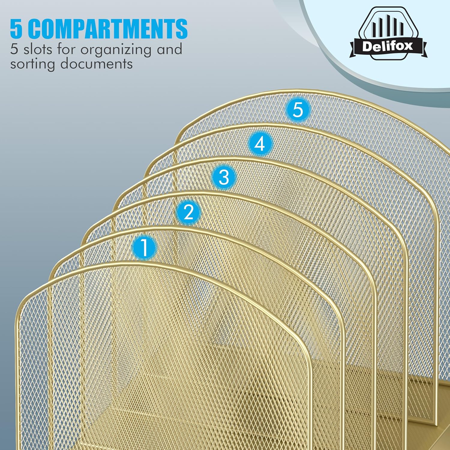 Inclined Desk File Organizer,Vertical File Folder Holder Stand Metal Rack File Sorter for Office Classroom Desktop Organization