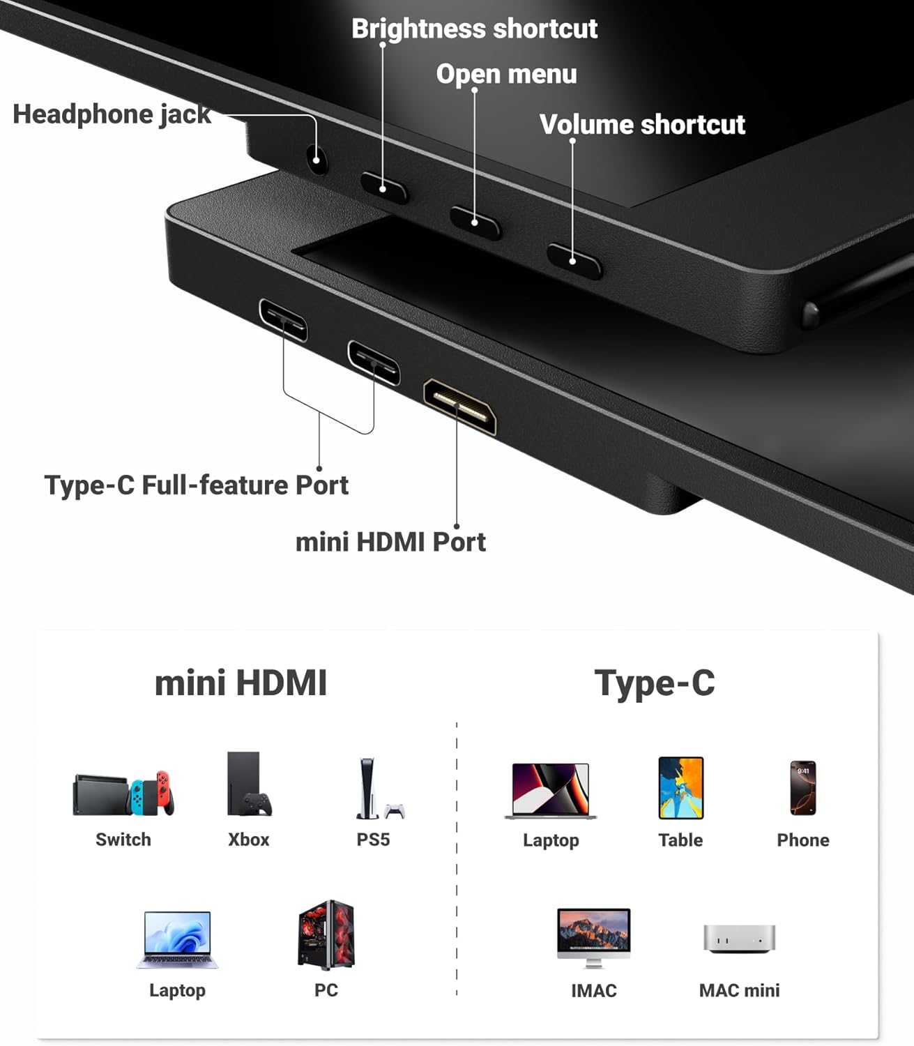 Ingnok Portable Monitor, 15.6inch FHD 1080P Travel Monitor, Ultra-Thin, USB-C Plug&Play, Built-in Speakers, Portable Screen for Laptop, Mac, Switch/PS5, Travel&Office Assistant