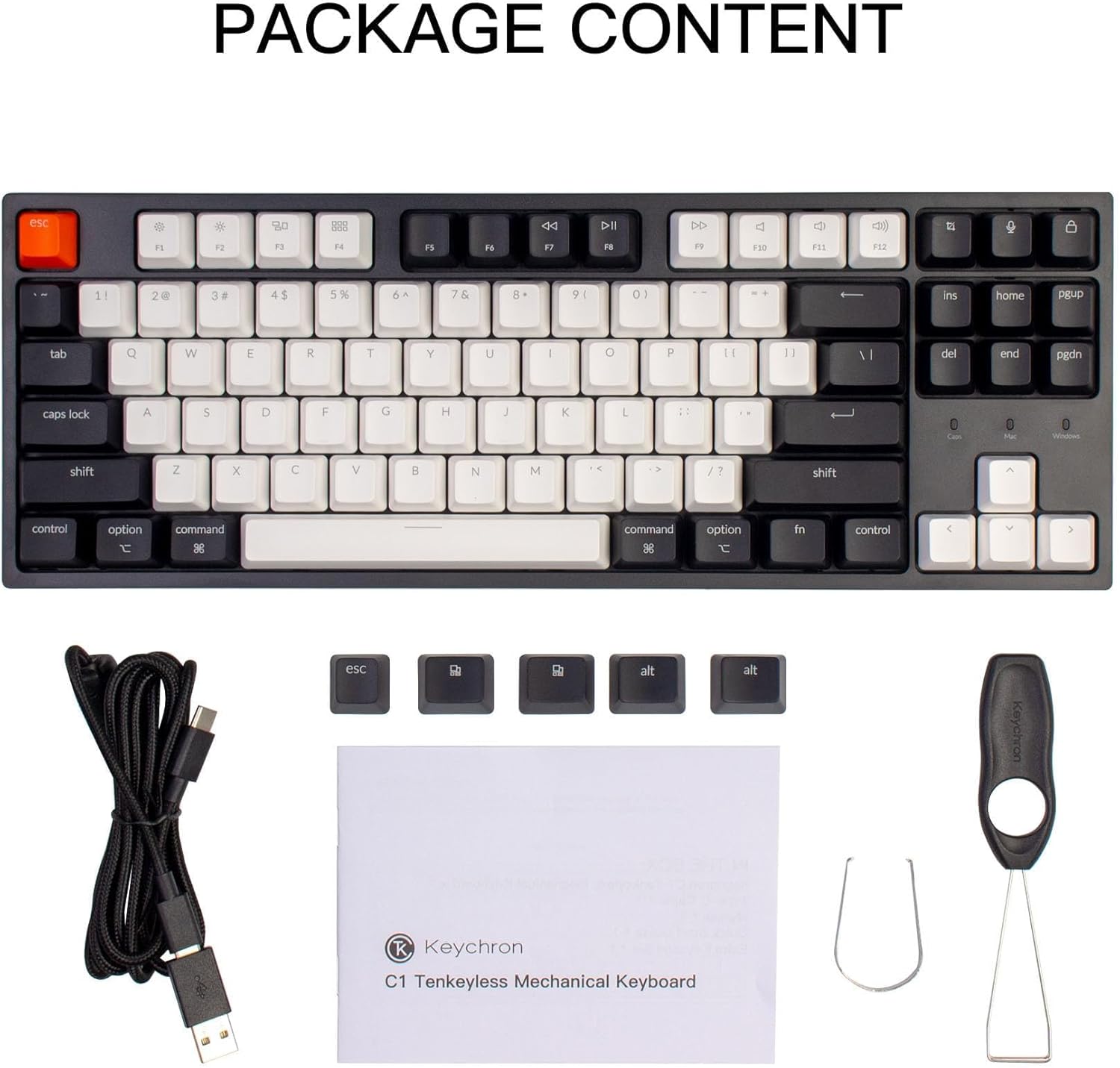Keychron C1 Wired Mechanical Keyboard TKL, RGB Backlit with Double-Shot ABS Keycaps, 87 Keys Hot-Swappable Pre-lubed Tactile Switch Compatible with Mac Windows