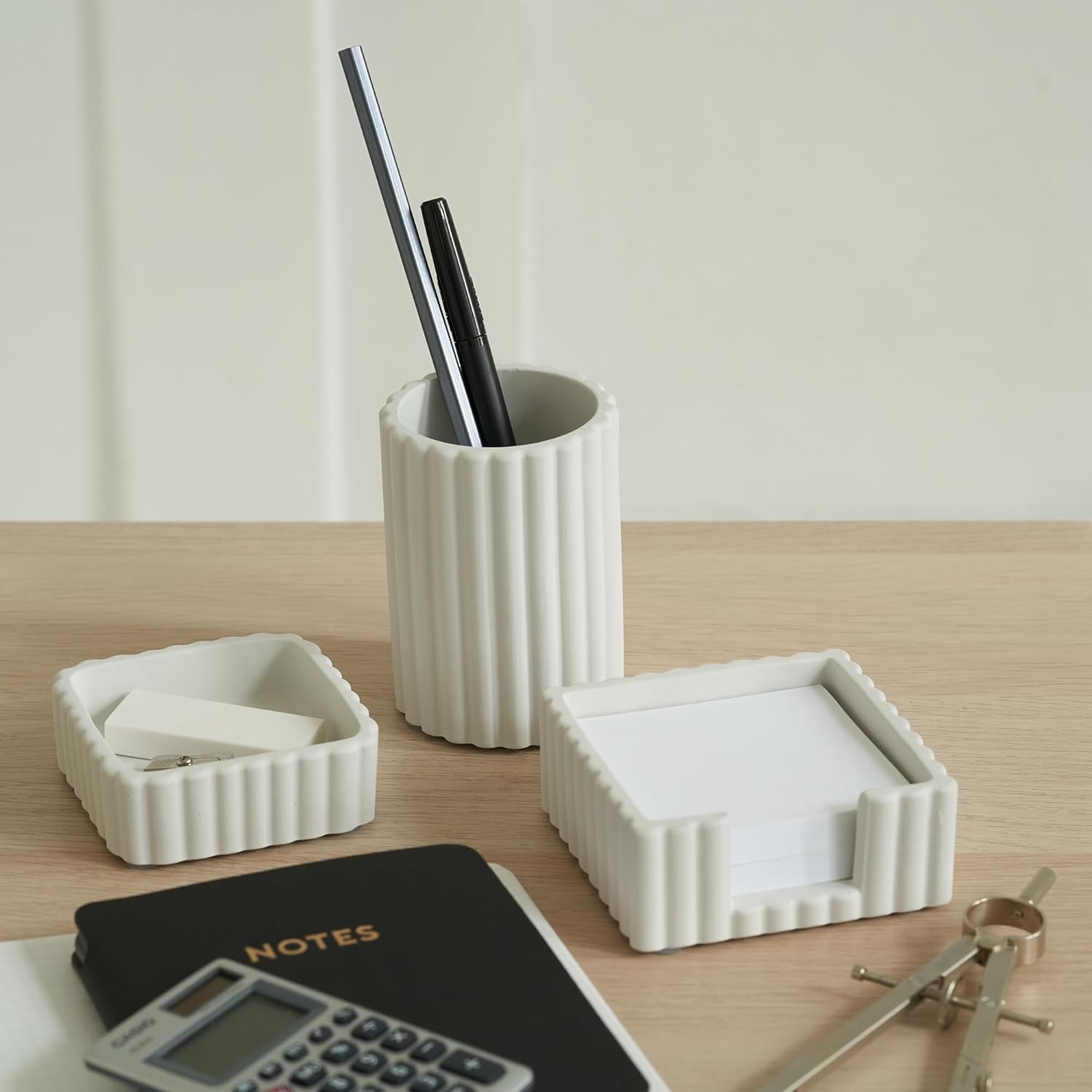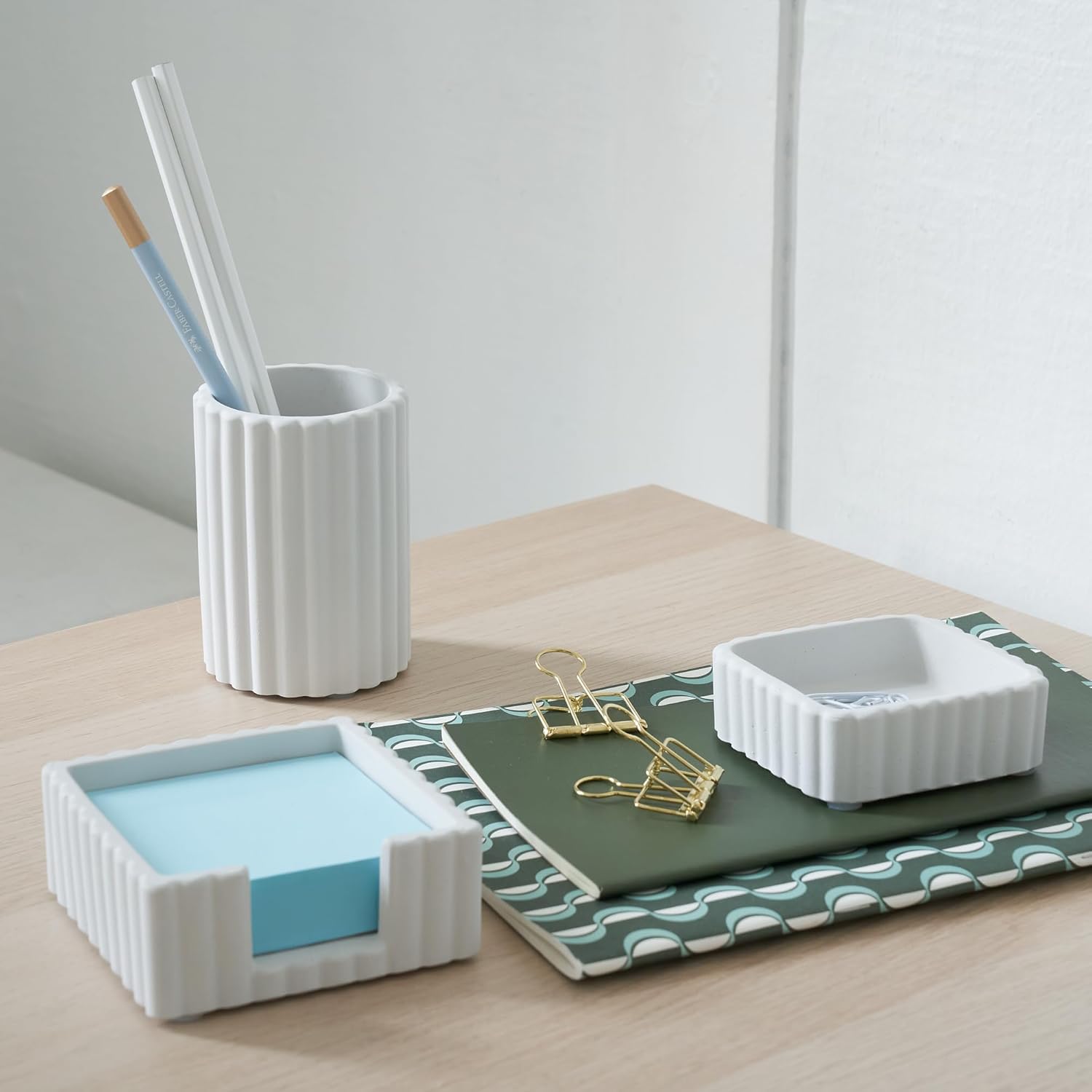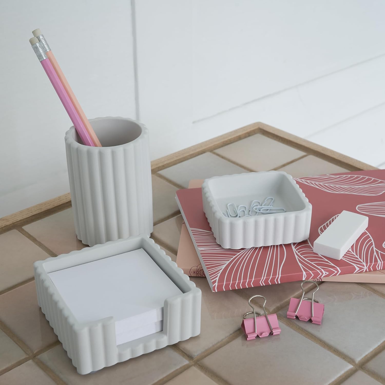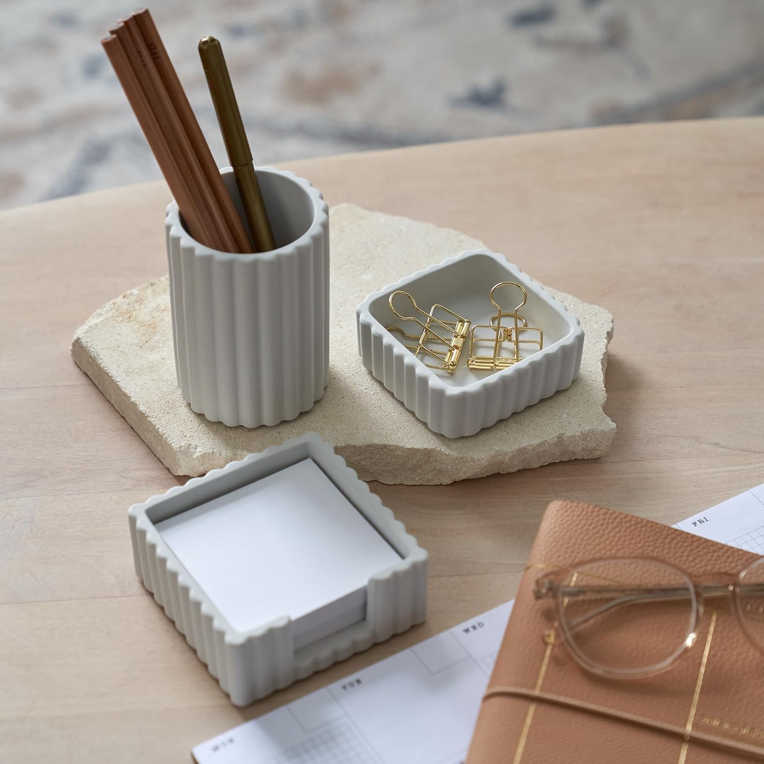 KIBAGA Modern Aesthetic Desk Accessories Set of 3 – Stylish Concrete Organizers for Pens & Office Supplies – A Cute and Functional Addition to Your Workspace Decor